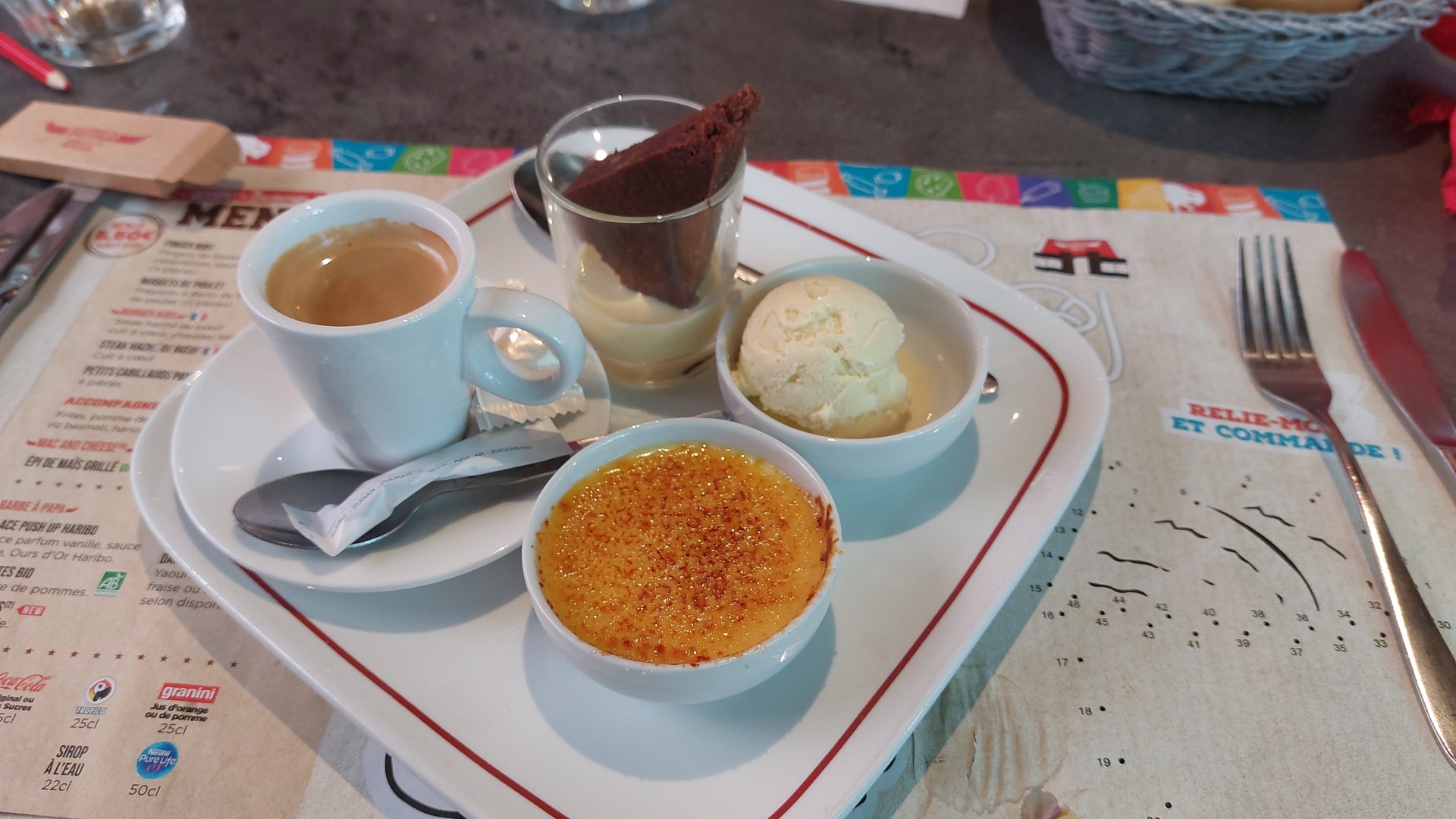 Repas a 4, 2h sur place avec. 1h15 d'attente en tous si on demande pas d'être débarrasser personne nous débarrasse. Les tables sont servies sans ordre a l'arrache avec 5 personnes dans le rang sans que personne se bouge. le pire est qu'après 2h on annonce a un enfant de 8 ans qu'il n'aura pas son dessert demander en début de service car la machine a barbe a papa est cassé. Nourriture ok mais pour le reste aucun réel service client qui est caché sous des faux sourire avec des fausses familiarité pour cacher un gros défaut de personnel.