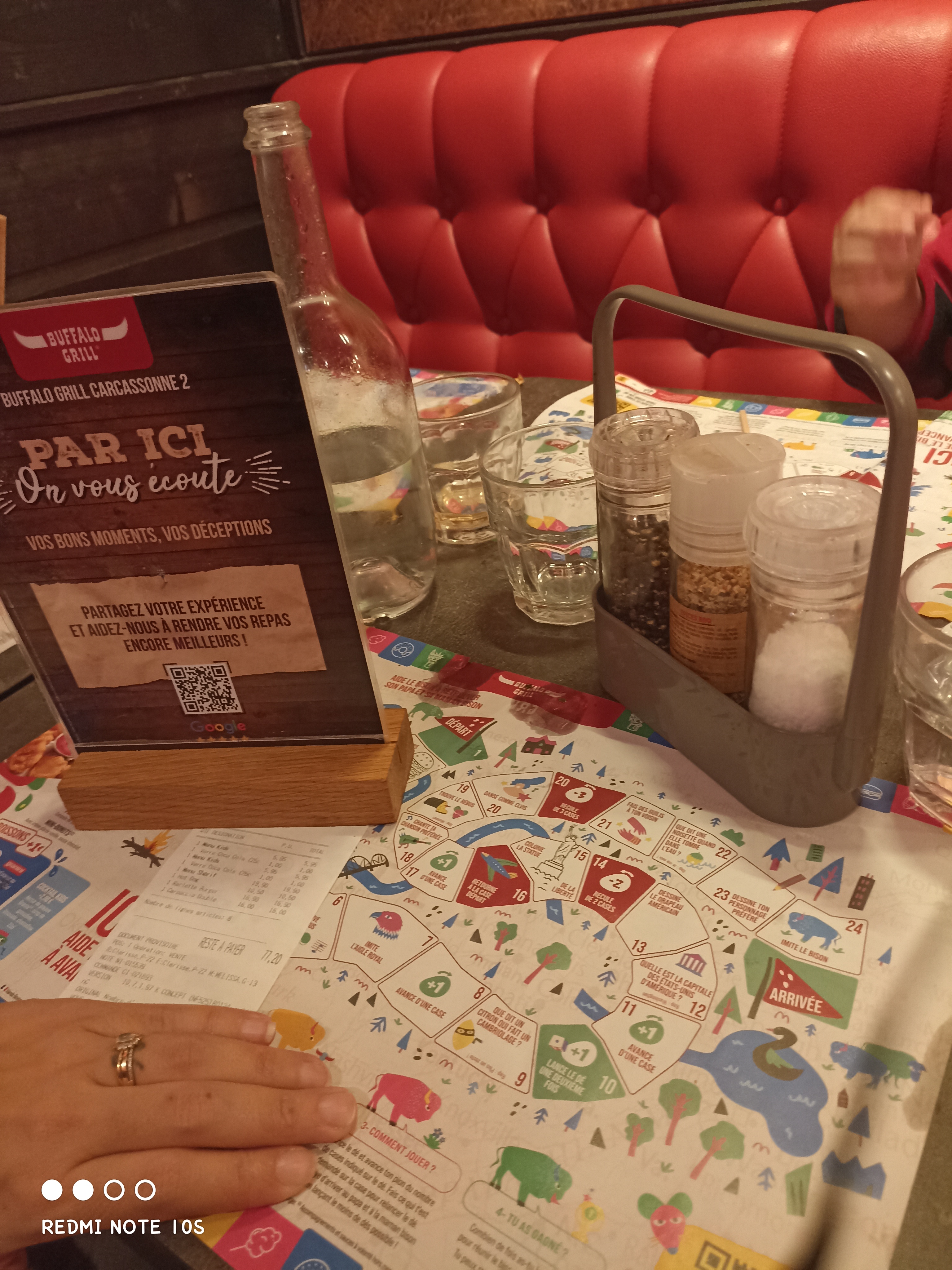 Habitué des Buffalo (que j’adore) mais là… prise de commande très longue, service encore plus long… Arrivée 12h30 départ 15h… Nous sommes venus avec des bébés, nous avons demandé de réchauffer une petite purée (30mn) Sous effectif ? Un 27 décembre midi aussi long qu’un réveillon chez tonton 😭
