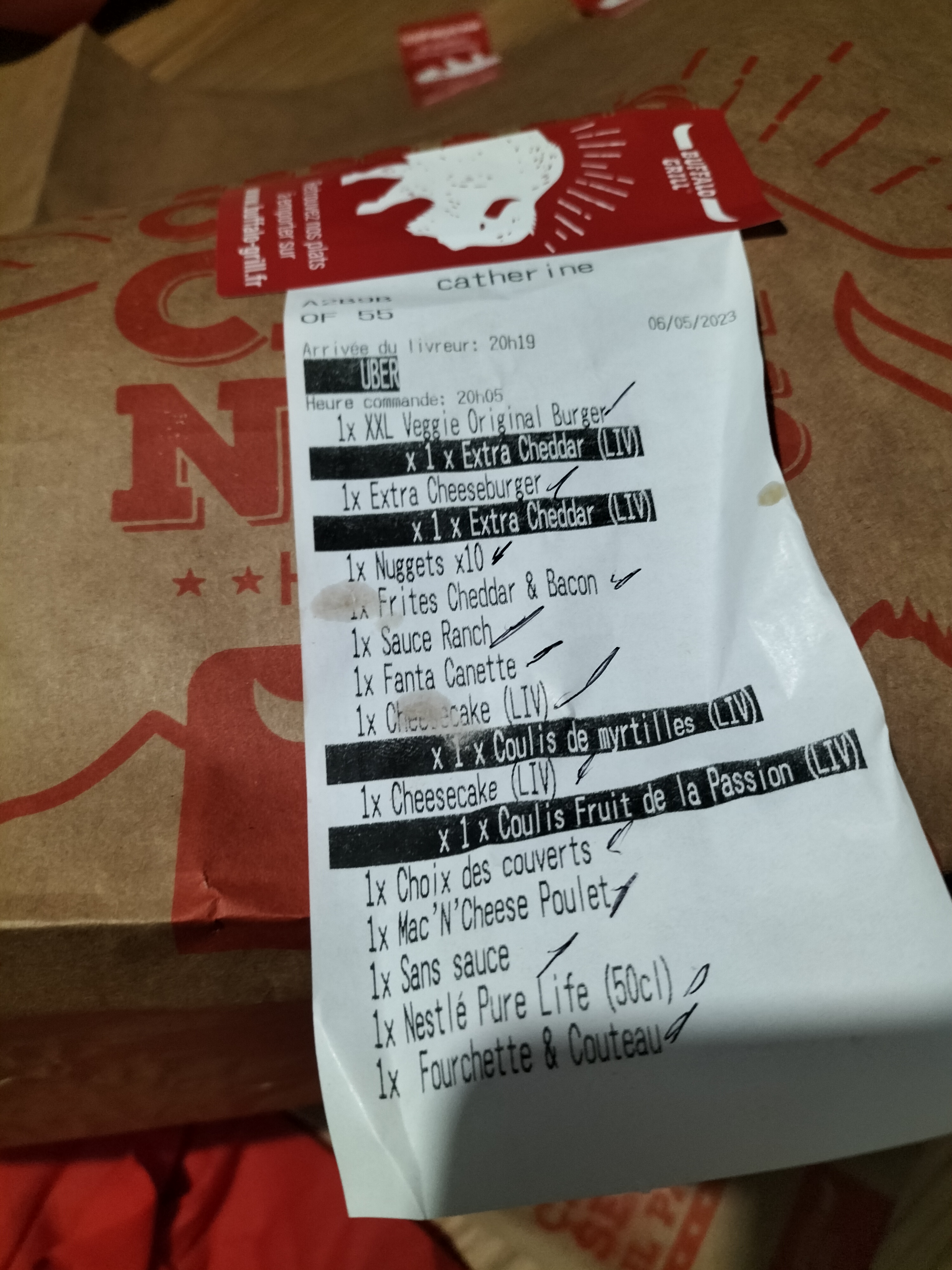 Ce n’est pas dans mon habitude mais aujourd’hui c’était trop… Pour ma part : Commandé menu hold-up : steak haché bien cuit - frites accompagnement supplémentaire haricots +2€ Reçu : Steak haché saignant sans frites juste haricots, au moment du service remarque pour le deuxième accompagnement + pain manquant. Au cour du plat j’ai relancé pour mon 2e accompagnement + le pain, ils ne sont jamais arrivés. Au moment des desserts le même serveur me demande si ça a été je lui explique donc la situation il me propose de me les apporter alors que ça fait approximativement 20min que nous avons fini nos plats. Malheureusement c’est ma femme qui a payé lors de l’addition car j’étais allé me laver les mains. Je n’ai vu qu’une fois rentré à la maison qu’elle avait payé le supplément…