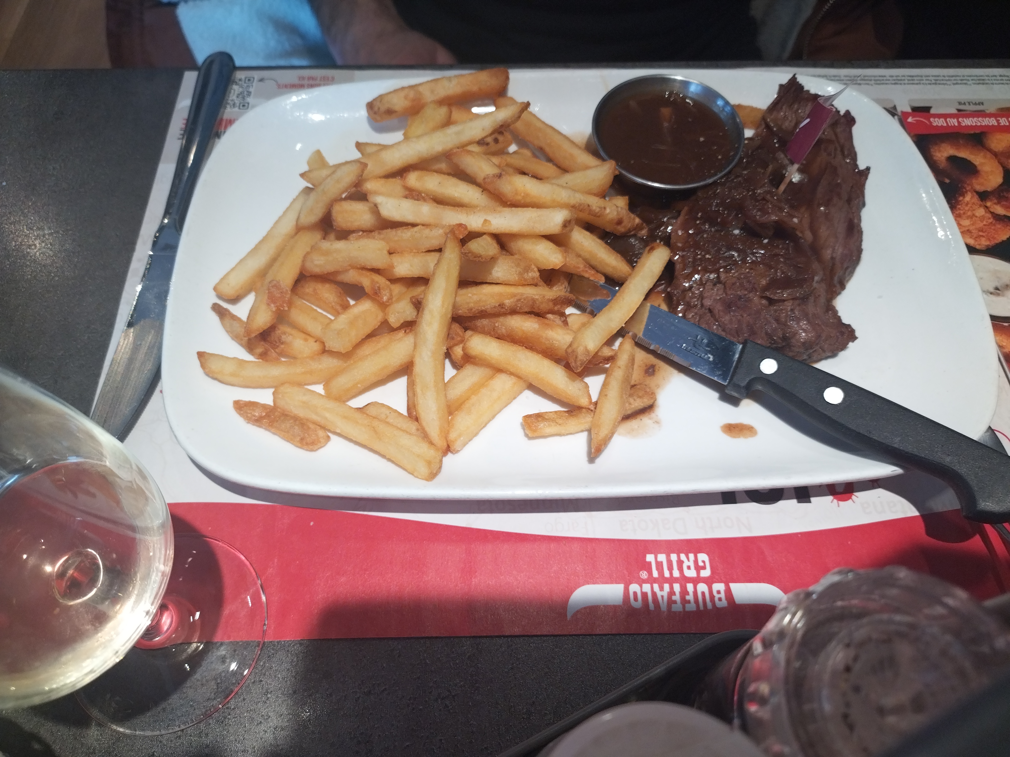 Visite en groupe, la cuisson de certains plat était catastrophique, dommage. Étant habitué des buffalo j'ai été déçu. Sinon très bien accueilli restaurant moderne et propre. Toilettes sales de la faute des clients pas de l'établissement, voir à surveiller la propreté des toilettes et impliqué les clients à les garder propres.
