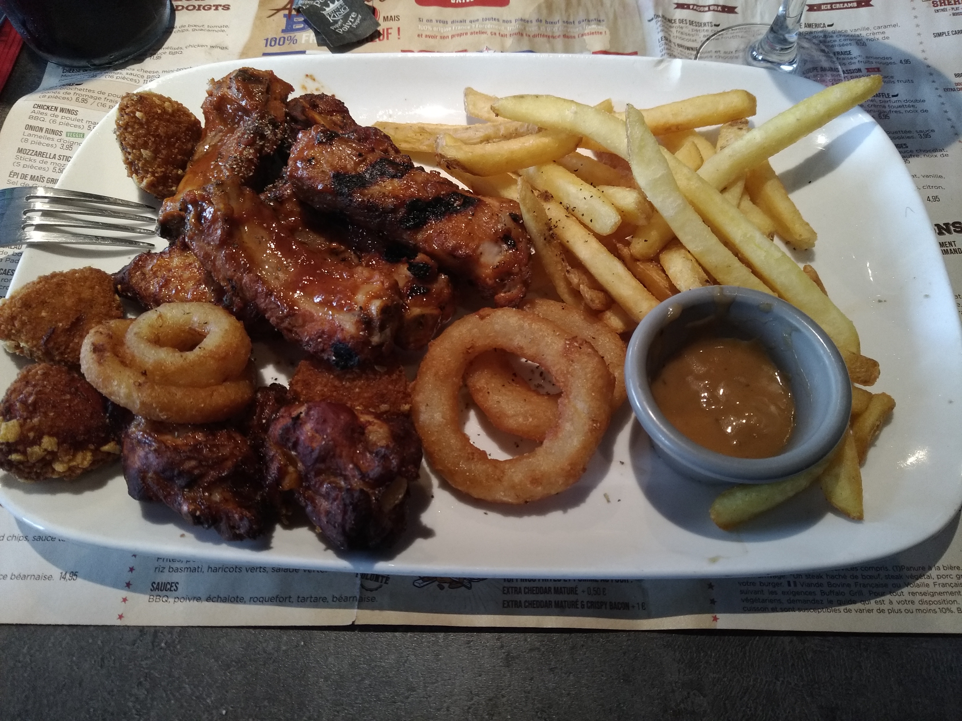 Pas habitué des restaurants. Service très bien, personnel souriant. Temps attente raisonnable. Nourriture ok, mais quantité basse je trouve. Pas de Canada Dry comme rencontré dans les 4/5 autres Buffalo que j'ai fait dans ma vie (déçu donc). Mayonnaise en dosette (j'ai connu la mayo faite maison à Buffalo). Je reviendrai en tout cas.