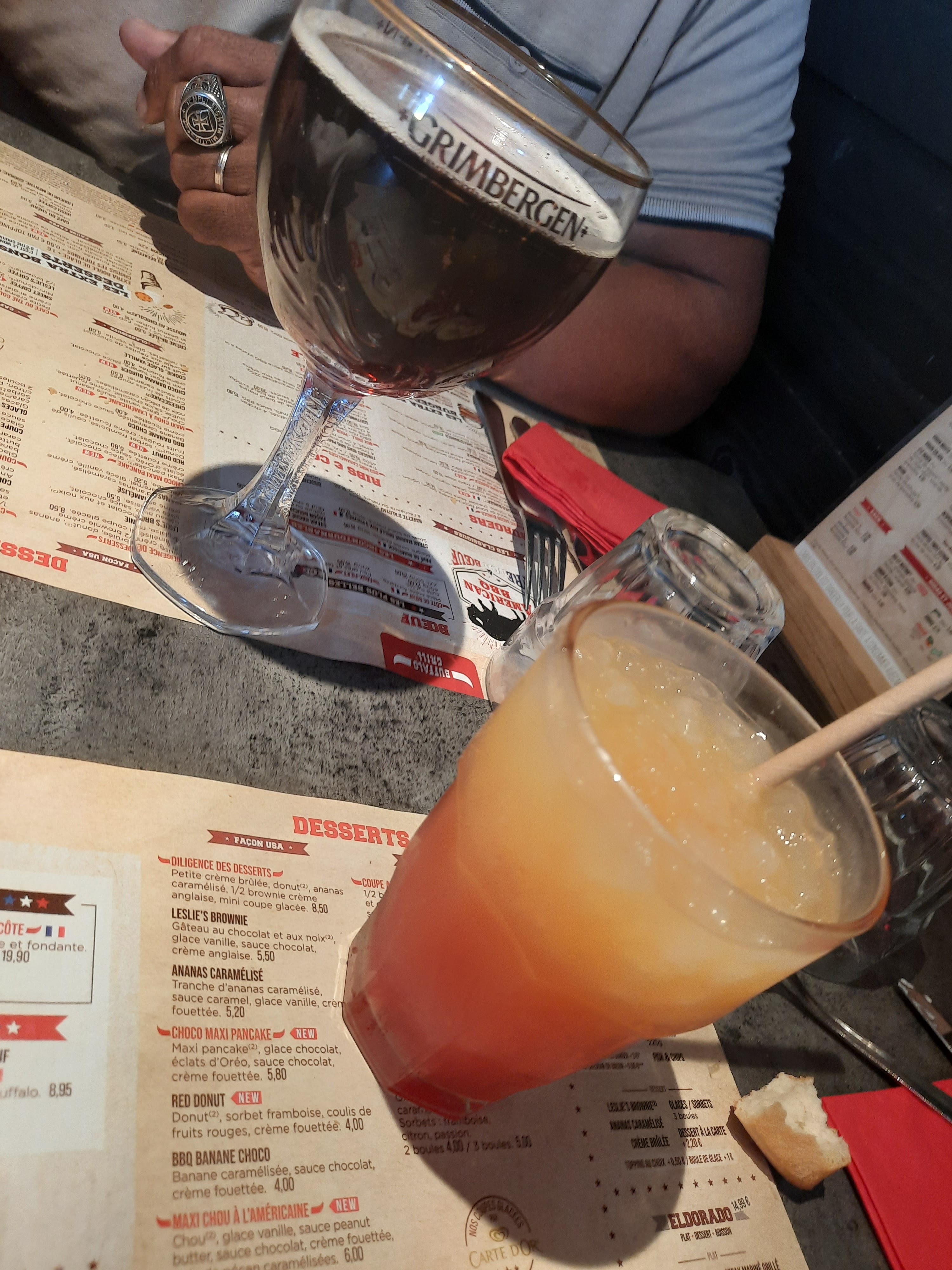 Pour 2 personnes ce samedi 11 Nov, oui il y avait beaucoup de monde mais nous avons eu une table assez rapidement et le restaurant s'est vidé assez vite après 21h Plus de 45min d'attente entre l'entrée et le plat, plat (des ribs) servies sans accompagnement parce que je cite les pommes de terres ne sont pas cuites les ribs étaient tièdes en surface et froides au centre, nous avions faim alors nous avons mangé le plat et plus de 20min après avoir fini toujours pas de pommes de terres à l'horizon La table d'à côté à été servie 20min avant nous en ayant commandé après, cherchez l'erreur.. La carafe d'eau demandée n'est jamais arrivée non plus Nous sommes partis payer en ayant mangé la moitié d'un plat et quand on nous a demandé si ça c'était bien passé nous avons expliqué tout ces problèmes et pas d'excuses ni de geste commercial juste au revoir et tant pis pour vous.. A fuir, c'est honteux