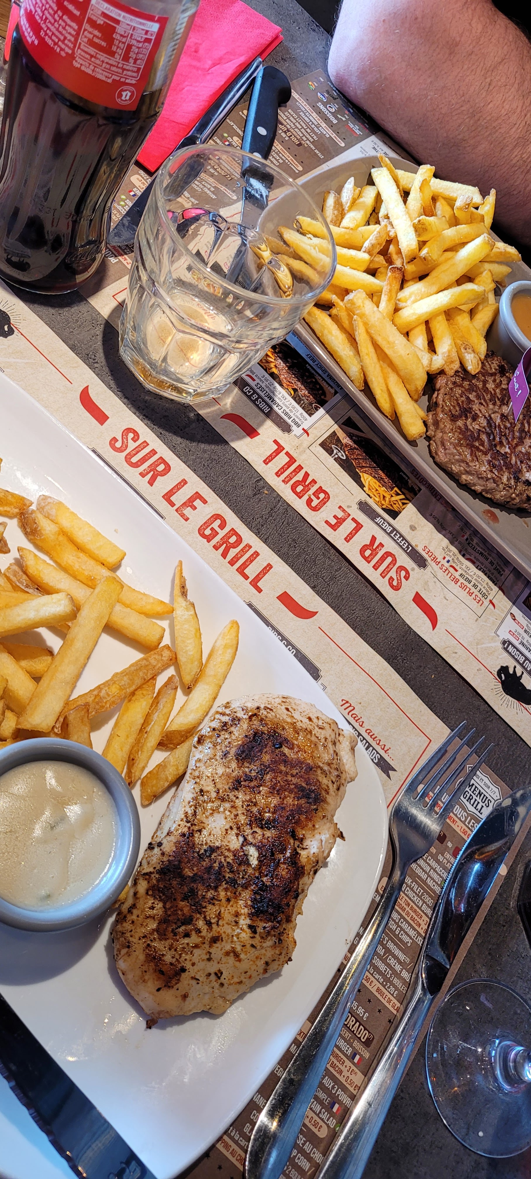 Viande qui a le goût de cramé et plein de nerf ! Immangeable ! Frite pas extra, première et dernière fois que l’on viendra. Aucun geste sur l’addition, nous avons donc pas pris de dessert.