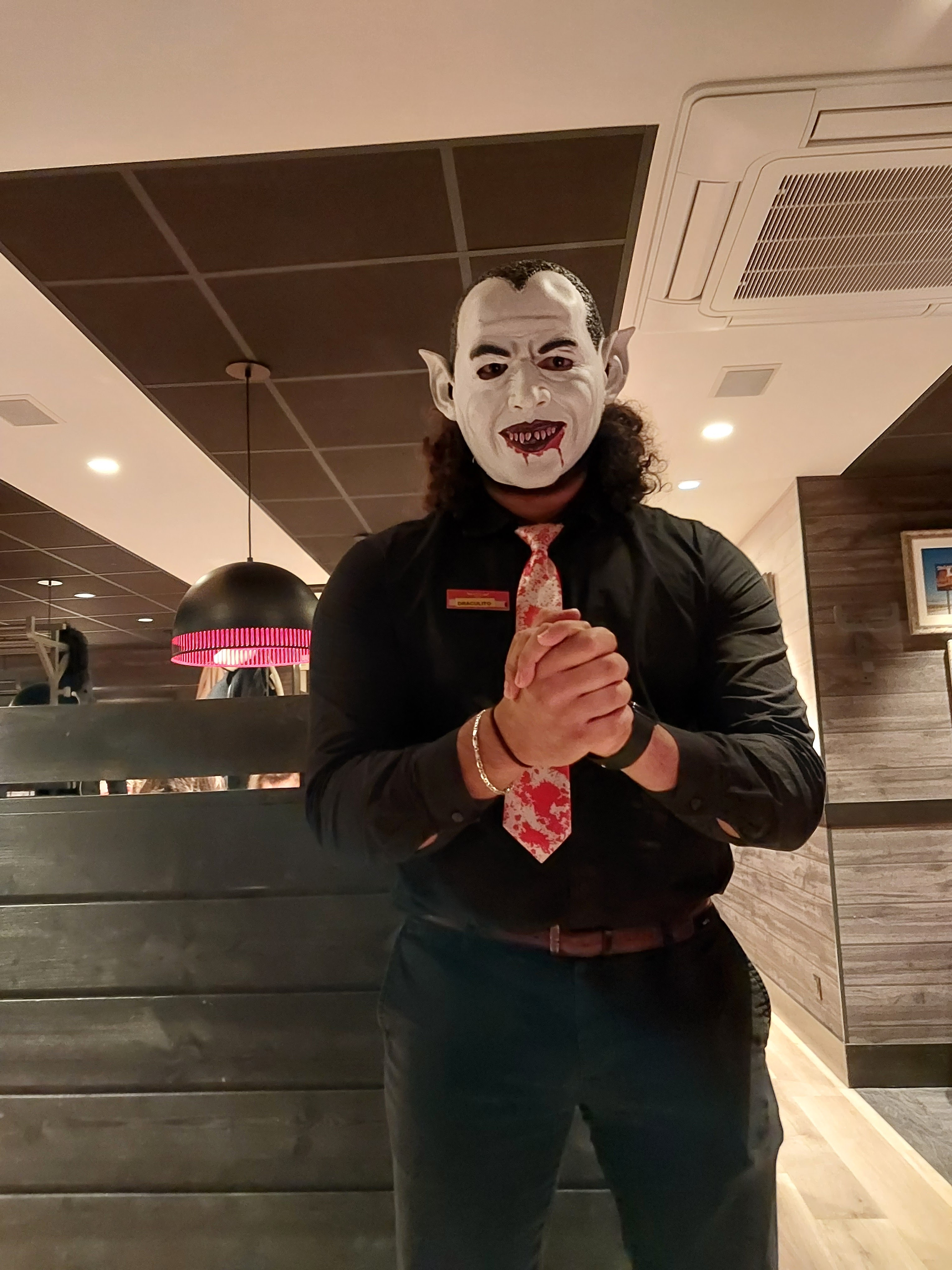 Notre serveuse viky est vraiment très sympathique, souriante !! Merci ! Très beau déguisement et super le maquillage pour cette soirée d'halloween...Très bon service et avec humour...top !!