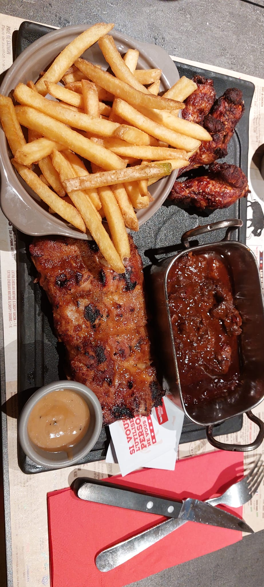 On connaît tous Buffalo grill,celui ci est bien . Mon hamburger 🍔 était bon et j ai trouvé mes frites très bonnes . Serveur sympathique. Par contre un coca 4 euros ça pique ,donc carafe d eau Arriver de bonne heure sinon file d attente assez longue