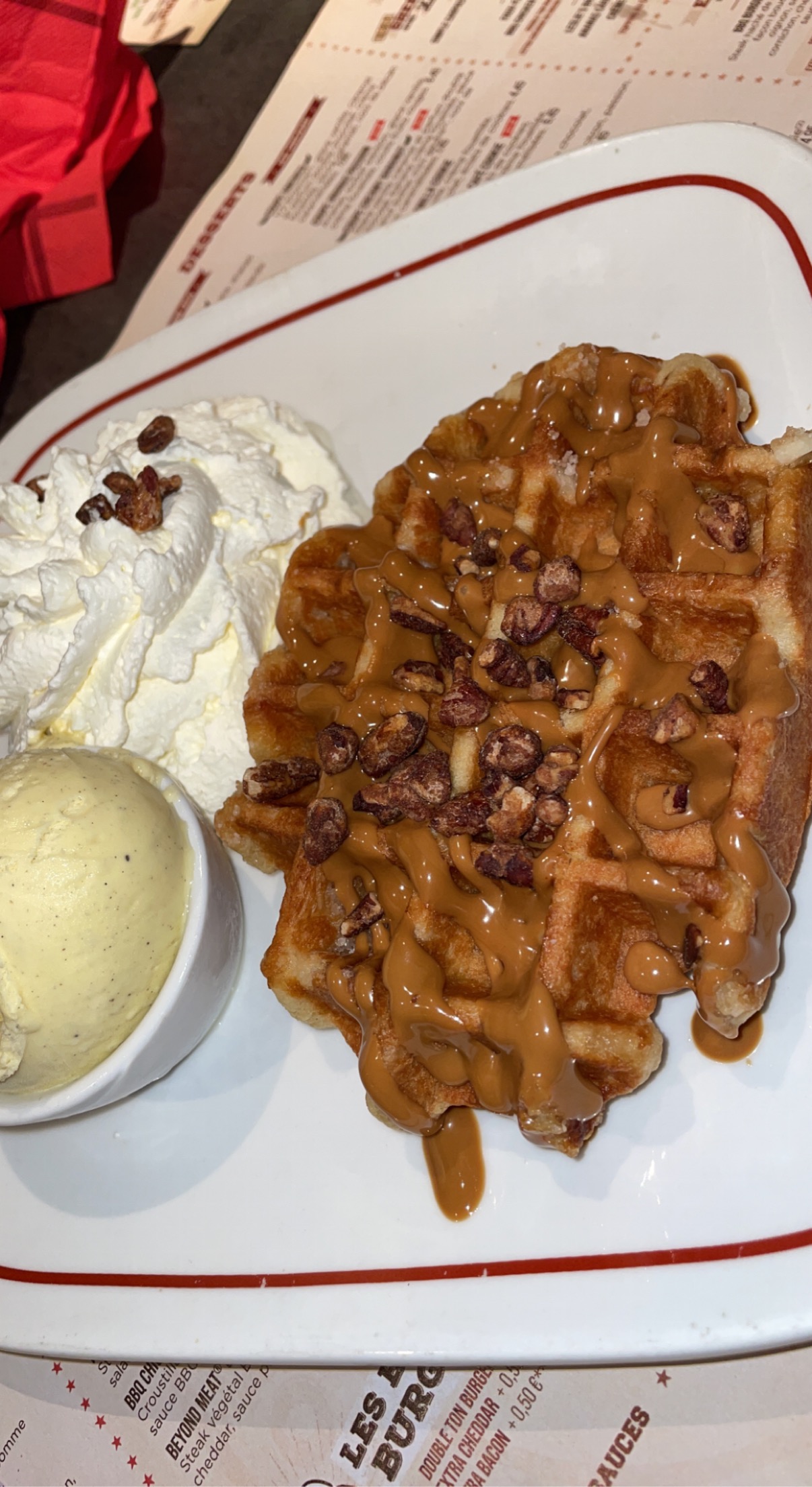 Très bien le personnel au niveau de l’accueil mais positionnement même pas choisi. Je tiens à signaler que les portions de frites n’étaient pas fameuses (mon copain et moi n’étions pas remplis). Mais le dessert en revanche était convenable !