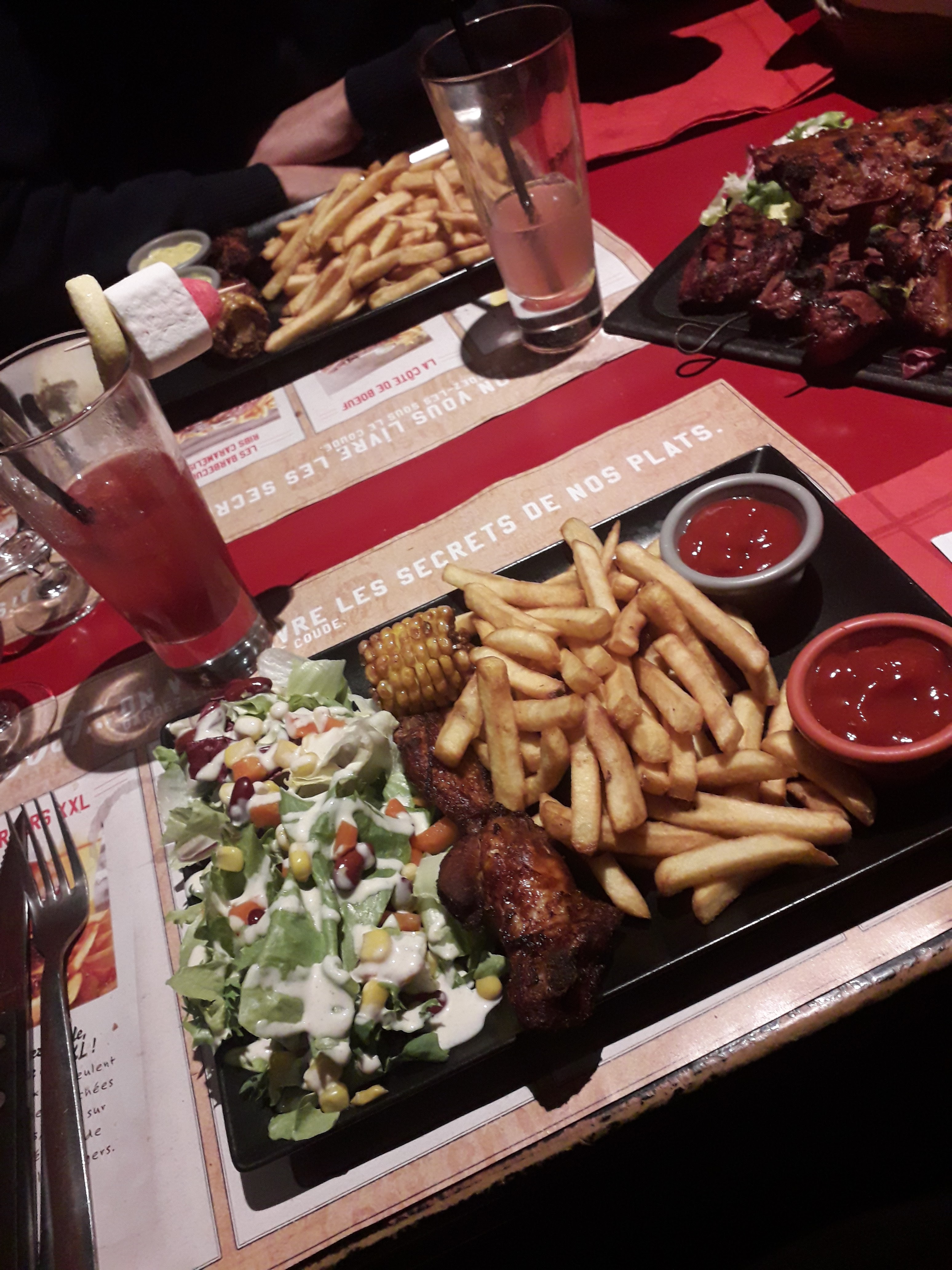 Arrivée à 19h20,prise de commandes (boissons, repas 30min + tard)boissons servies à 20h15 avec une salade de bienvenue. Heureusement car notre entrée nous a été servie à 20h50 et les repas 35min plus tard!! L'attente à été plus que longue surtout avec les aboiements d'un chien tout au long de notre soirée. Il est noter que plusieurs familles ou groupes ont annulés leurs repas au vu de l'attente pour les prises de commandes et pour d'autres l'attente pour se faire servir. Buffalo grill c'est la dernière fois pour nous!!!