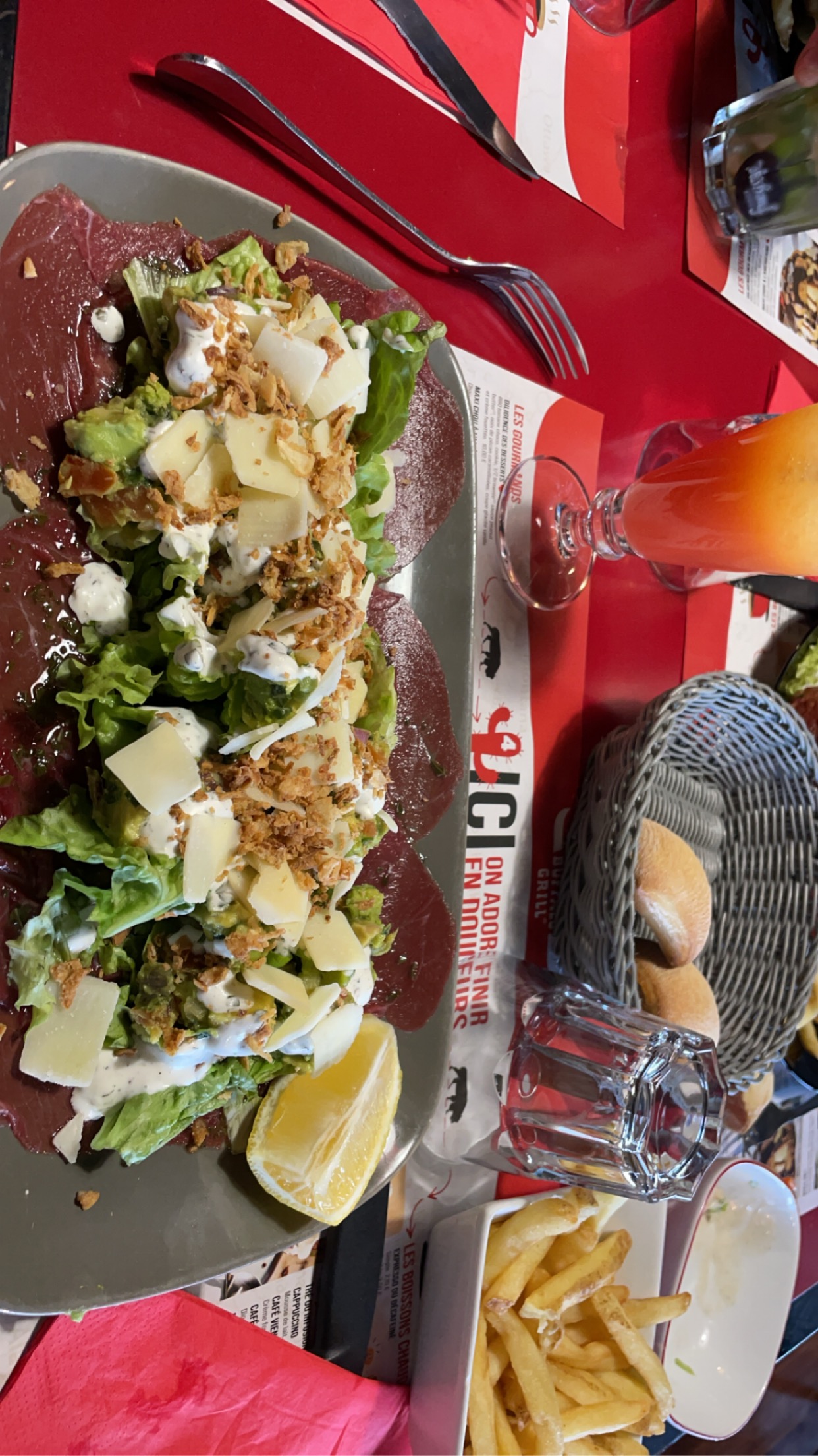 Je sentais plus le grillé que le bœuf pour le faux filet mais sinon très bon de même pour les frites au cheddar et le service est parfait
