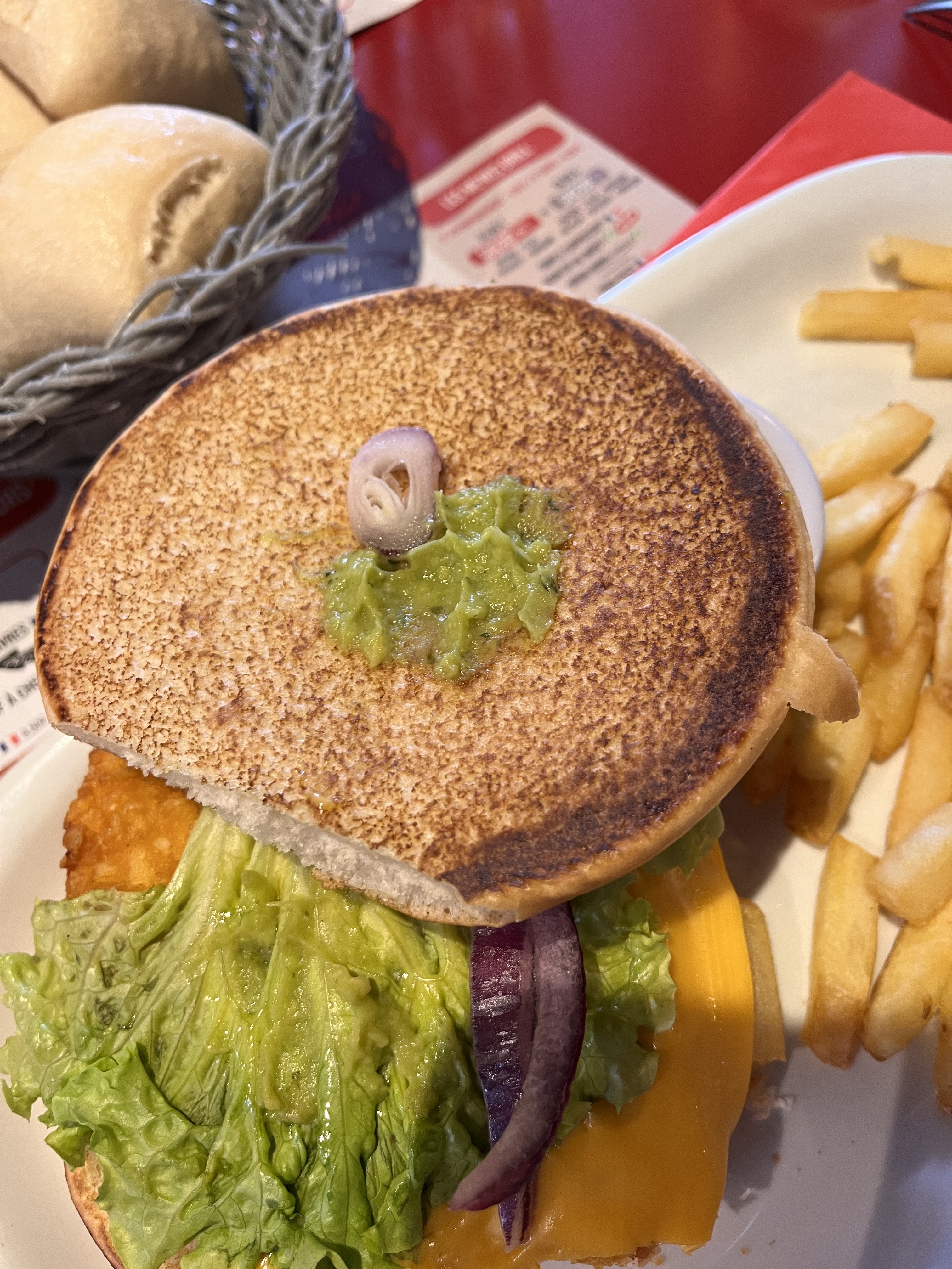 Plusieurs choses : manque de guacamole dans leur « nouveaux » hamburger au poulet (ci joint la photo) sauce manquante ou sinon pas les bonnes (roquefort au lieu de poivre) et manque de propreté (ci joint photo) Sinon Célia était très cool
