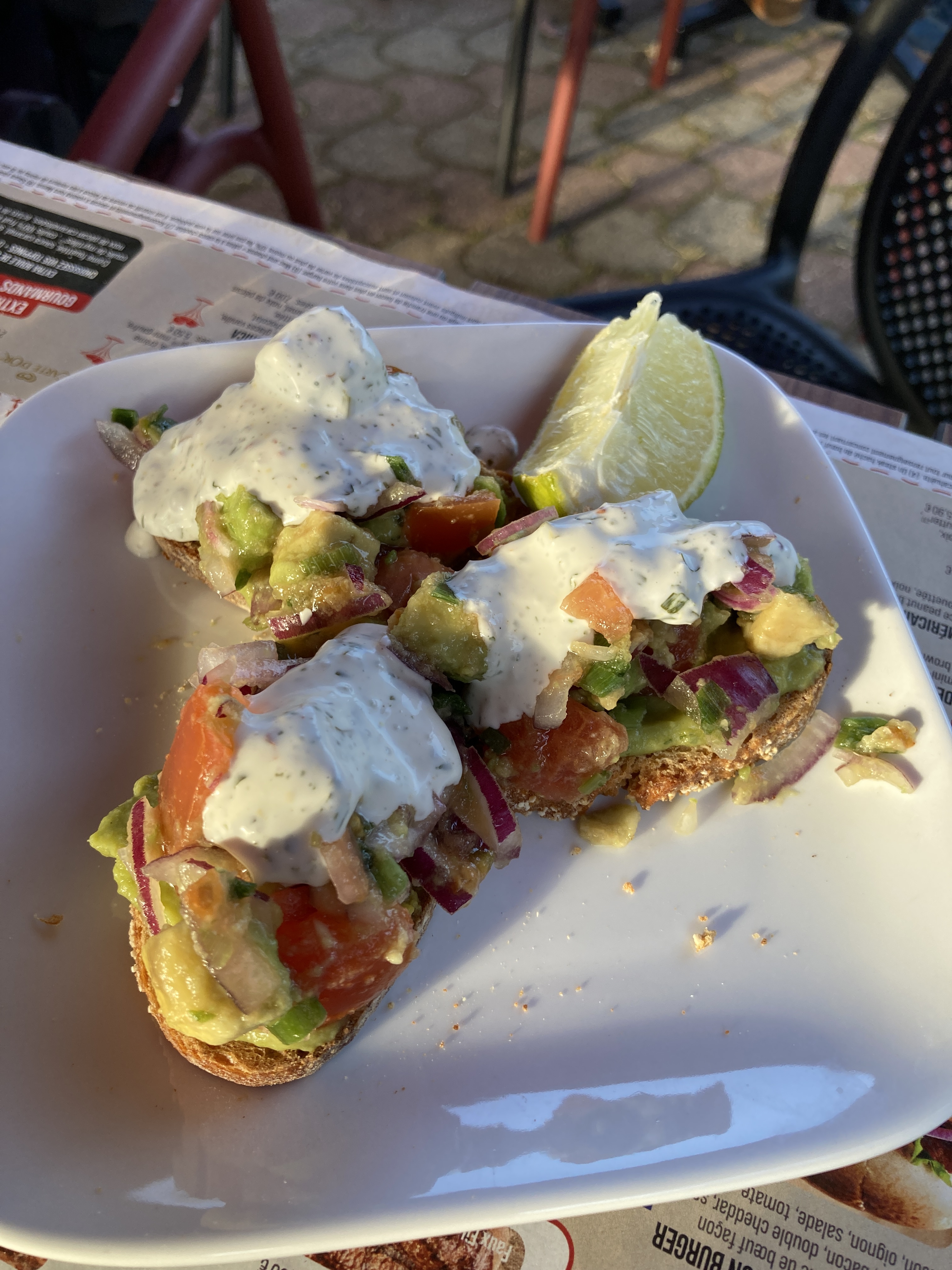 Nous sommes venue manger samedi soir, nous étions 2, ont nous a installé en nous présentant un flash code pour qu'ont puisse nous meme commander notre repas, après les dire de la serveuse qu'il avait trop de commande a prendre donc pas le temps de prendre notre commande, déjà la c'est pas très agréable étant donner que le restaurant n'étais même pas pleins, nous avons commander des cocktails qui n'étais vraiment pas bon est visuellement très simple pas de déco rien qui donne envie ont voie même pas que c'étais un mojito et une pina colada.. ensuite le service est à revoir quand la serveuse passe devant nous 2 fois et qu'elle nous débarrasse pas la table, étant donner que nous avions encore et l'assiette de salafe de bienvenue et celle du panier à partager, ont a du les mettre en évidence pour être débarrasser et lui rappeler que celle de la salade de bien venue etais aussi a débarrasser car sinon elle l'oublier, parlons aussi de la quantité franchement c'étais pas sa et la cuisson n'étais pas nn plus respecter, il n'y avait quasiment pas de sauce vinaigrette dans la salade, nous Somme très déçus et nous ne reviendrons pas.