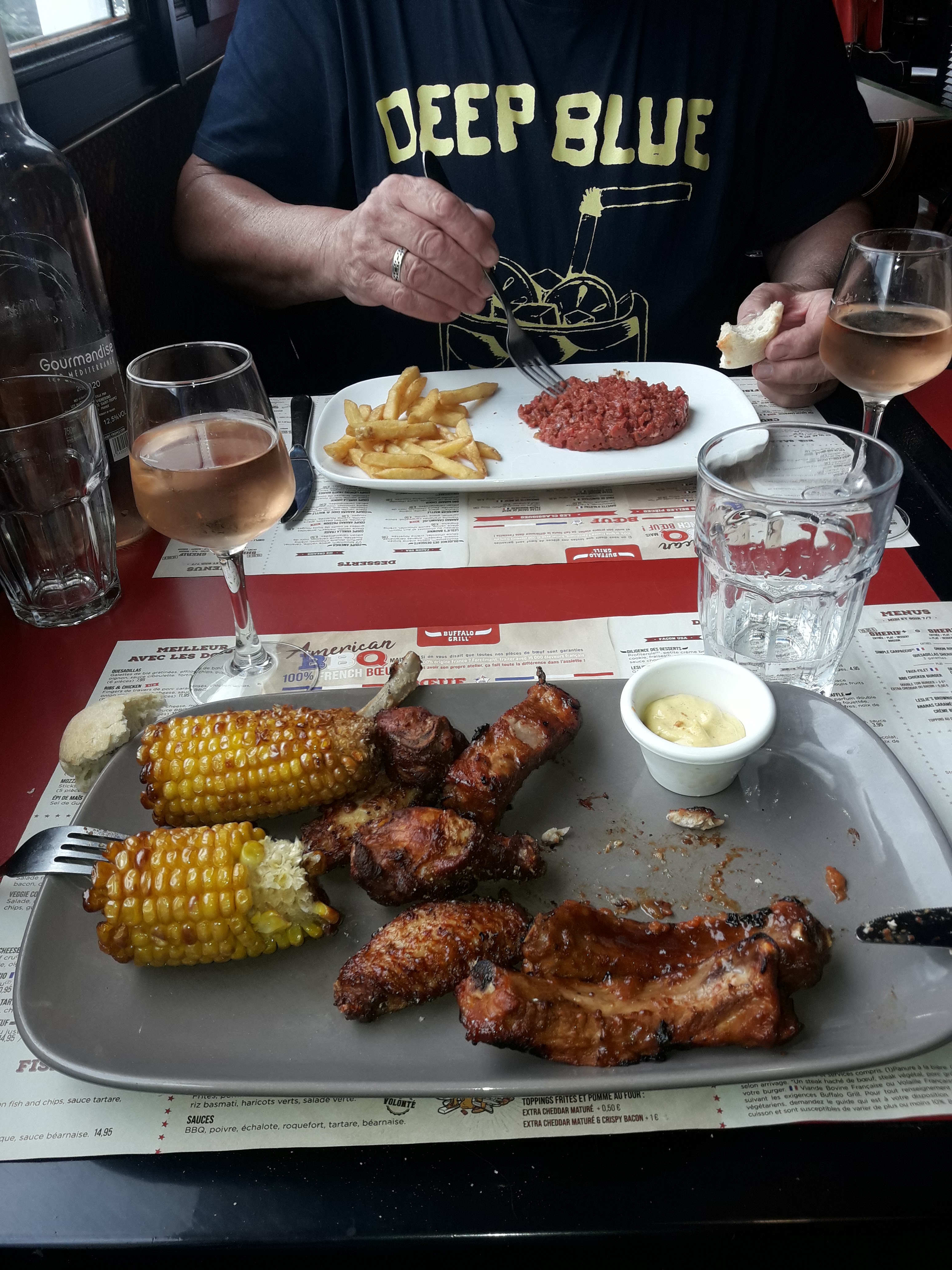 Si j’ai mis cinq étoiles, les raisons sont multiples, d’abord la proximité avec l’autoroute, la facilité pour se garer, un personnel poli, discret mais efficace. La cuisine n’a rien d’un gastronomique mais on sait pourquoi on se rend Chez Buffalo, ici, ils connaissent leur métier, la viande est bonne, la cuisson optimisée. Nous avons apprécié la gentillesse de la dame qui nous a accueilli, la rapidité et le sens de l’observation du jeune homme qui nous a servi sans négliger son efficience, un Buffalo à l’ancienne comme nous aimons et cela fait quelques années que nous fréquentions cette enseigne au gré de nos voyages et celui ci nous reviendrons avec plaisir.