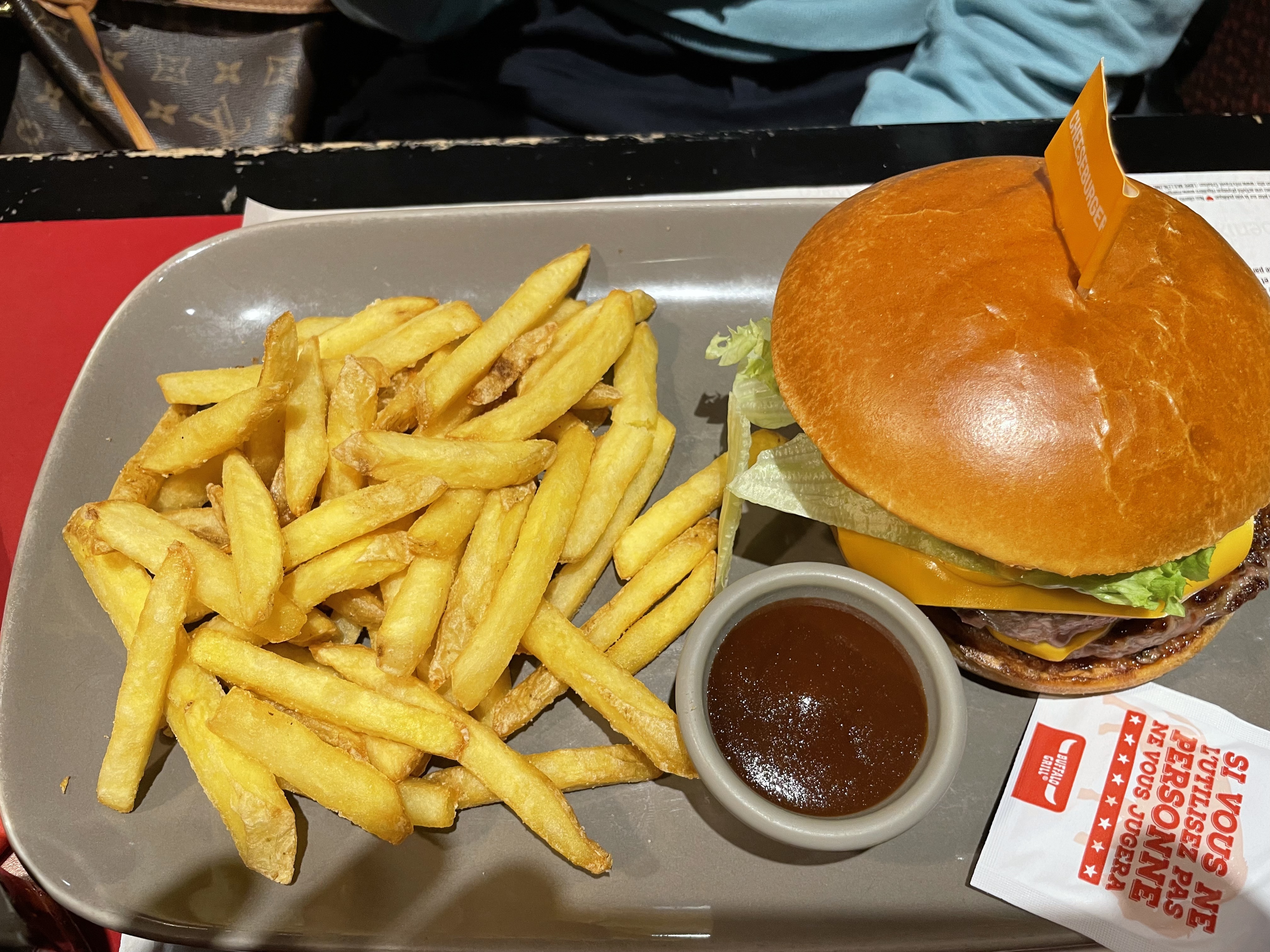 C'était propre mais pour 16 euros un menu je trouve qu'il y avait pas beaucoup dans l'assiette, et en plus on a payer plus chère à la fin que pour 4 personnes. Je vous avoue je suis déçu moi qui aime bien Buffalo Grill. Par rapport à une pizza ayeur à 14 € ou un kebab le choix est vites fait.