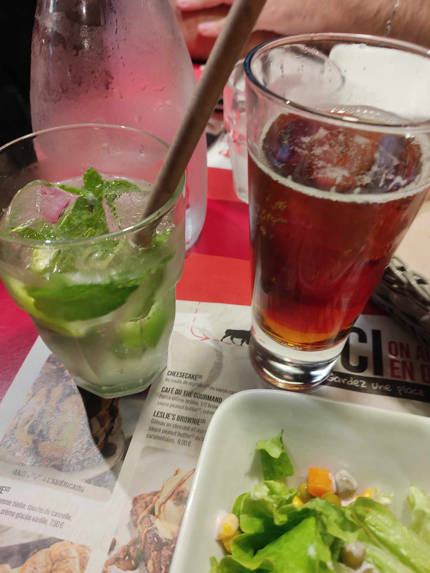 Le temps d attente, une fois la commande passée, a été assez long. D'autant qu'avec un enfant, l'impatience est vite montée. Un des cocktails n'était pas conforme à la recette. Les plats sont bons, sans plus. Réclamer 2 fois une carafe d eau, et attendre encore.... il y a des ruptures de stocks (purée de fruit pour cocktail, pomme au four...), pour un vendredi soir, c'est pas l'idéal.... Néanmoins l'ambiance était sympa avec des musiciens country. Dommage pour cette enseigne qui a connu de belles années.....