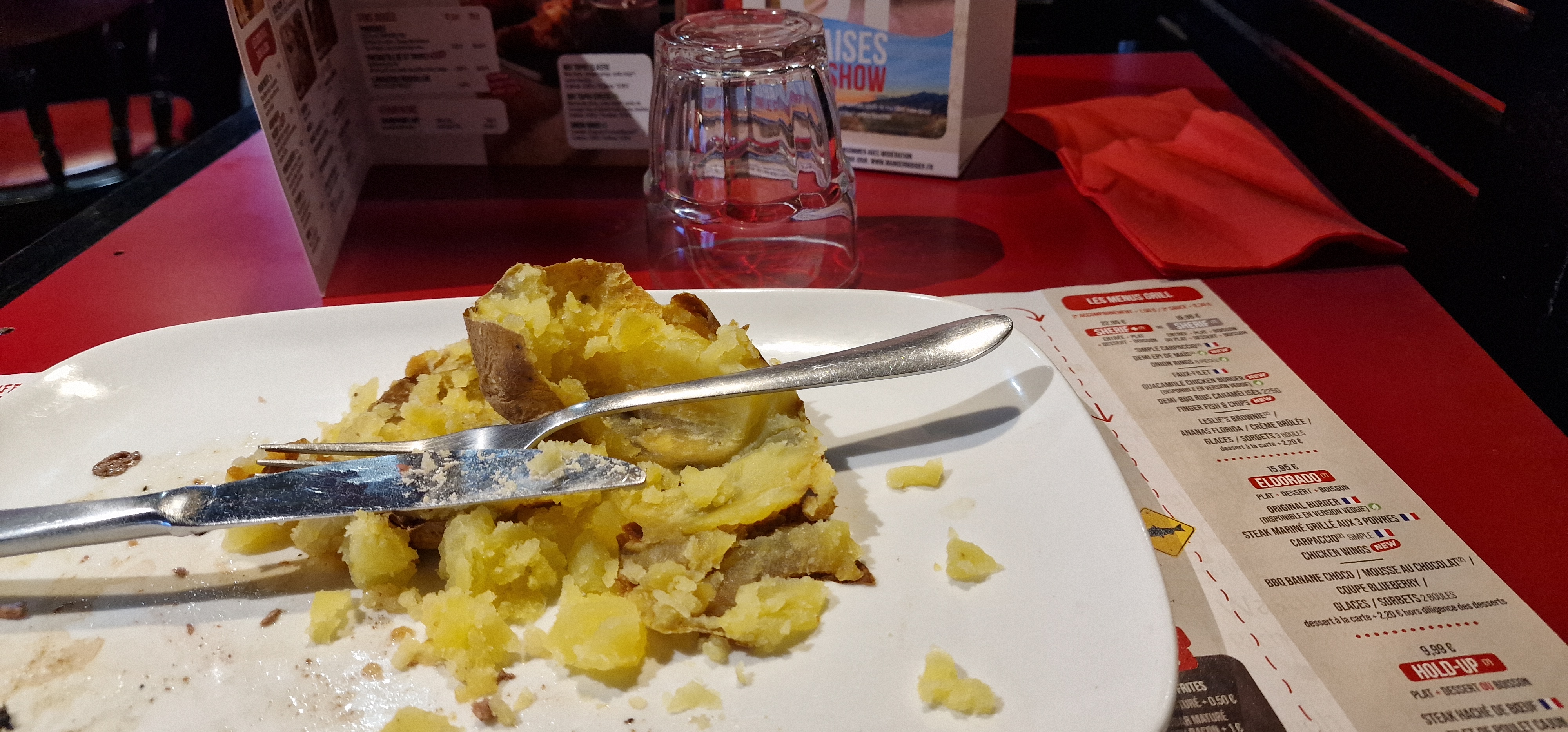 Pomme de terre au four toute sèche, bavette vraiment pas bonne. En dessert, un thé gourmand demandé et pas de crème brûlée, remplacée par de la Chantilly, sans en avoir été prévenue avant : on aurait sûrement demandé un autre dessert à la place, c'était très léger comme thé gourmand et une Chantilly ne remplace certainement pas une crème brûlée ! Nous l'avons mentionné à la fin mais aucun geste n'a été fait. La qualité n'est pas du tout au rendez vous pour le prix.