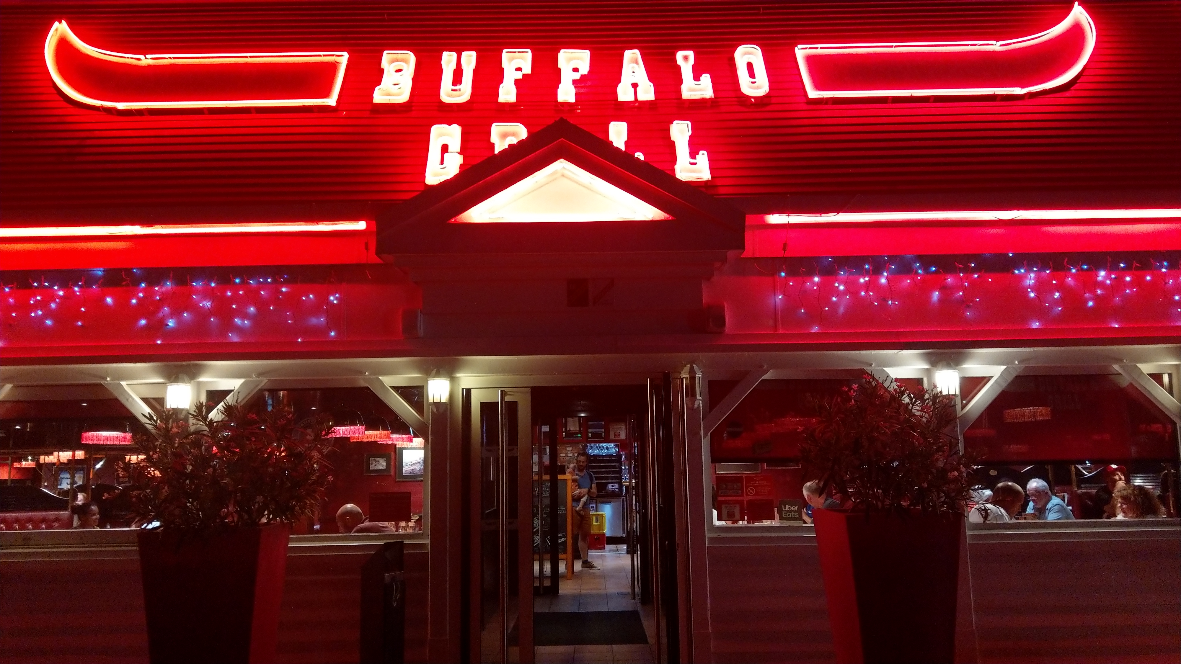 Un Buffalo du même standard que les autres avec un bon accès. J'ai été satisfait de la qualité de la viande et de sa cuisson. Il y a eu une erreur dans les boissons (mais trop tard déjà entamé), les 2 boissons ont été offerte, j'ai été surpris de ce juste commercial, bravo. Bon ce soir là était très bruillant avec une salle remplit de familles avec plein d'enfants comme nous. Les couples étaient je pense bien placé un peu isolé.