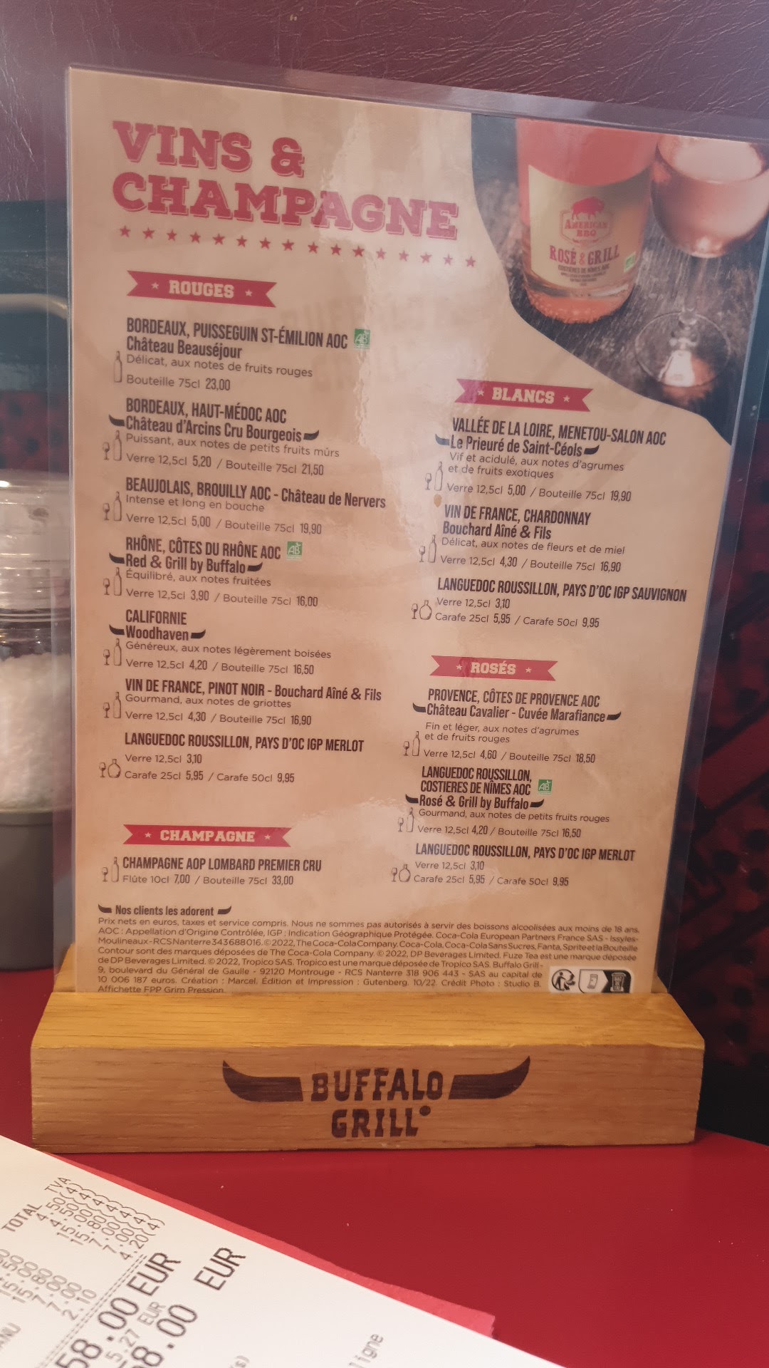 Superbe expériences, service rapide et très aimable ! Première fois que je teste Bufallo Grill et surement pas la dernière :) mention spéciale pour le serveur Corentin.