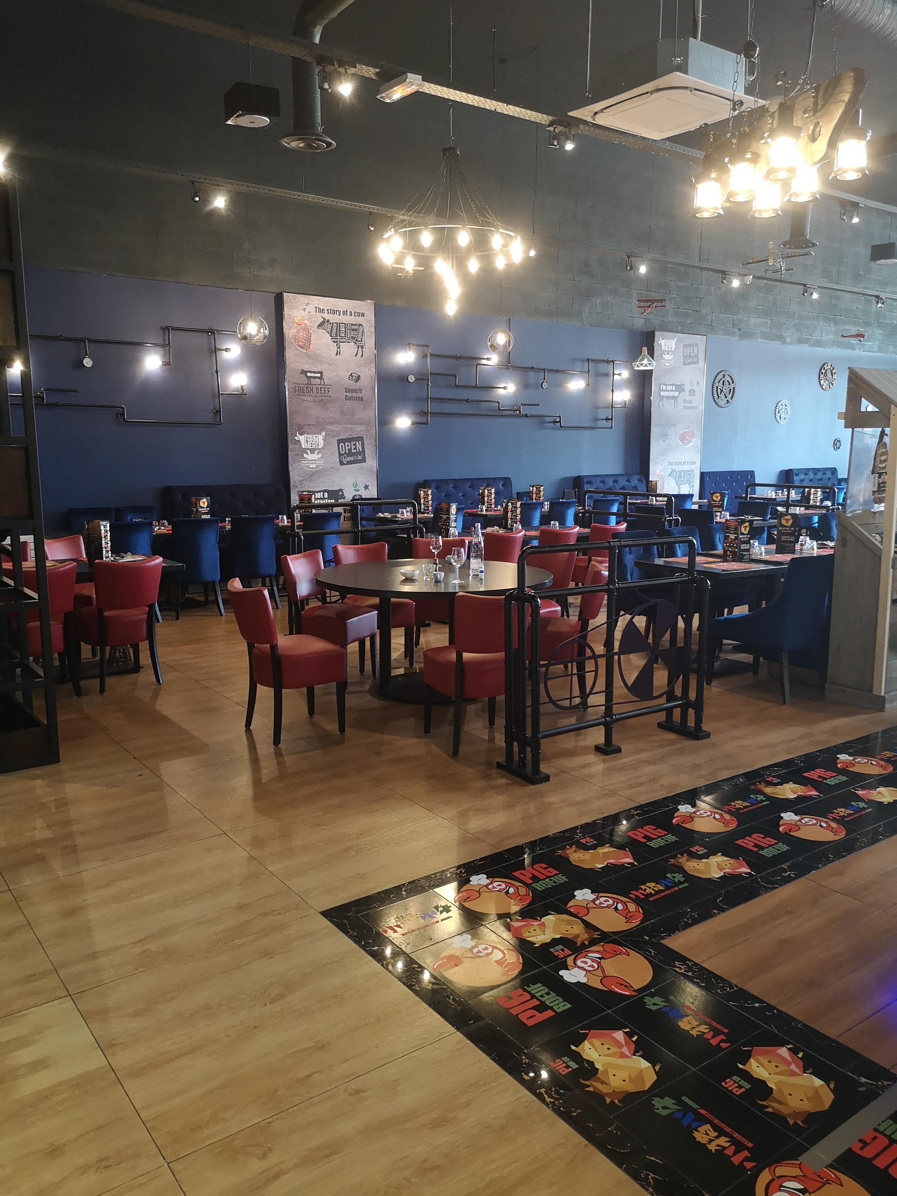 Je me suis rendue dans ce réstaurant pour faire une surprise d'anniversaire a quelqun de mon entourage qui aiment la viande nous nous sommes rendue labas acvec les enfant aussi super ils ont un air de jeux pour les occupé sauf que niveau sécurité et propreté ce n'est pas a jour la toile de l'air de jeux pend en y regardent plus précis je voit que en haut du jeux il y as un énorme troux ou les enfant peuvent yomber une hauteur d'environ 1.40 pour un petit enfant sa peut creer des dégats puis au sol des visse depassent trés dangereux au niveau du présentoir buffet dessert il es bien beau mais en revanche la viande était bien noir et verte et bleu un signe d'une viande pas fraiches .. puis a sa s'ajoute quand jen fait la réflection au serveur il me repond c'est pas graves les gens la mangent c'est quel es bonnes la vitrine a viande n'est pas trés iluminé ce qui tape pas en flagrant au contraire quand vous allumer votre téléphone vous voyez bien les couleur sur les viandes qui passe du gris au bleu et au vert avec des nuances donc signe que la viande n'est pas fraiche ce qui ma obbligé de faire demi tour et chercher un autres resto rapidement voila je ne recomande en aucun cas mais je pense me douter pk ils était fermer aussi longtemp depuis fin juin a fin juillet ...