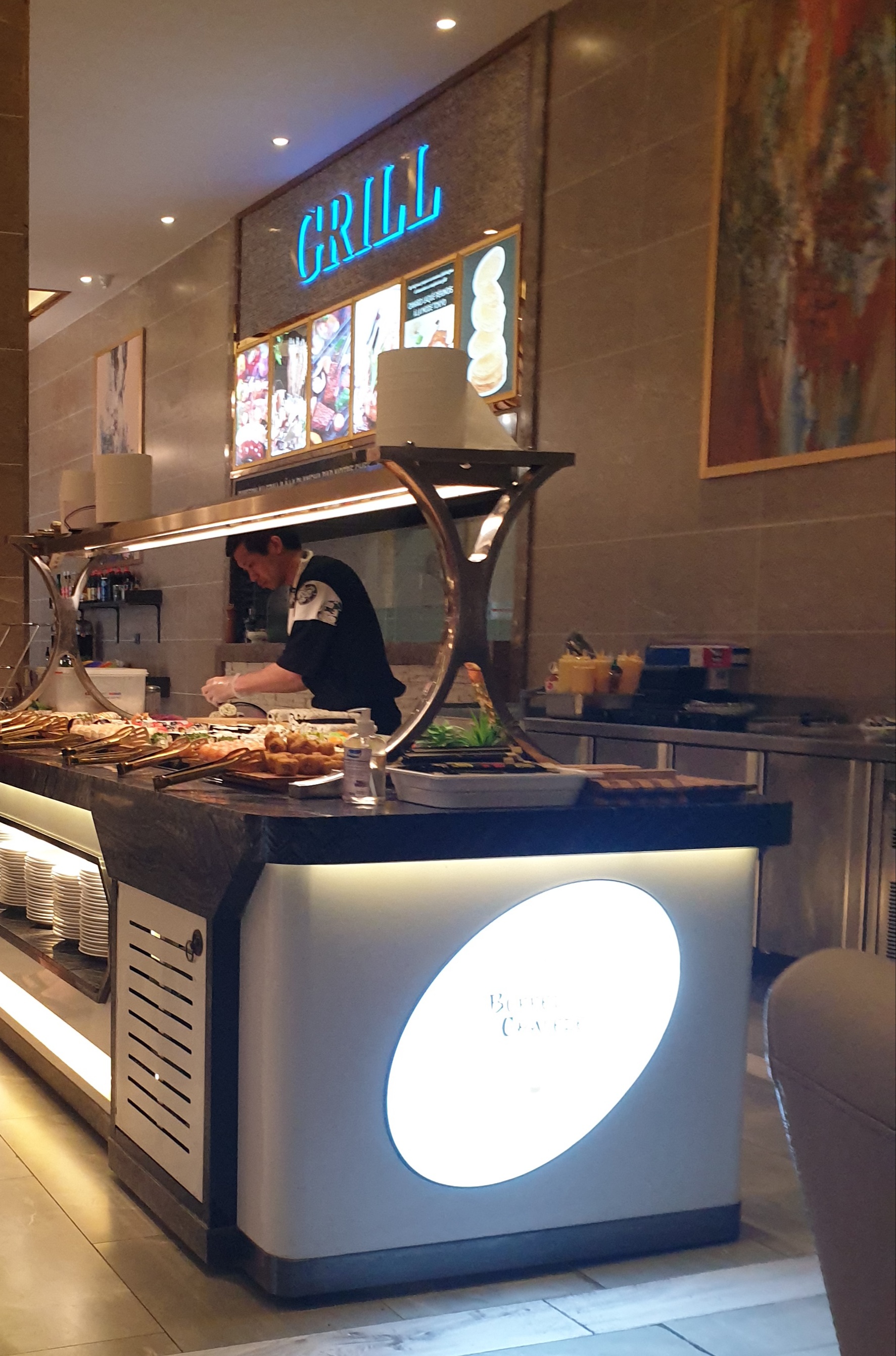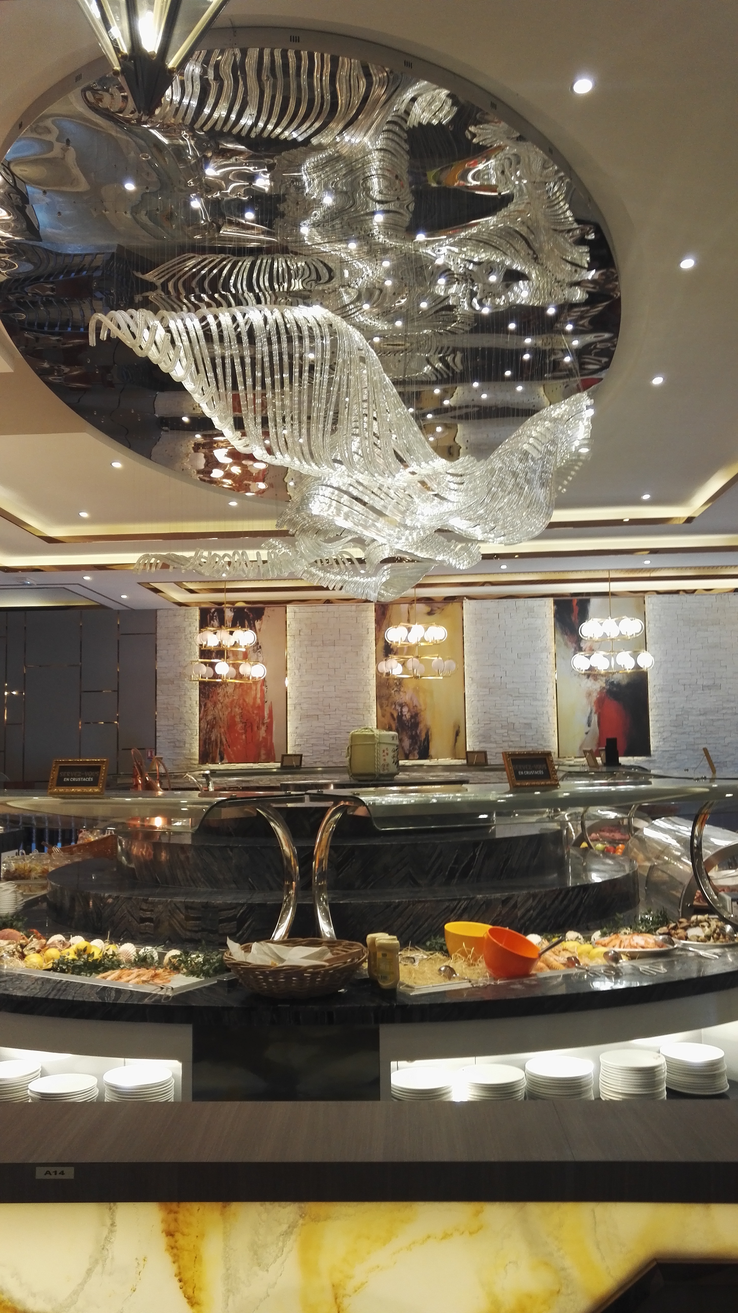 Pour commencer, le restaurant 'buffet à volonté' ne ressemble pas aux autres, il est beaucoup plus chic : la décoration est soigné, il y a de beaux luminaires, les chaises sont confortables et il y a même un robot qui vous sert à boire. J'ai trouvé que les sushis étaient très bons et variés, n'hésitez à en demander d'autres, ils les feront immédiatement. Il y a également un beau buffet de fromages, plus dense que d'habitude. Sinon les plats et accompagnement sont assez classiques. J'ai trouvé que cet établissement valait le coup, si je retourne dans le coin, je m'y rendrai sûrement.