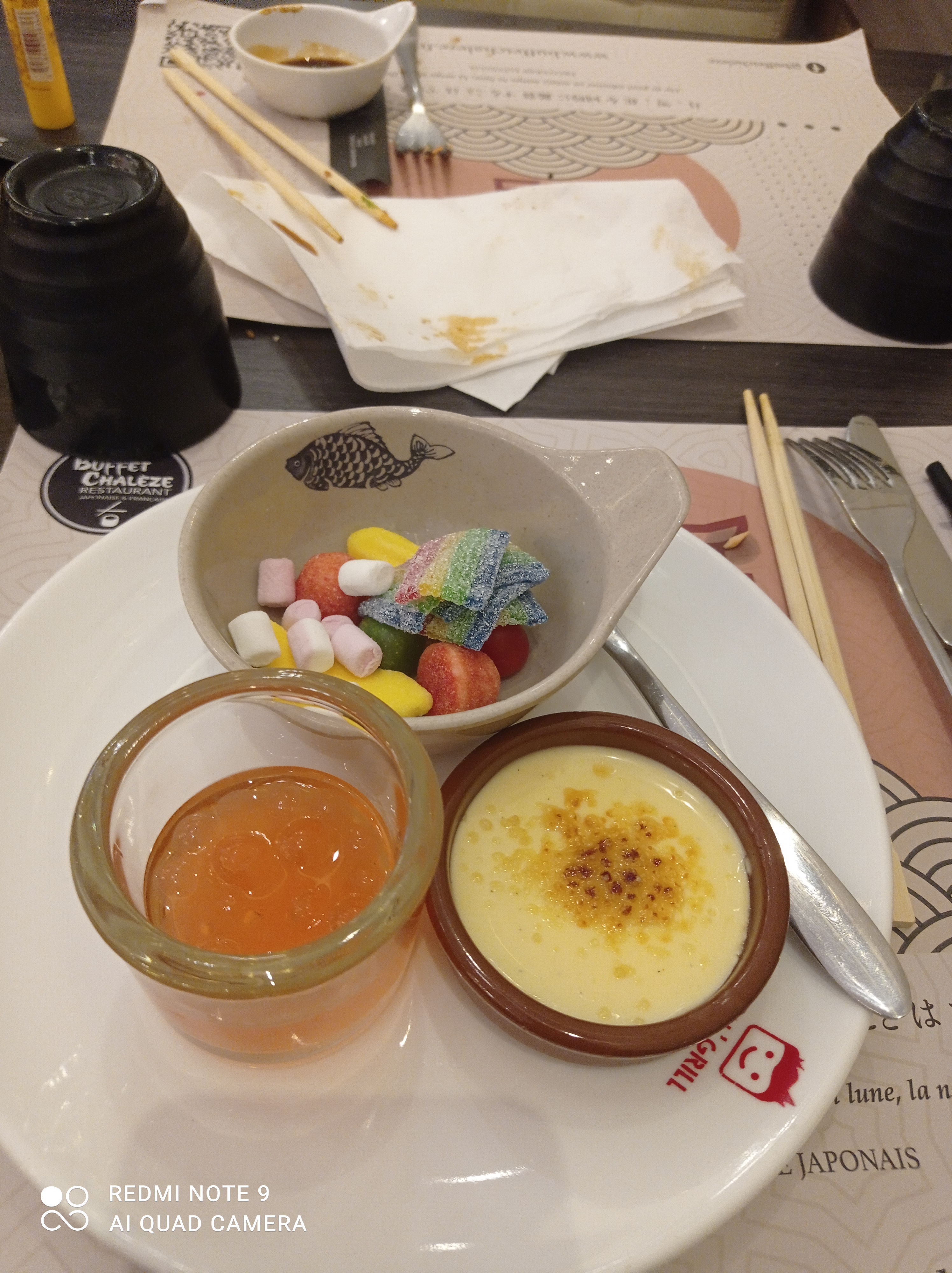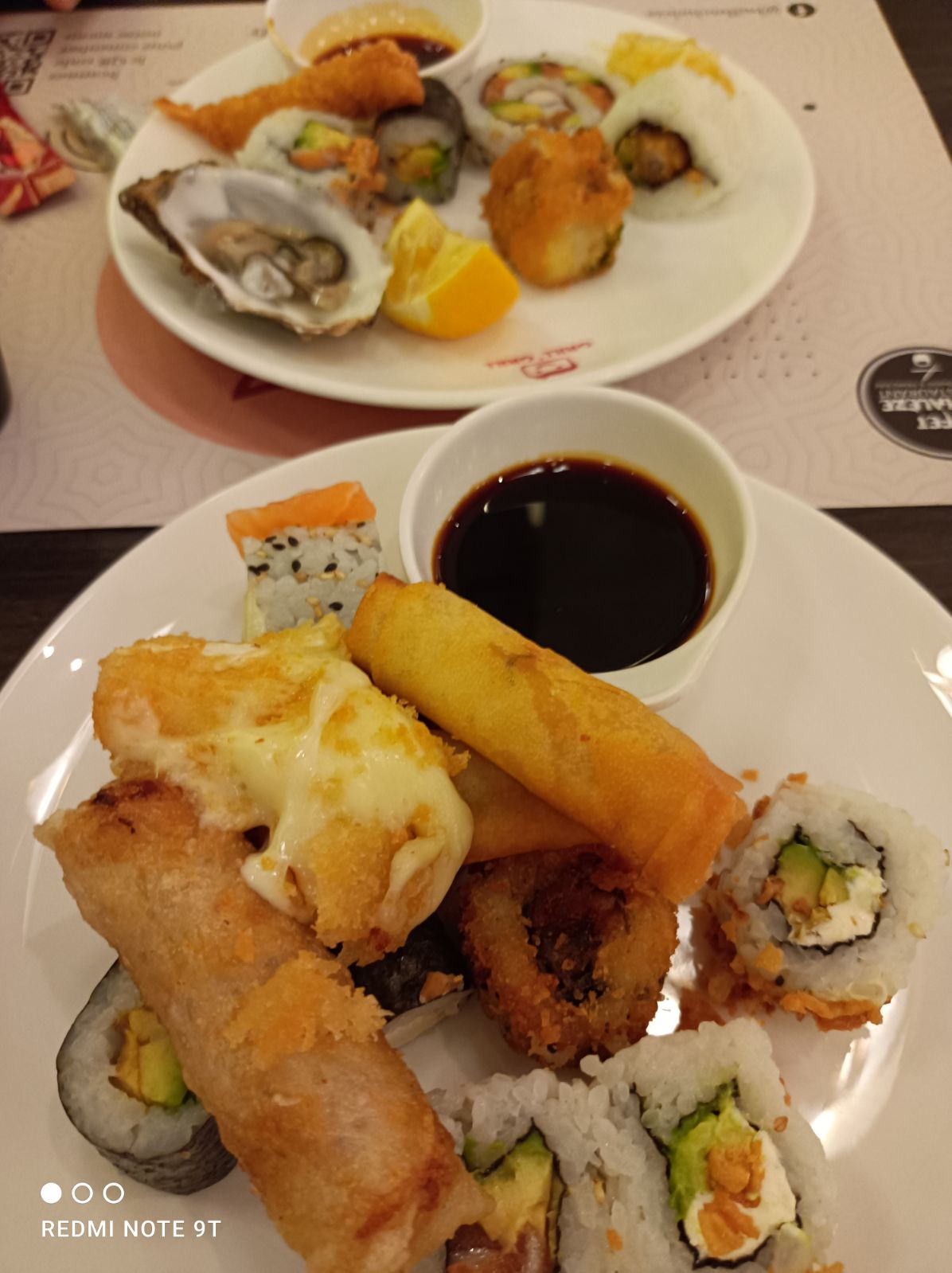 Aller on se fait une folie, un petit resto volonté. Nous avons été accueilli rapidement, nous sommes empressé de nous rendre au Buffat à volonté . Il y avait un choix plutôt varié avec de nombreuses saveurs. Des sushis en passant par le fromage français, il y en a pour tous les goûts. Certes, les saveurs ne sont pas extraordinaires, mais pour rapport aux qualités prix, vous ne serez pas déçu. Enfin bref vous lisez vous lisez pas ce que je dis, ça vaut le coup pour le prix mais si la qualité est pas top