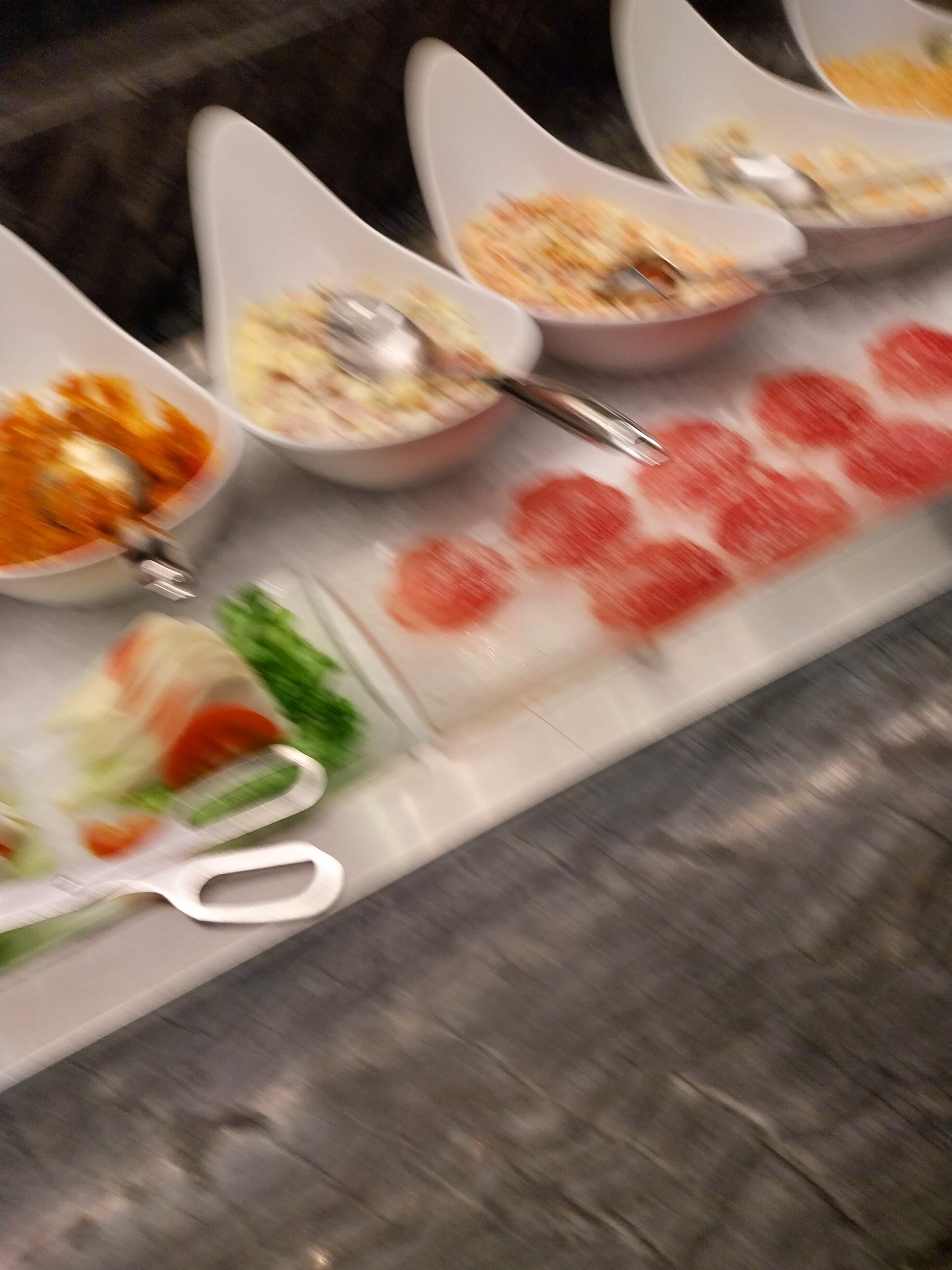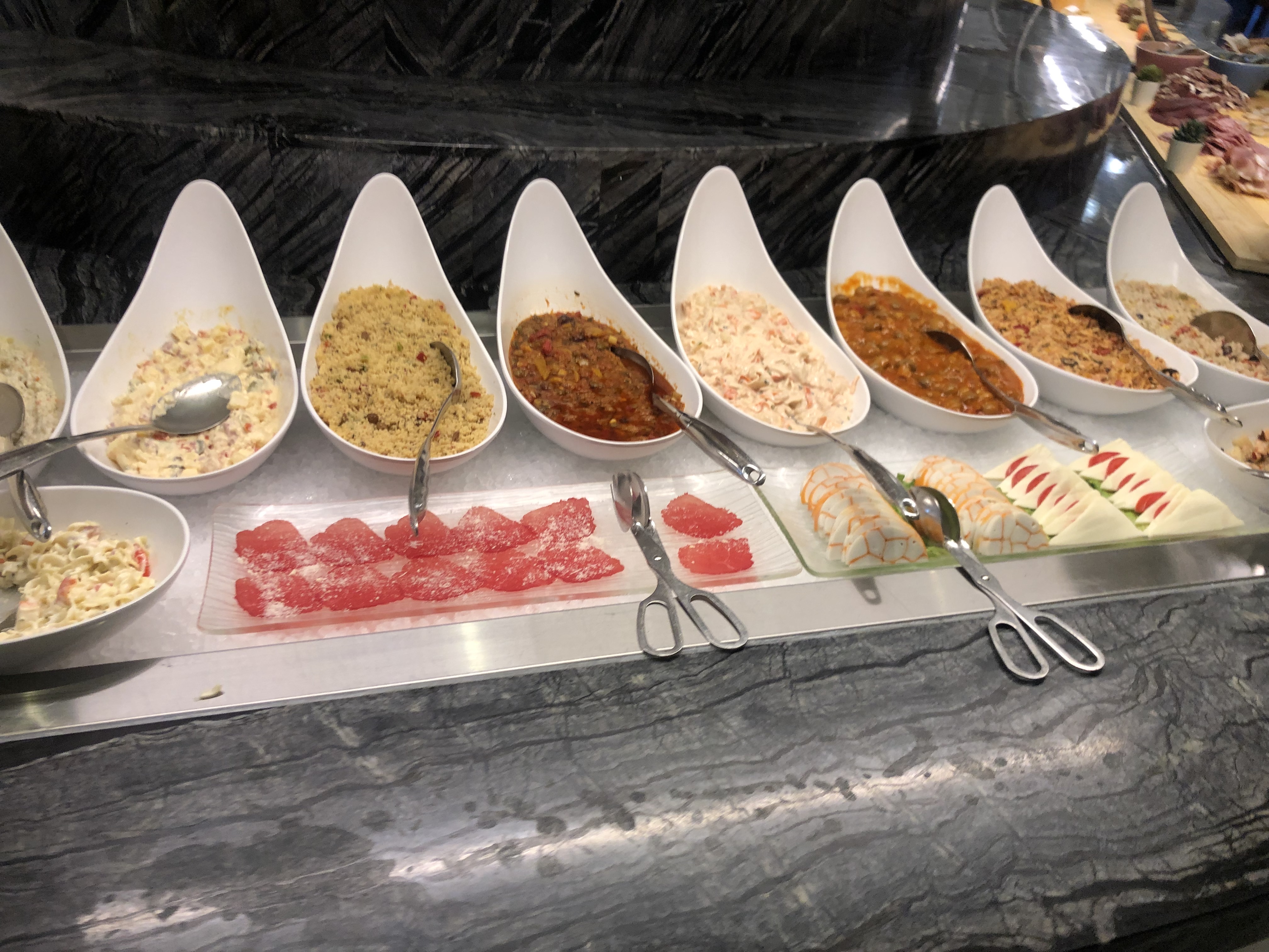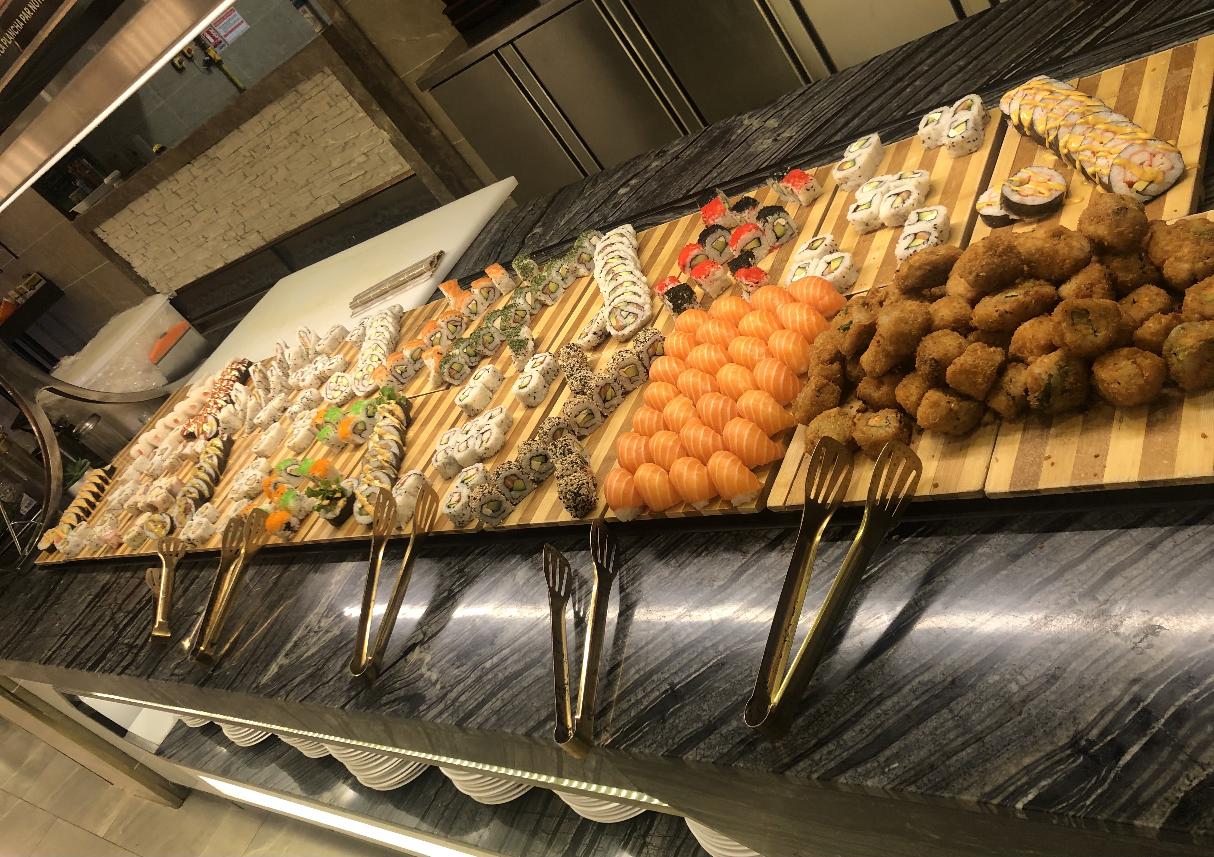 La décoration est incroyable, très spectaculaire et chic ! Grand choix de plats. Les sushis sont excellent et fait devant vos yeux. Malheureusement pour le reste : Très déçu pour la partie des plats chauds, peu de goûts, sec, à peine tiède et limite froid... La charcuterie et le fromage ne sont malheureusement pas mis au frais mais la présentation est très belle. En résumé : des paillettes dans les yeux mais pas dans la bouche
