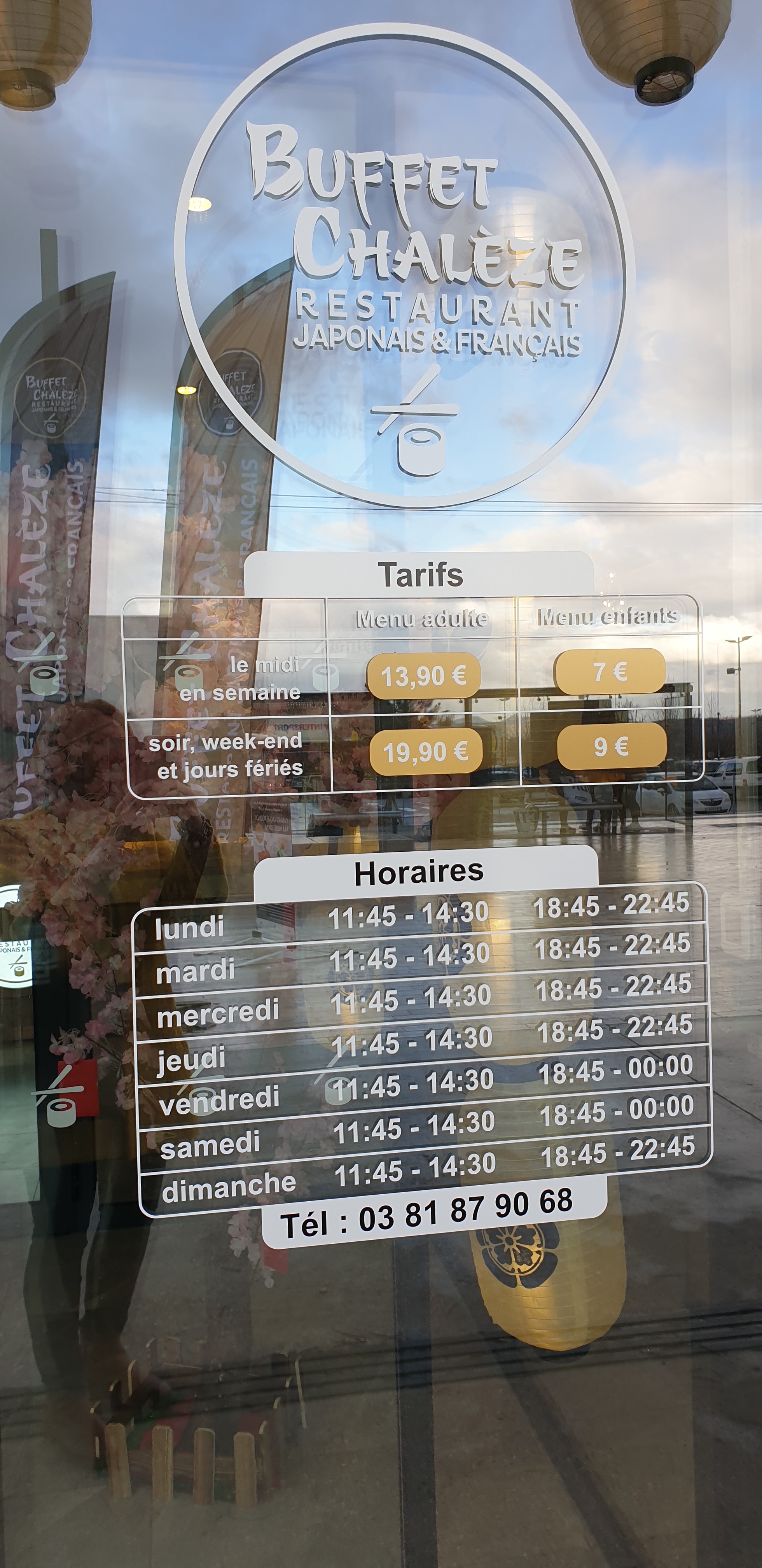 Le restaurant Buffet Chalèze est le meilleur restaurant japonais à volonté de Besançon selon moi ! Ils font des plats à emporter. L'intérieur du restaurant est beau, tout est très bon. Il y a un Sushi Master qui fait les sushis sous vos yeux, ils sont délicieux. Vous pouvez manger des déjà préparés ou choisir des viandes à griller, option wok également. A côté du grill on peut aussi prendre des crêpes !