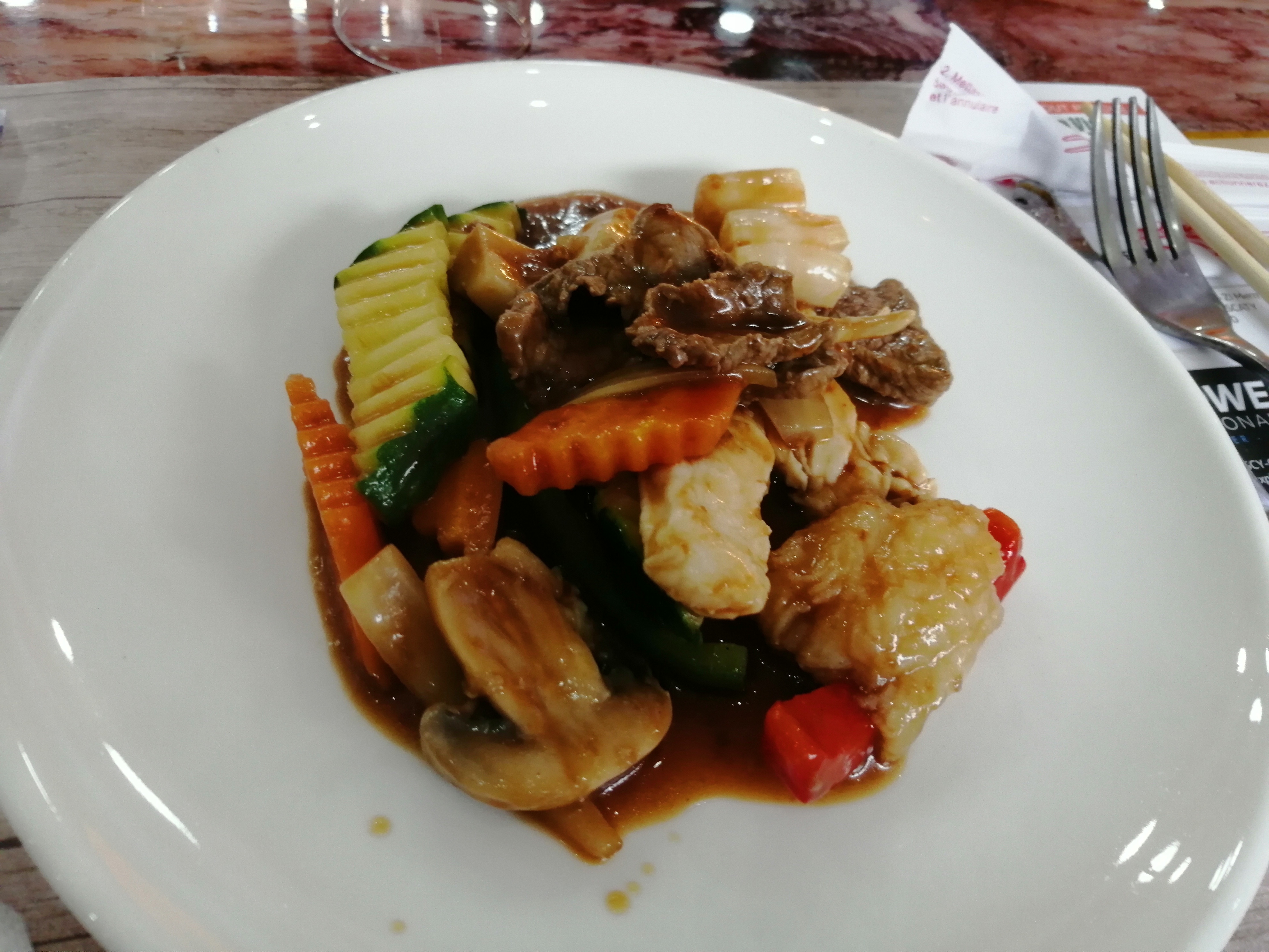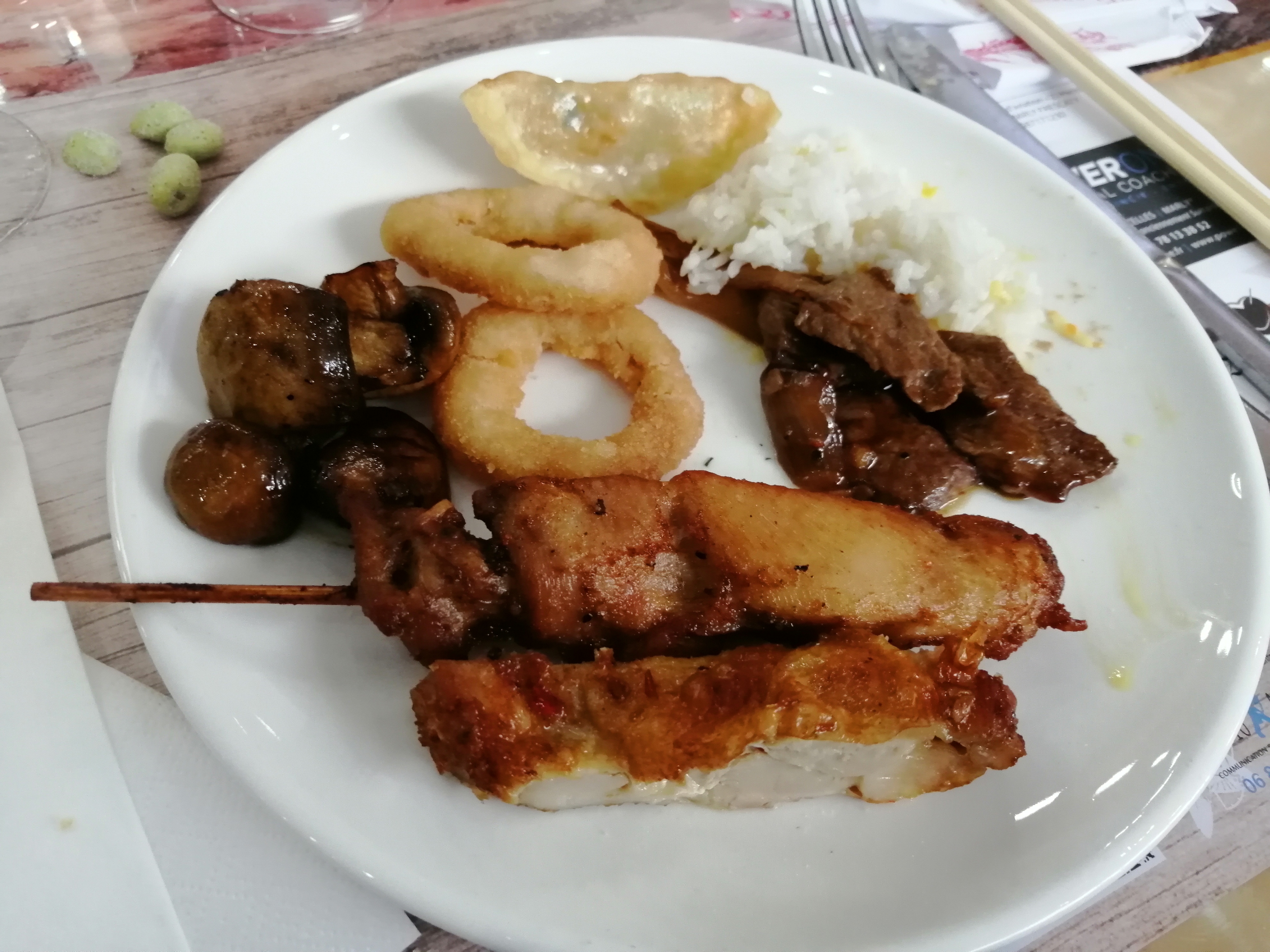 Restaurant asiatique, du chinois, du japonais. Un large choix pour tous les goûts. Les buffets sont des bateaux. Il y a un buffet où vous choisissez votre viande, poisson, légumes que vous donnez au cuisinier qui vous les prépare. Il met de l ambiance en faisant de la musique avec ses poêles. Un plus. Un buffet de desserts, des fruits (certains sortes de conserves à mon avis), des tartes des glaces et des Bonbons pour le bonheur des enfants et des grands 😉😊. Les prix sont corrects, 18,80 euros le buffet à volonté le soir par adulte. Le personnel est très accueillant et sympathique. Merci pour ce moment