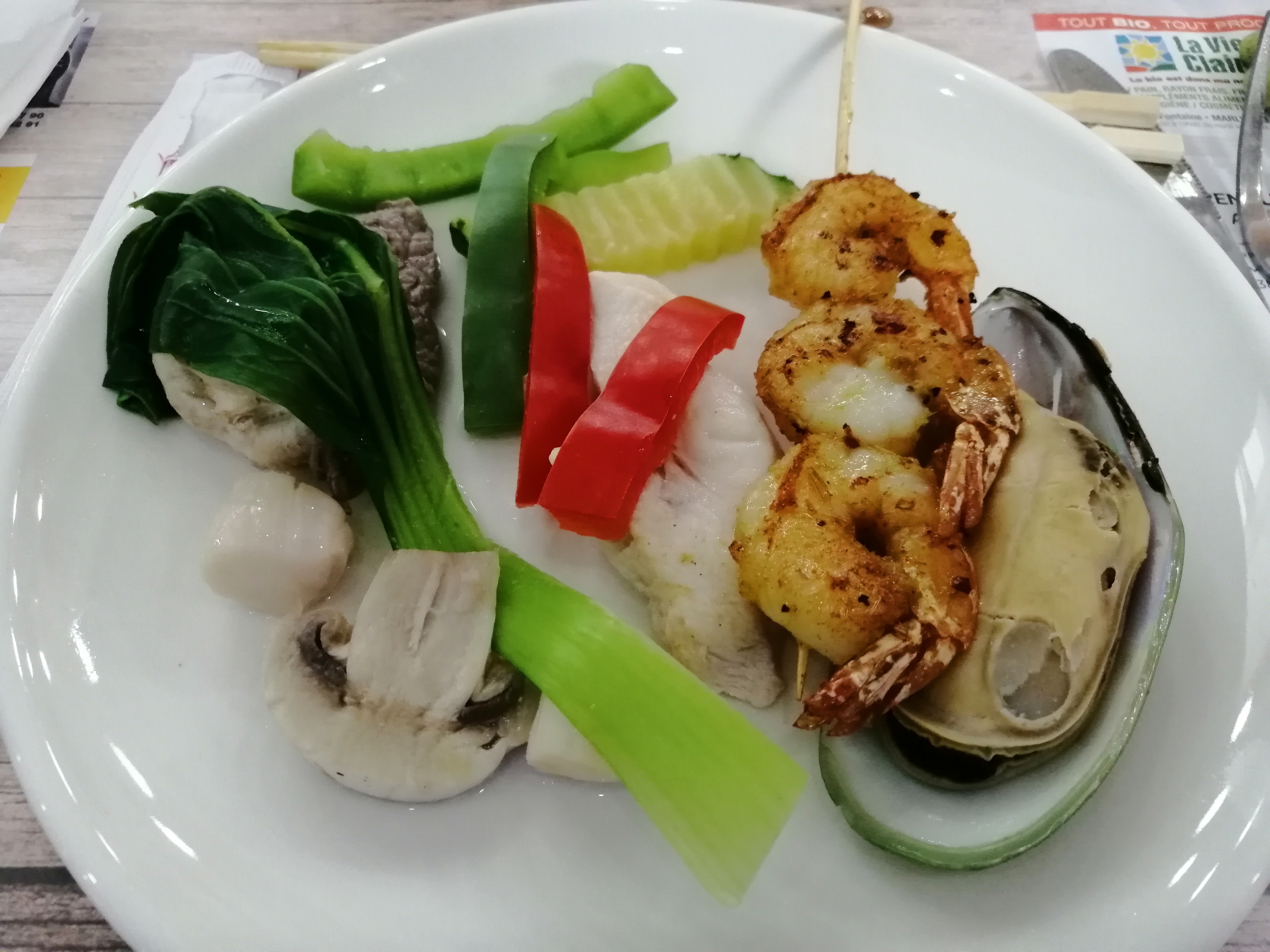 Buffet copieux, beaucoup de choix, mais le poisson en libre service pour la cuisson au wok devant nous était congelé, dommage