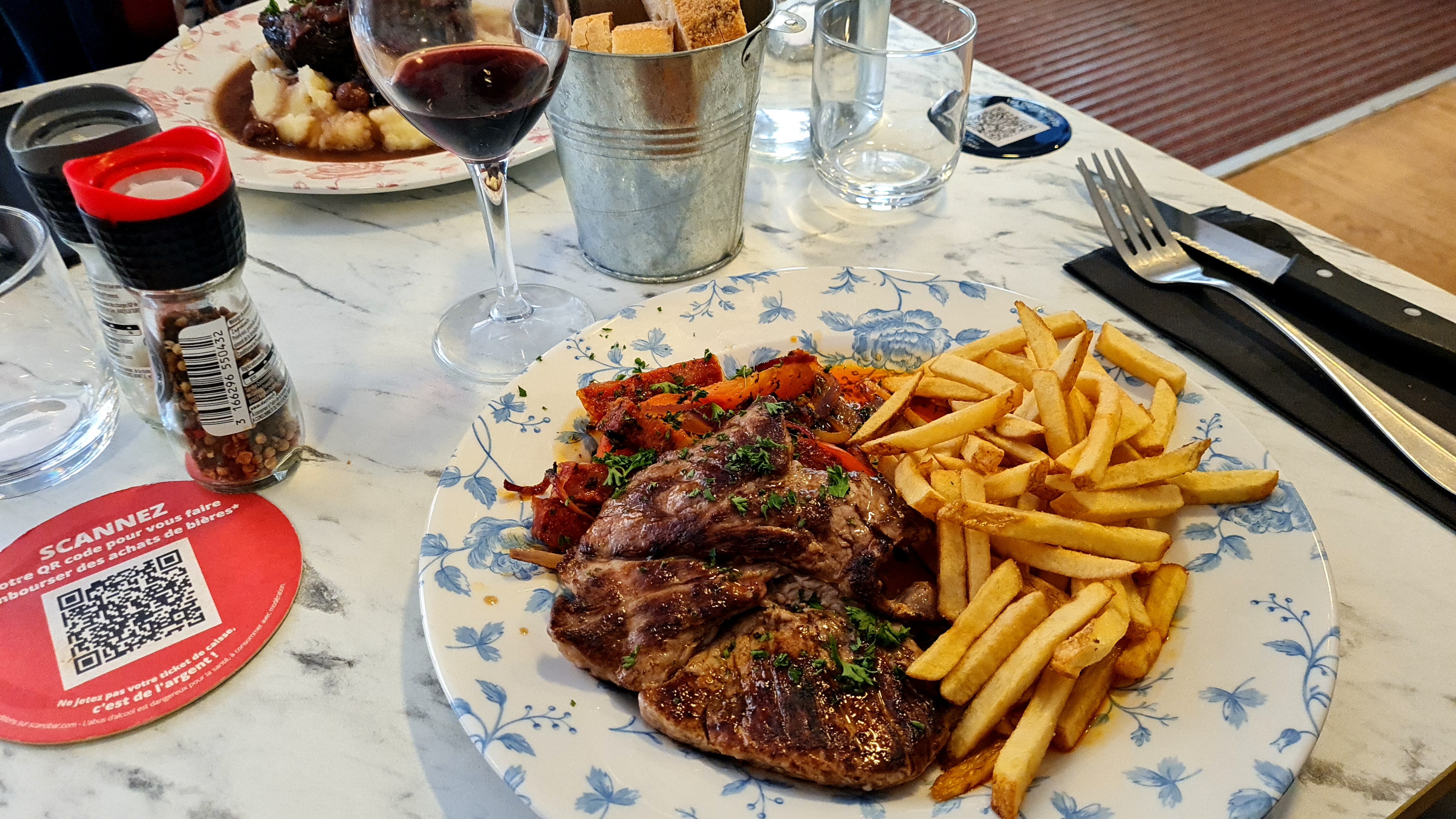 Petit restaurant sympathique, accueil très bon. Les frites sont fraîche, la viande est local. Cela manque juste un peu de sauces.. L’assiette est fade c’est un peu dommage. La présentation de l’assiette n’est pas ouf également. Le prix est correct pour un menu.