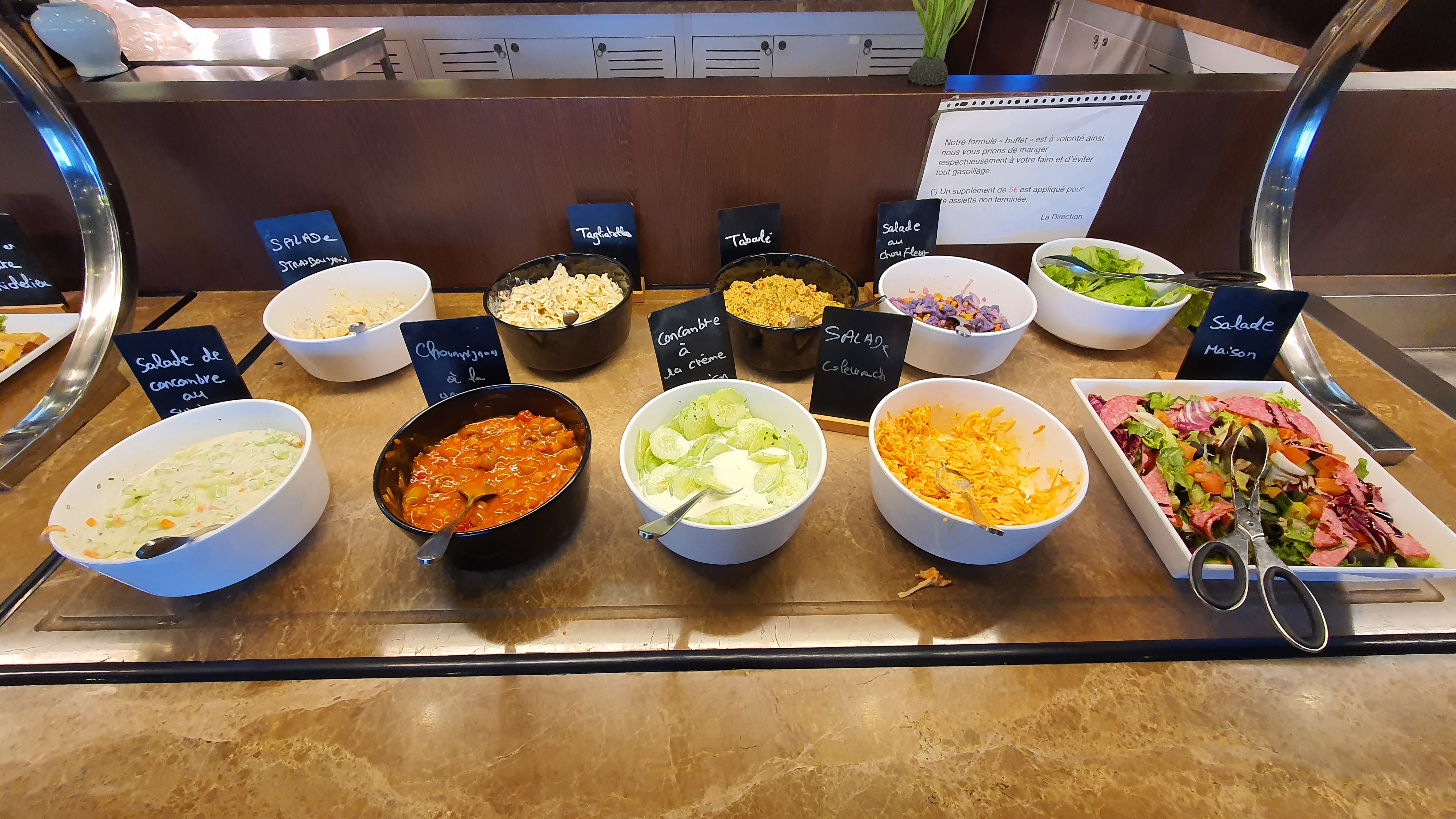 Beaucoup de places plein de choses à volonté. Personnel agréable. Cela n'est pas de la grande cuisine mais le prix est tout à fait correct et les plats proposés en adéquation avec celui-ci. Si vous avez de l'appétit c'est le lieu où il faut aller