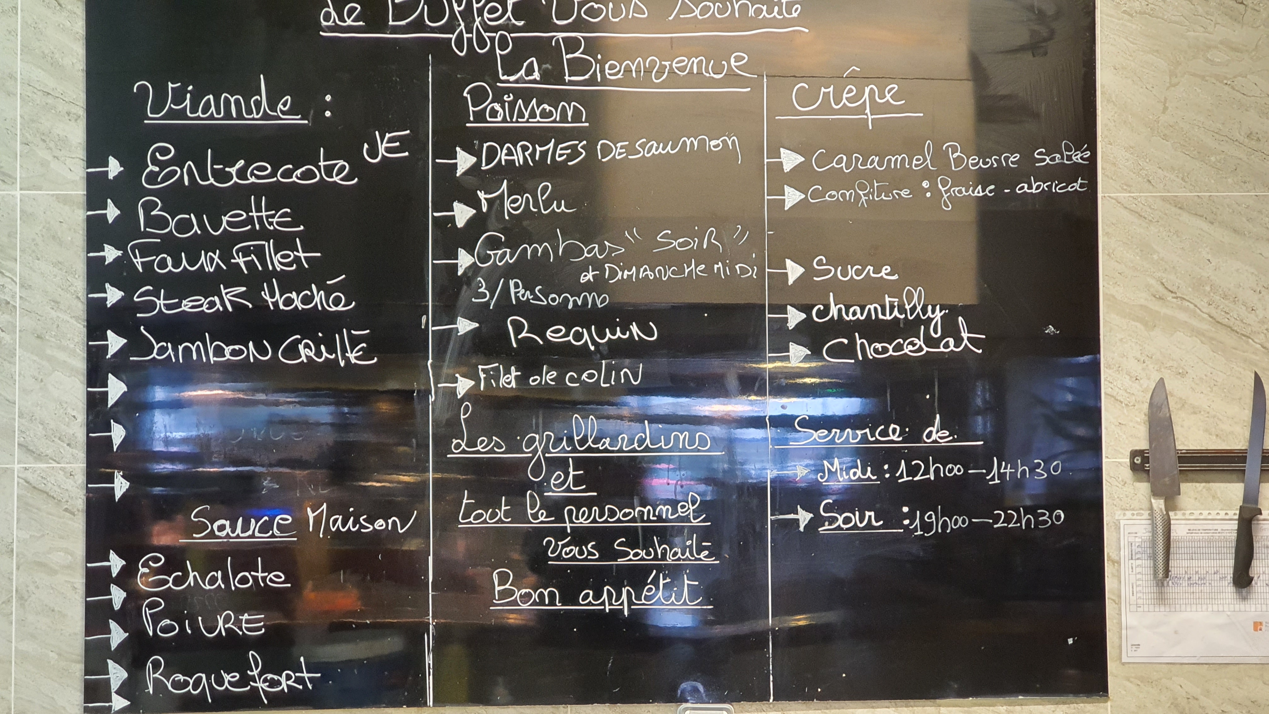 Accueil agréable. Entre le midi et le soir, Trop grande différence de produits proposé dommage. La viande est excellente et bien tendre et une bonne cuissons dommage que ce soit des petites portion. Le hamburger est excellent aussi. Les légumes et la charcuterie sont de qualité. Besoin d amélioration au niveau des boulots dont été déçu. Le crevette étaient bonne. Le dessert ok. Dans l'ensemble il y en à pour tout les goûts et comme on ne peut satisfaire tout le monde moi le Premier. Continuez à vous améliorer et je vous encourage fortement. A plus. Personnel agréable et sympas.