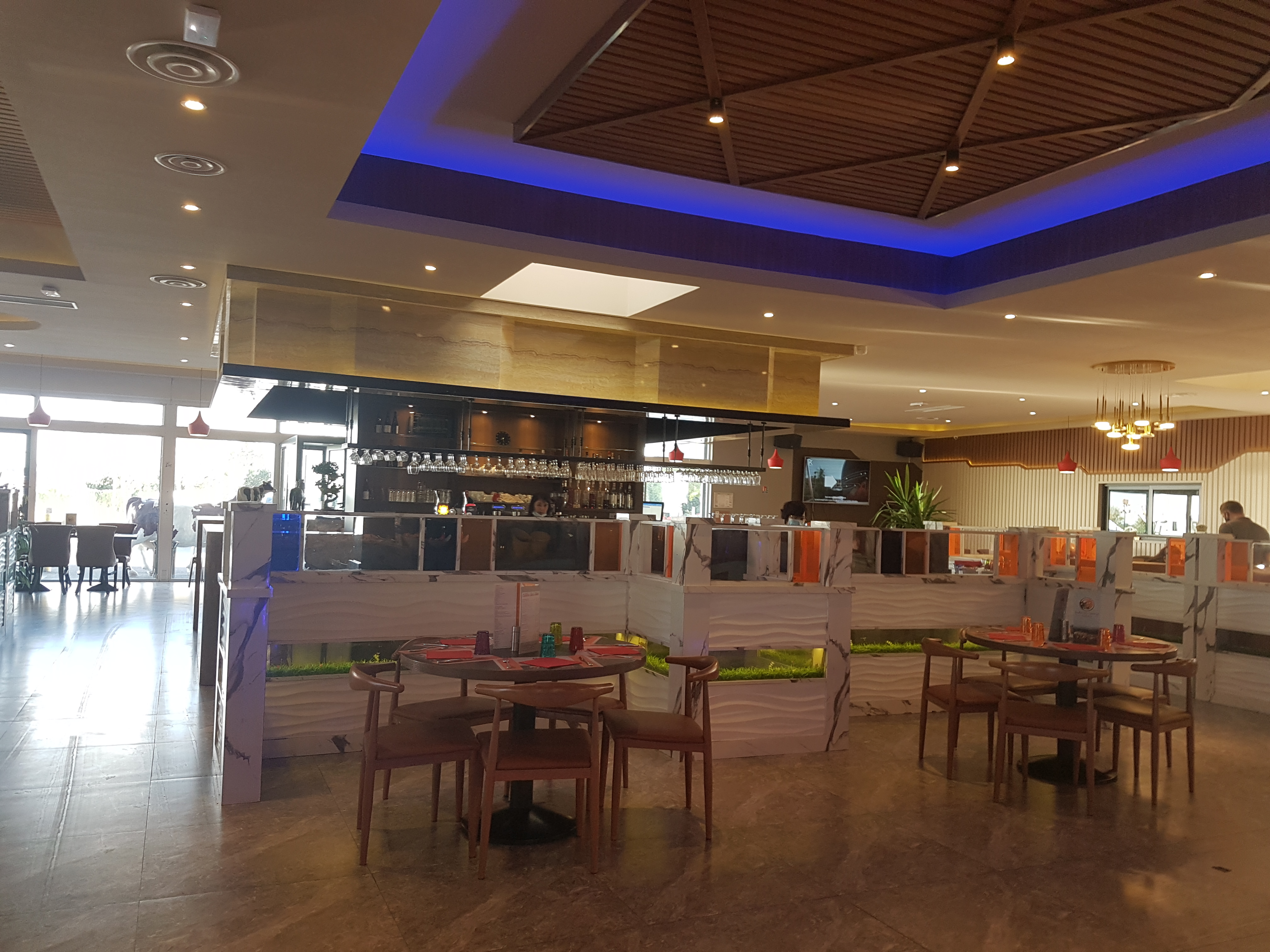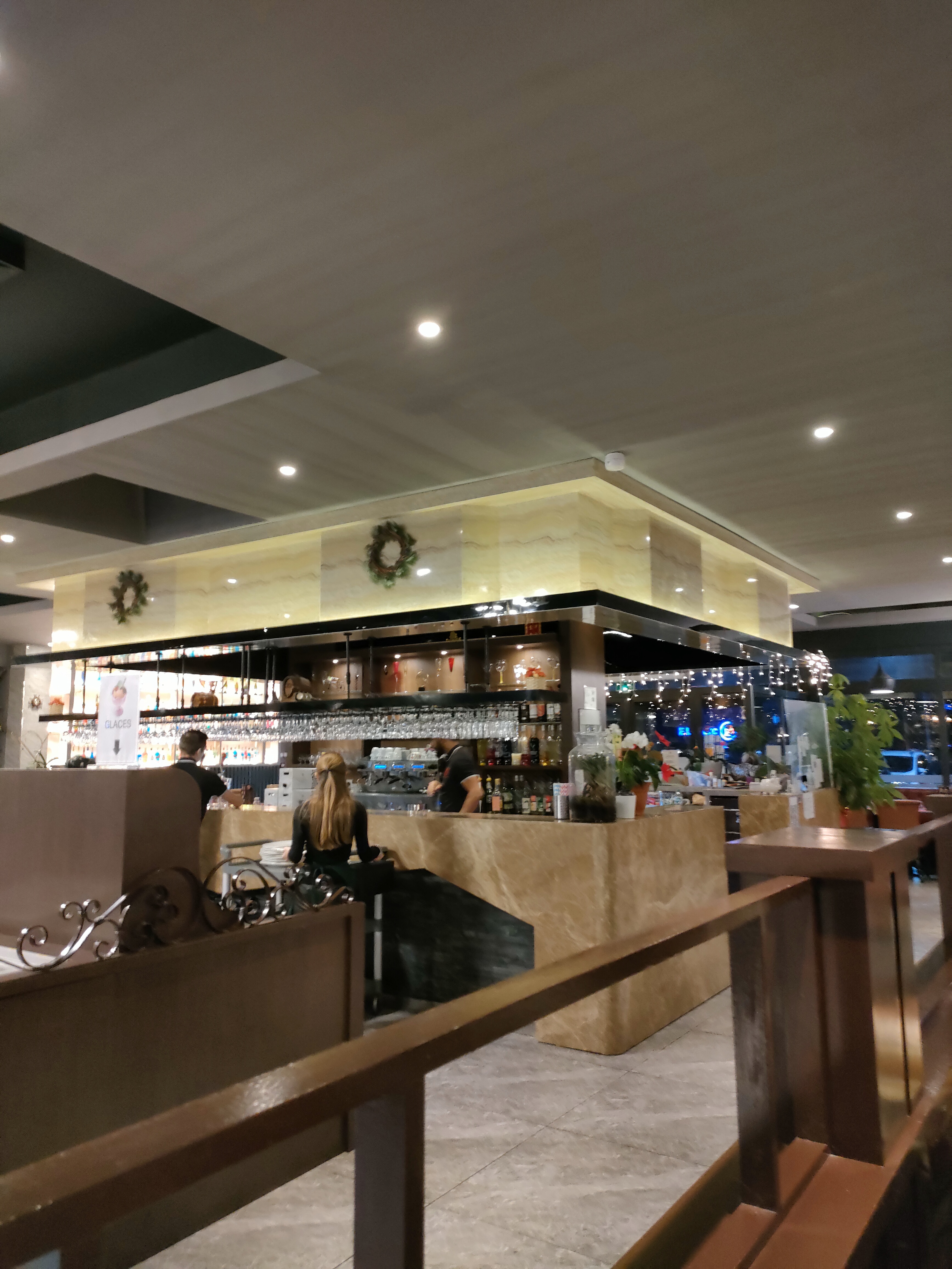 Restaurant très beau , très sympa et bon . Les serveurs et serveuses sont adorables , aimable et avec le sourire . Du choix pour tous les goûts En fin de soirée les plats sont un peu froids . Ça a pas mal augmenté pour le soir dommage . Je recommande vivement à refaire très vite .
