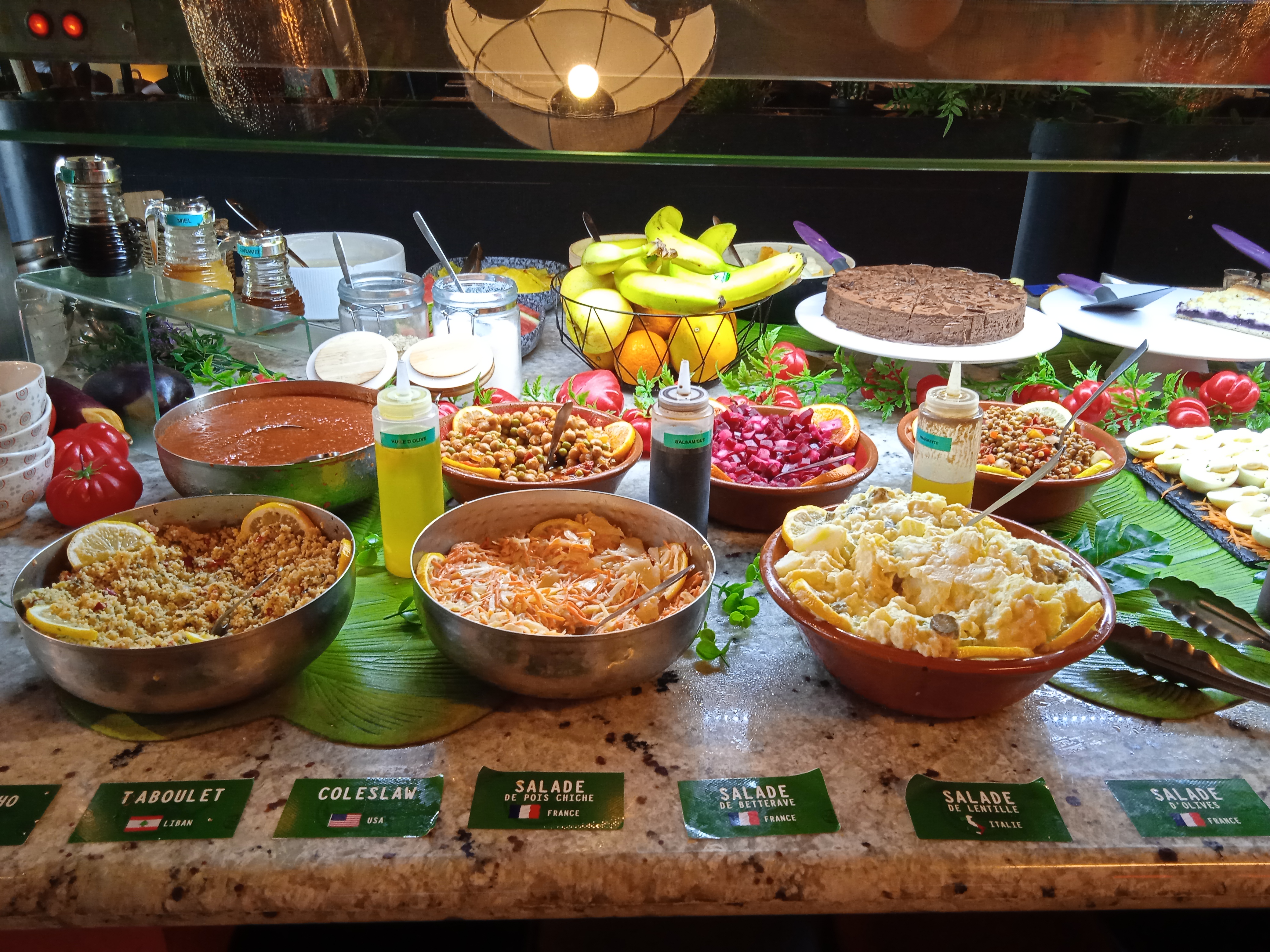 Un buffet du monde où vous trouverez un ensemble de plats préparés allant des entrées, des plats aux desserts. A noter que le menu du week-end est plus élevé alors qu’il y a les mêmes plats proposés.