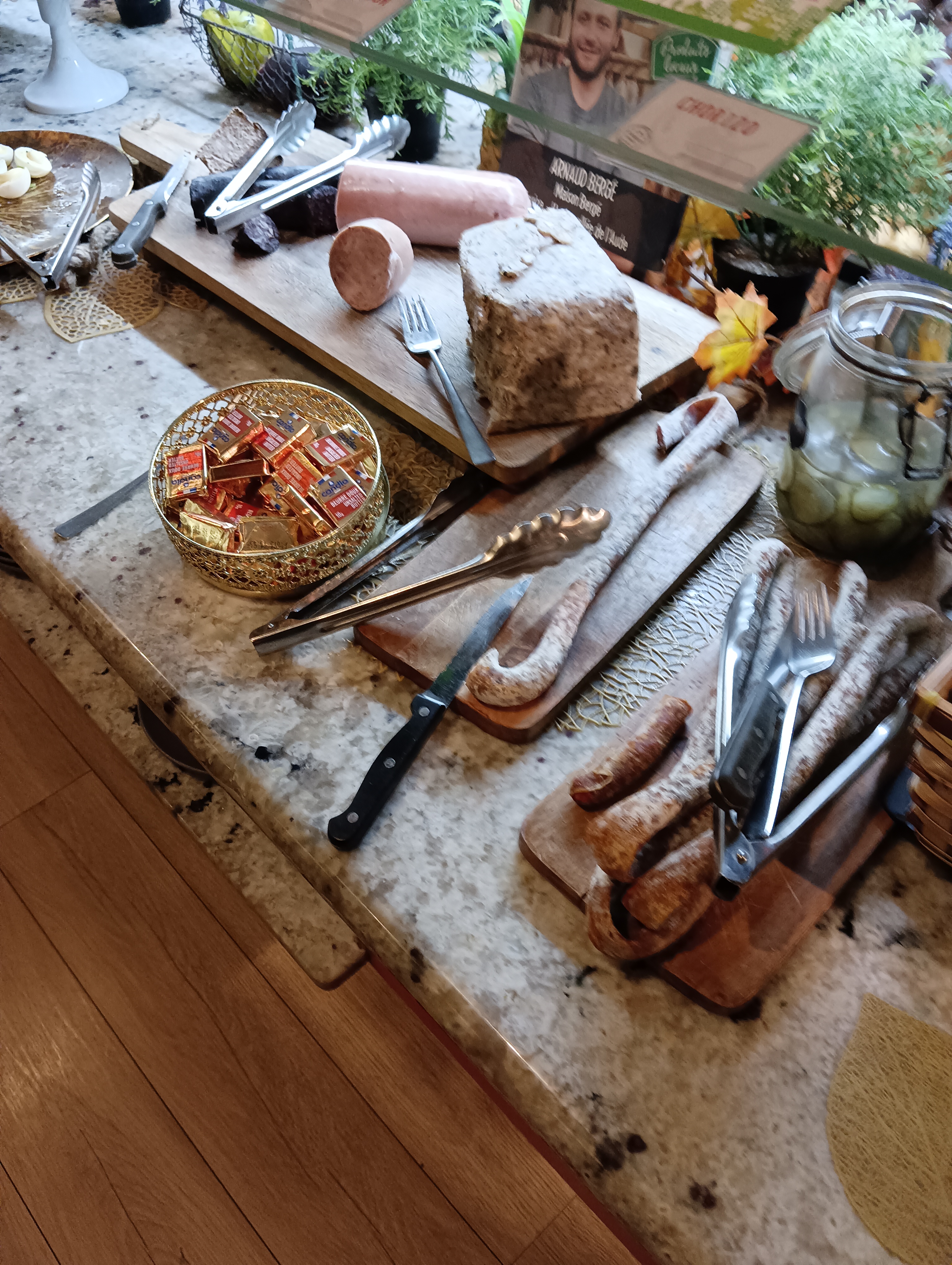 Très belle surprise. Convivial et familial, le petit buffet est rempli régulièrement. Le choix est varié pour tous les goûts. Entrée salade et crudité,bolusieurs plats chauds dont du poulet a la broche, fromages et desserts. A refaire avec plaisir