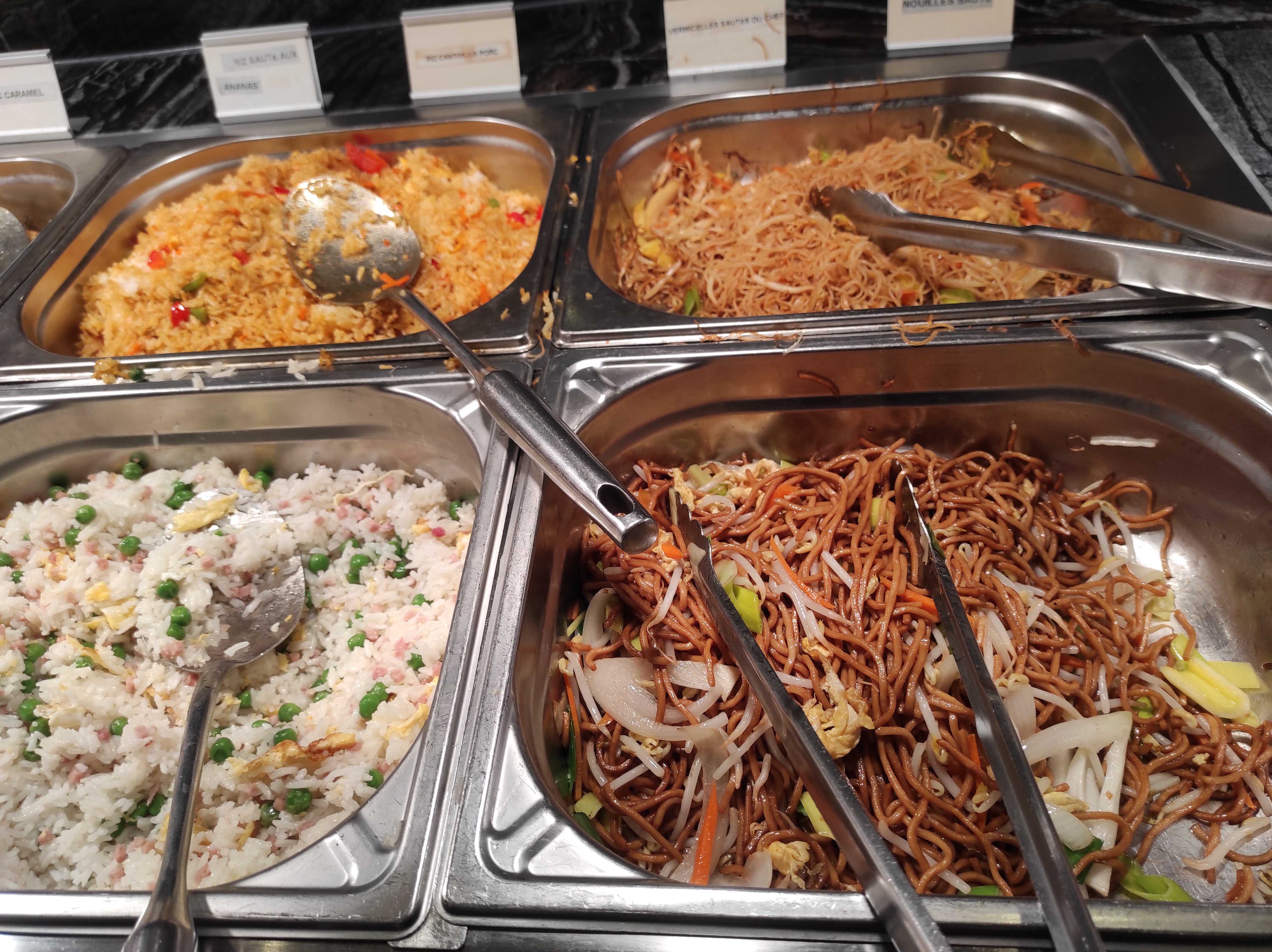 Très bien. Grand choix, très bon. Tellement ravie de trouver un buffet chinois avec des nems aux crevettes, c'est tellement rare. Du côté des glaces c'est un peu limité en choix, pas facile d'accéder au bac du milieu, et pas d'accompagnements (chantilly, coulis fraise chocolat etc). Mais plein d'autres desserts.