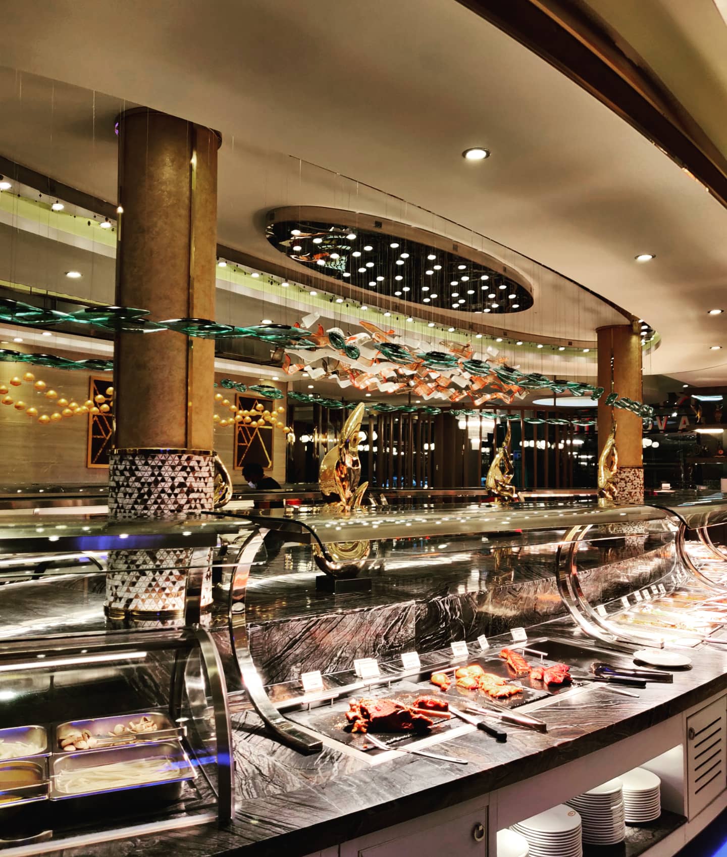 Un très grand buffet, beaucoup de choix et c'est assez bon. Tout pour un wok, des grillades. Un panel de plat hallucinants. Niveau désert c'est pareil avec de très bon macarons. Maintenant c'est beaucoup de quantité mais est ce que la qualité de la nourriture est présente, bonne question.