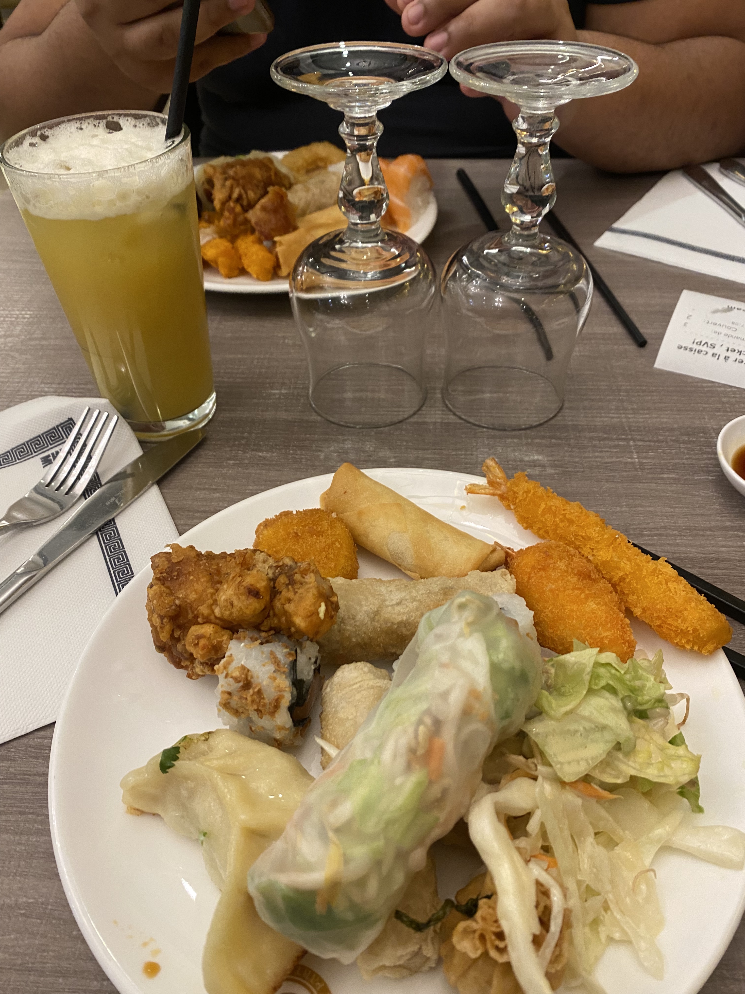 Ça faisait longtemps que j avais pas fait de buffet à volonté. J ai apprécié en général et surpris du choix en dessert... Ce qui est rare chez un buffet à volonté asiatique. Par contre y avait du saussisson et du fromage... un peu n importe quoi là. Mais c est grand et beaucoup de choix.. Un buffet à volonté classique. donc j ai aimé