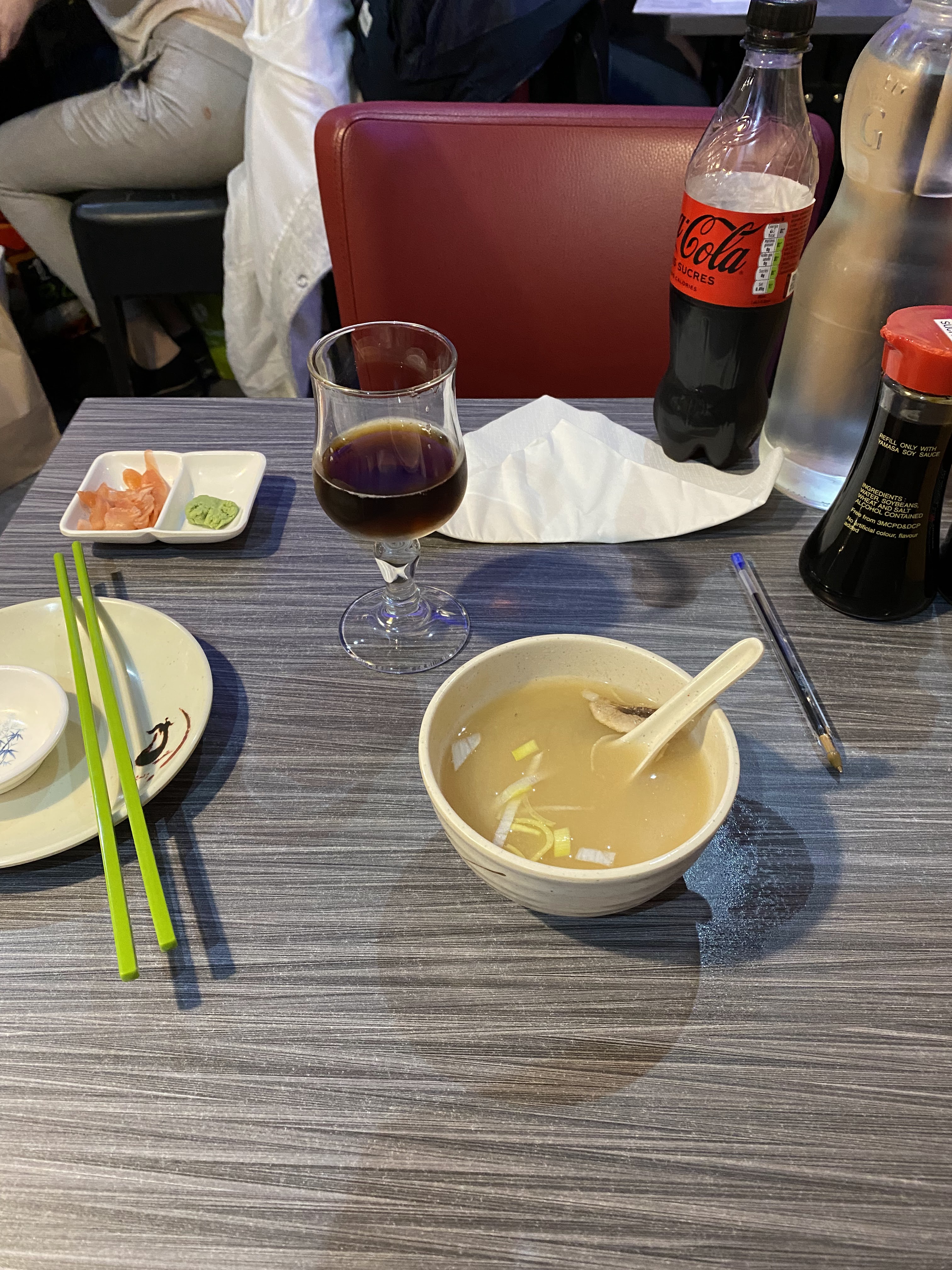 Ambiance vraiment mauvaise (du bruit et un mec qui tape un scandale juste à côté de nous). Qualité de la nourriture ultra douteuse, le riz mis en quantités monstrueuses donnait juste envie de vomir. Ce n'est pas des makis ni des sushis mais des gros blocs de riz assaisonnés de petites tranches de poisson (pas frais), la plupart des restaurants japonais essaient d'amener leurs clients vers la satiété avec du riz en bonnes doses mais subtilement, là ils ne cachent clairement pas. La dame qui nous servait ne nous parlait même pas et venait froidement récupérer la feuille qui sert à commander. Il faut demander pour ravoir de l'eau sinon on ne vous la donnera pas. Je ne reviendrai JAMAIS. Même si le prix semblait attractif dans ces temps inflationnistes (19€50) je préfère payer 23€50 pour un restaurant Japonais qui se respecte. À fuir !!!!!!!!