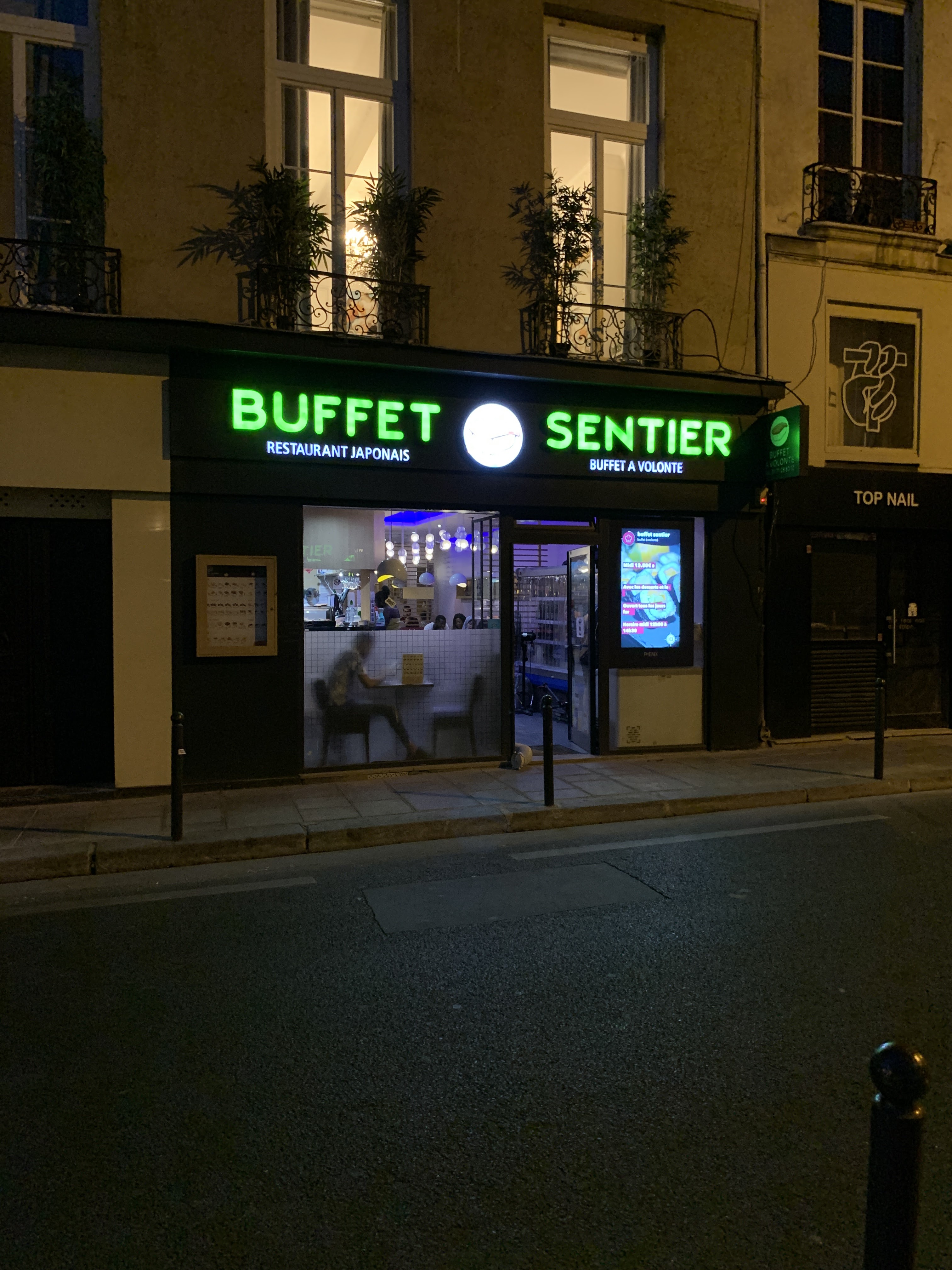 Un succulent buffet à volonté, parmi les meilleurs de Paris. Situé à 50 m du métro Sentier. Accueil très agréable. Les produits sont frais, tout est préparé devant vous par quatre sushi men. Le goût est là. Il suffirait d'un tout petit peu moins de riz dans les sushis et on toucherait au top. Ultra conseillé.
