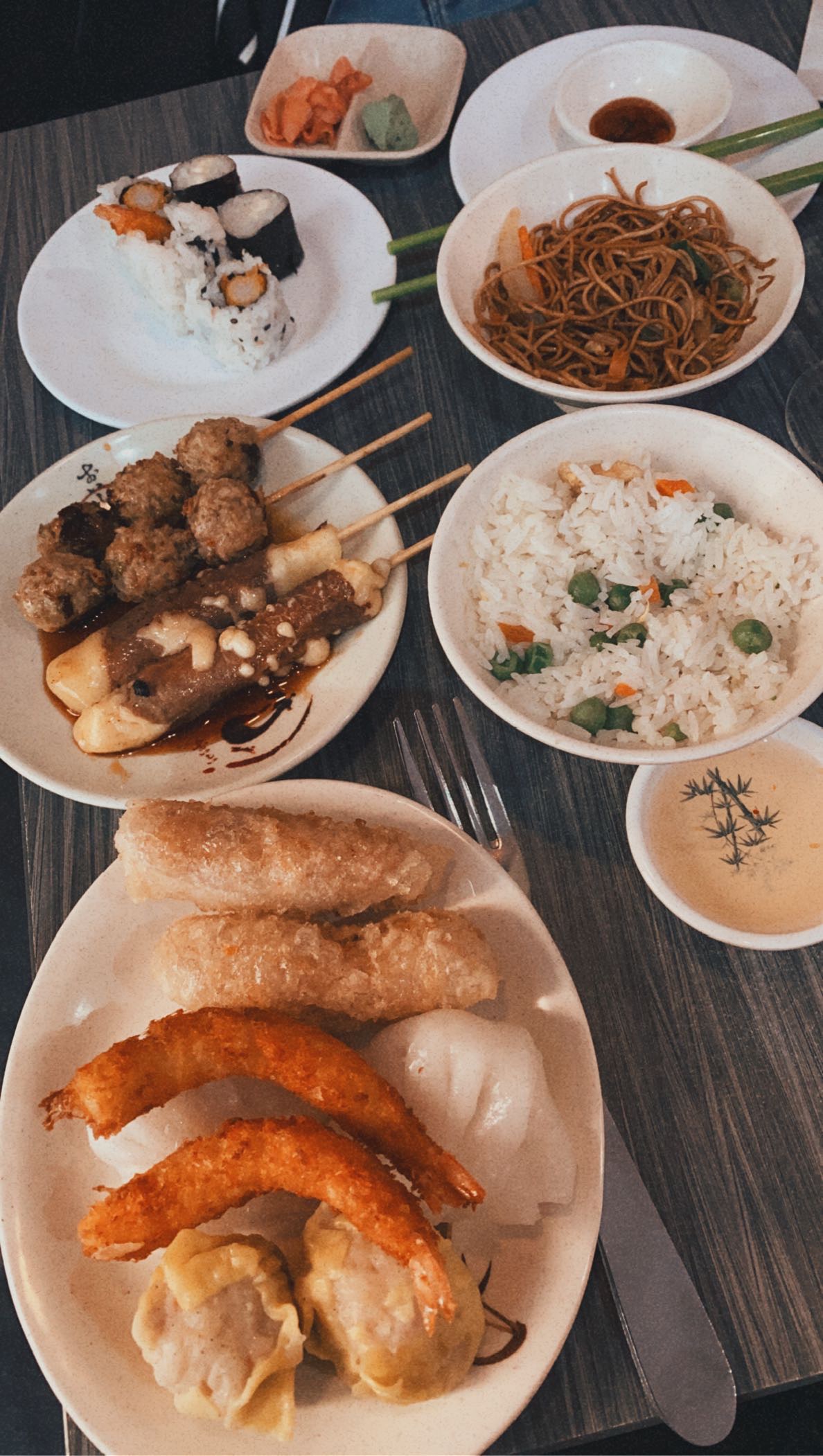 Buffet à volonté du midi: bon dans l’ensemble, mais j’ai trouvé qu’il y avait plus de riz que de poisson au final pour certains makis et sushis.. De même pour les temakis que j’ai trouvé peu garnis Cependant, j’ai beaucoup aimé les beignets aux courgettes très réussis, pareil pour les nouilles! De plus, le riz cantonais ne contient pas de porc, niquel de ce côté!