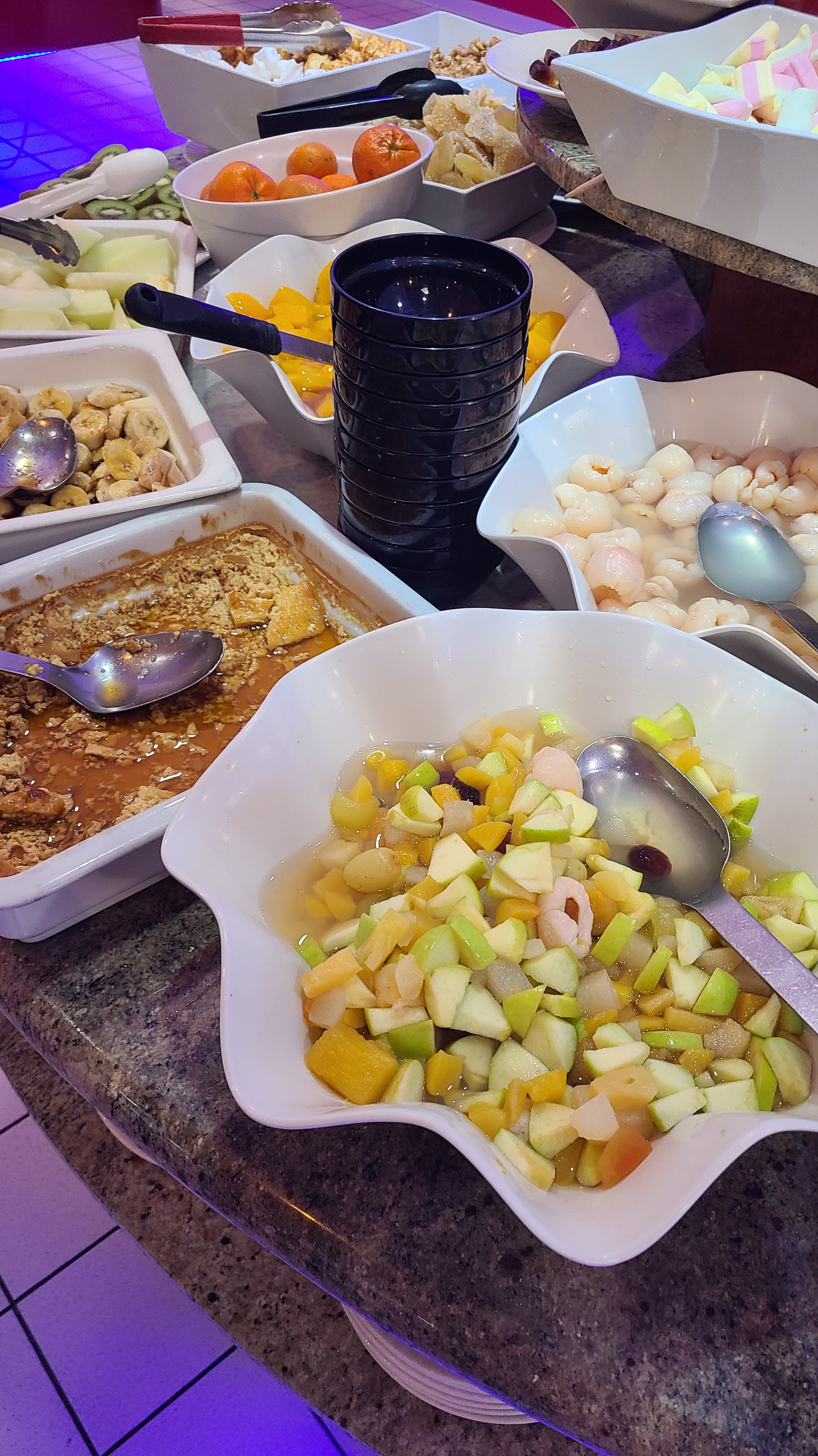 Bon moment Plats très bon..mais qui auraient tendance à se mettre au goût européen ( tomates au thon. Oeufs mayo....nuggets) ce qui est dommage. Grand choix dans les desserts. Prix honnête
