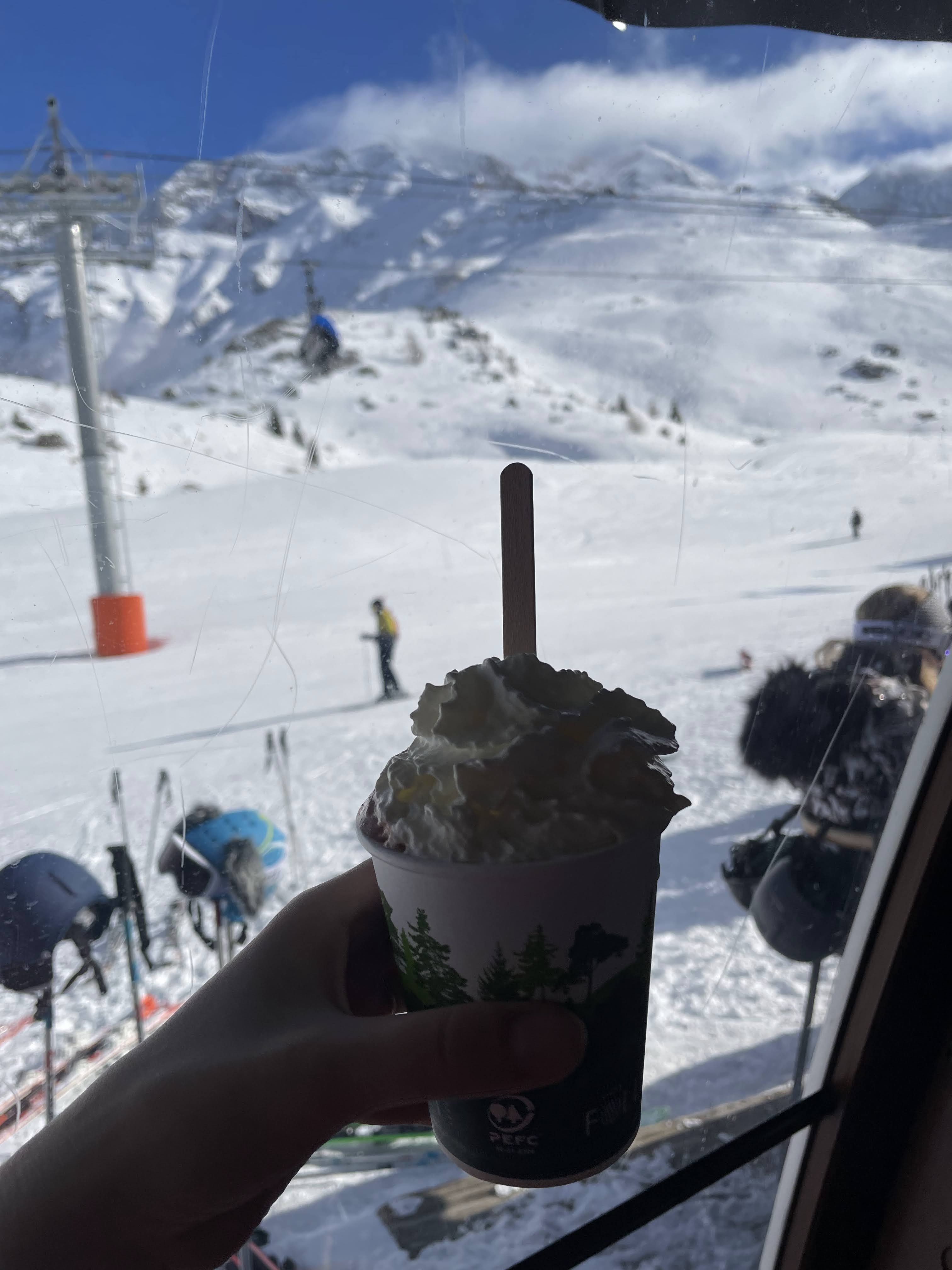 Un bon chocolat chaud ici. Bonne atmosphère. Arrêté après avoir skié dans des conditions difficiles. J'adore le dôme de l'intérieur - c'est un endroit vraiment agréable pour s'asseoir et se détendre.
