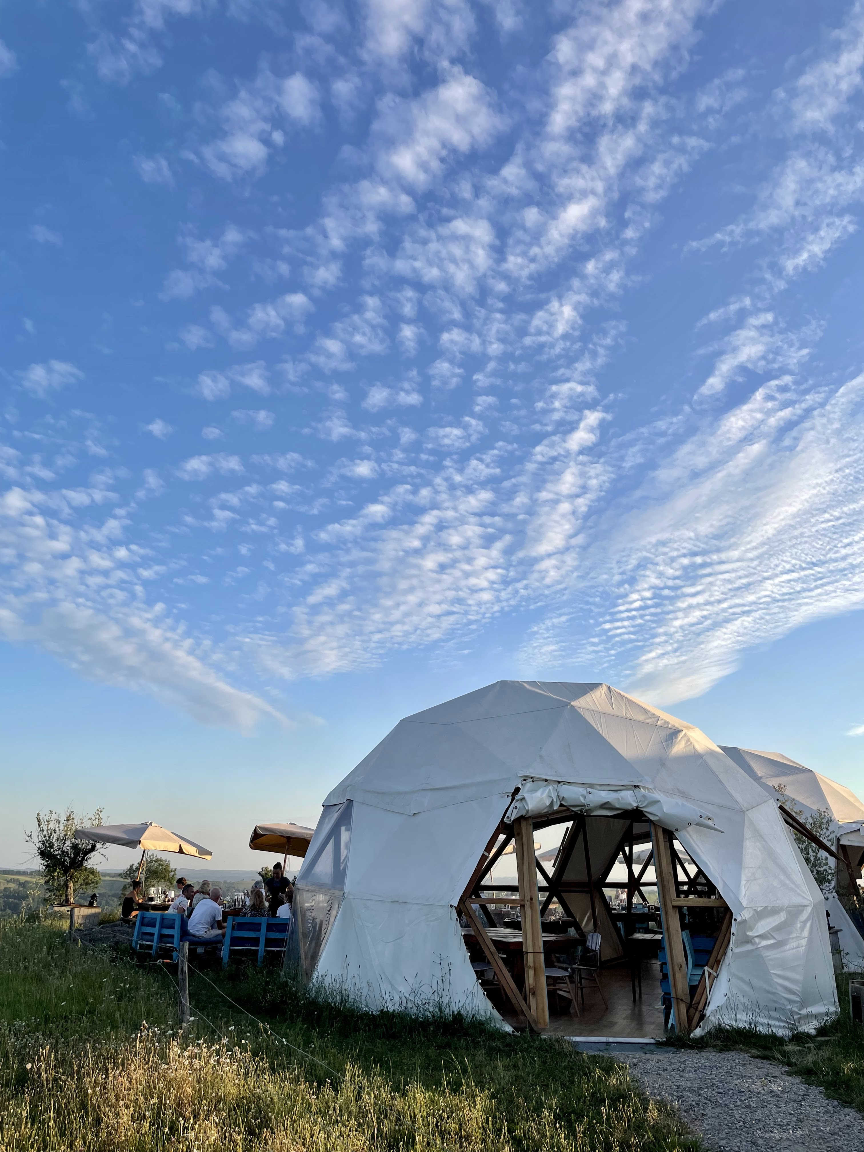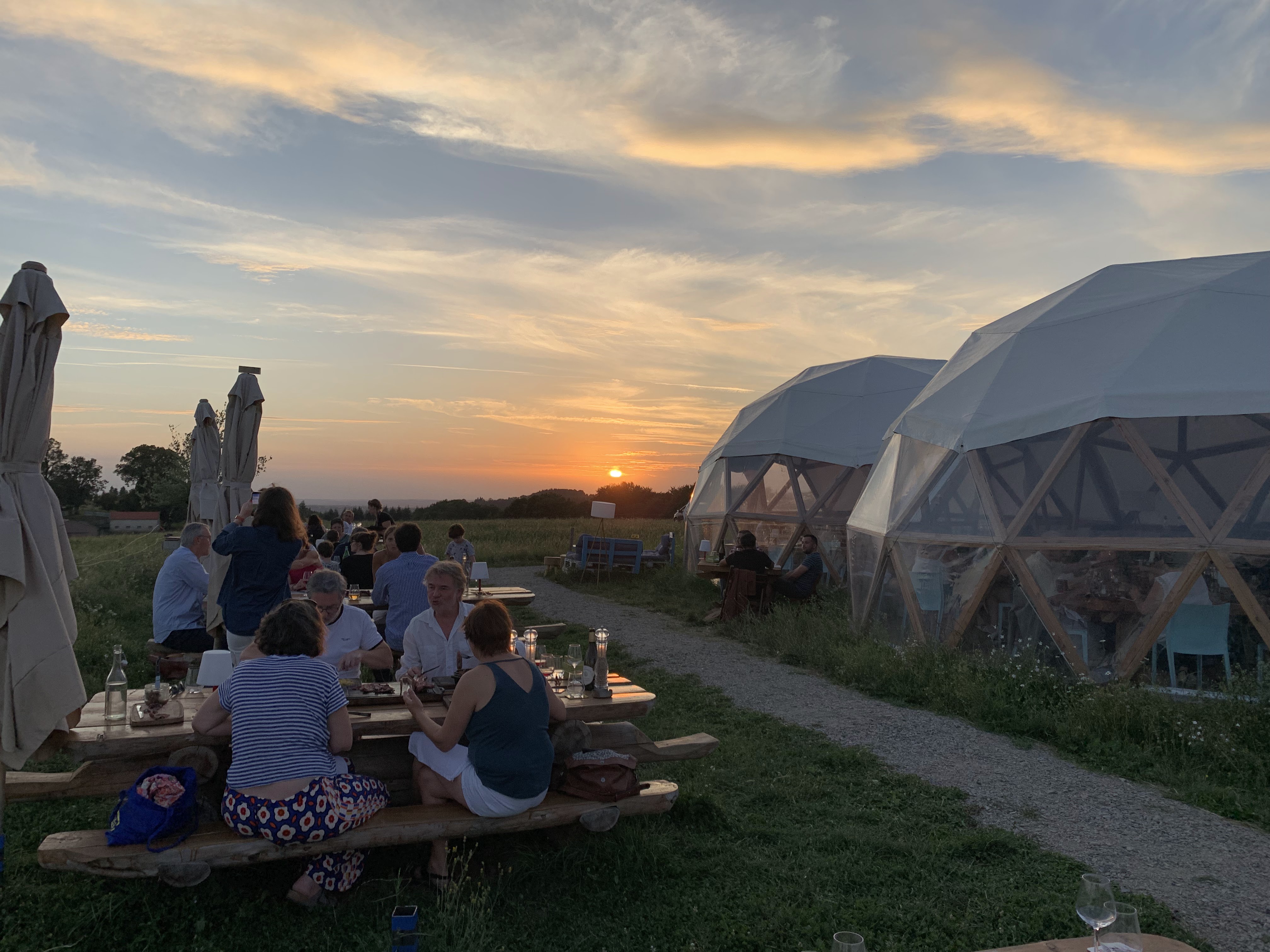 Restaurant éphémère, les bulles sonts là 4 mois dans l'année sur la propriété .excellentes viandes, cadres atypique . A voir.