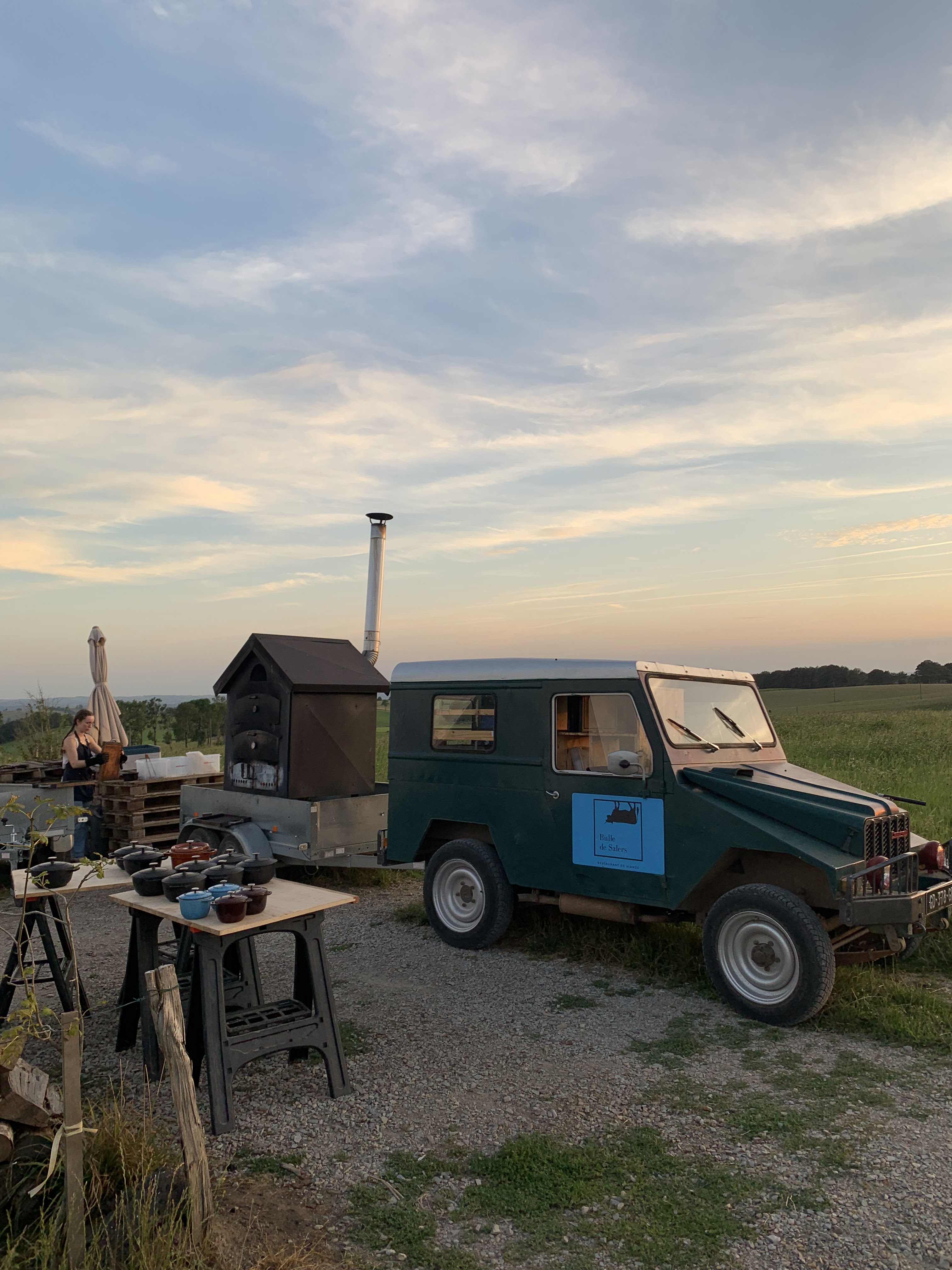Je recommande ce restaurant éphémère sans aucune hésitation. Tout y est réuni pour passer un moment convivial entre amis ou en famille! -L'accueil et la disponibilité des propriétaires sont parfaits du début du repas jusqu'à la fin! La composition des menus : Uniquement des produits de notre si belle région -Apéritifs : gentiane(distillerie Couderc à Aurillac )bière (distillerie 360 aux quatre routes de Salers)Vin blanc et rouge : le Légendaire de la cave Desprat à Aurillac. Viande : délicieuse viande de nos vaches Salers, proposée en faux filets (250 grms environ), côtes de bœuf 🐂, et hamburgers. Vous ferez cuire vous même votre viande selon votre envie (saignante, à point ou bien cuite) et ce, en planchas individuelles, chauffées au four à bois à 360 degrés ). A noter que cette délicieuse viande Salers (de 4 à 6 semaines de maturité)vous est servie avec du gros sel provenant des 4 coins du monde et apportant un goût exceptionnel! Légumes : -Truffade chauffée également au four à bois et servie dans des cocottes en fonte; vous apprécierez de remuer la tomme et les pommes de 🥔 à votre convenance. -Délicieuse Ratatouille. Dessert: -Cornet de Murat à la crème fermière agrémentée de 🍓. -Glaces artisanales très parfumées dont je vous recommande personnellement la glace aux noisettes et pour ceux et celles qui aiment le fromage de 🐐, vous apprécierez cette glace originale accompagnée de miel. Un excellent moment à passer en famille ou entre amis dans un magnifique cadre : au milieu des champs, loin de la route, et les repas vous sont servis par les propriétaires qui ont souhaité quitter leur région pour (en ce qui concerne le proprietaire) revenir à notre beau cantal d'où il est est originaire et sauvegarder le domaine agricole en apportant de l'originalité à ce restaurant éphémère qui permet en même temps de préserver la beauté et l'authenticité de notre formidable nature. Je n'ai que des félicitations et qu'un conseil à donner ces deux jeunes propriétaires courageux : ne changer rien et n'abandonnez pas votre projet grandiose pour la saison à venir après la fermeture de vos bulles de Salers!!