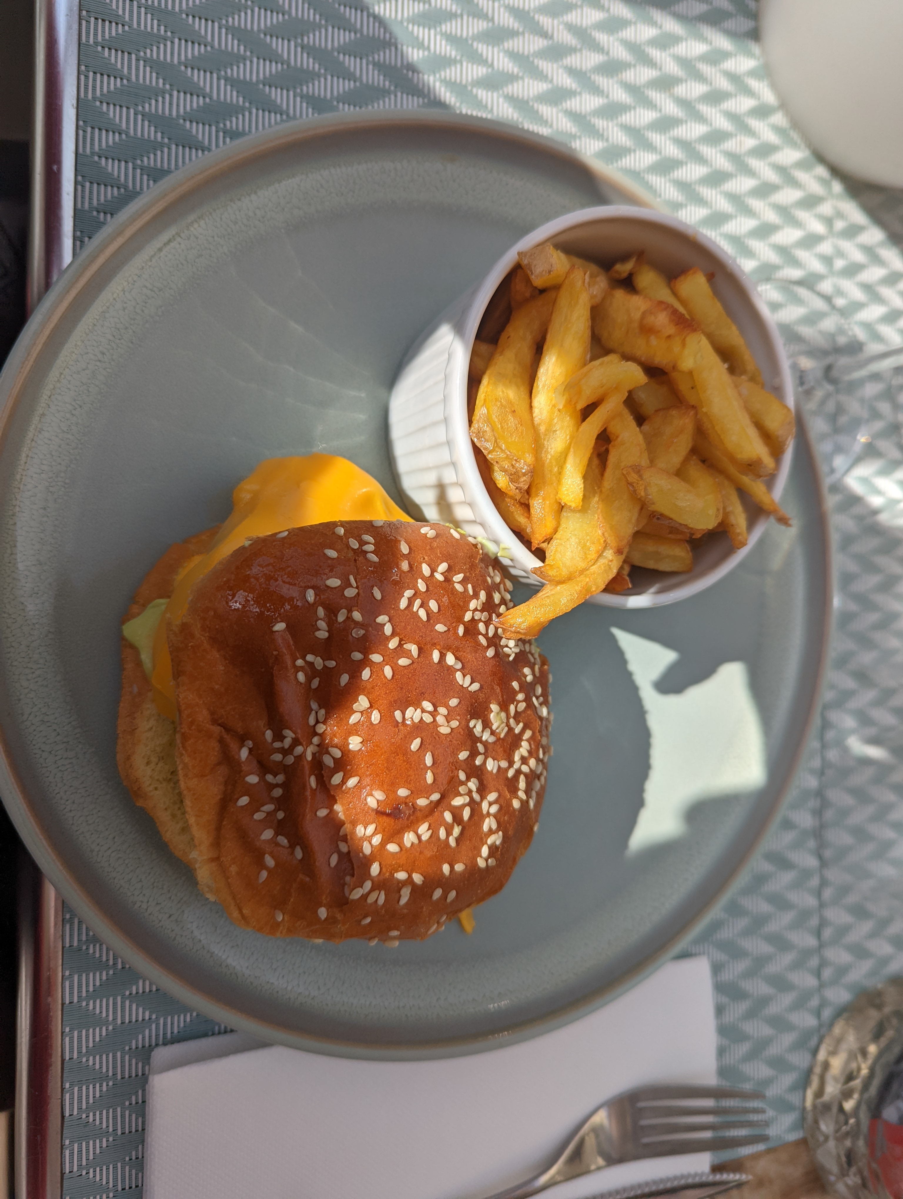 Très bon accueil déjeune en terrasse par contre faut réserver tôt vendredi hamburger de la mer celui ci assez moyen pour 15€ pas de carte pour les bouteilles de vin on dirai que les prix sont a la tête du client .
