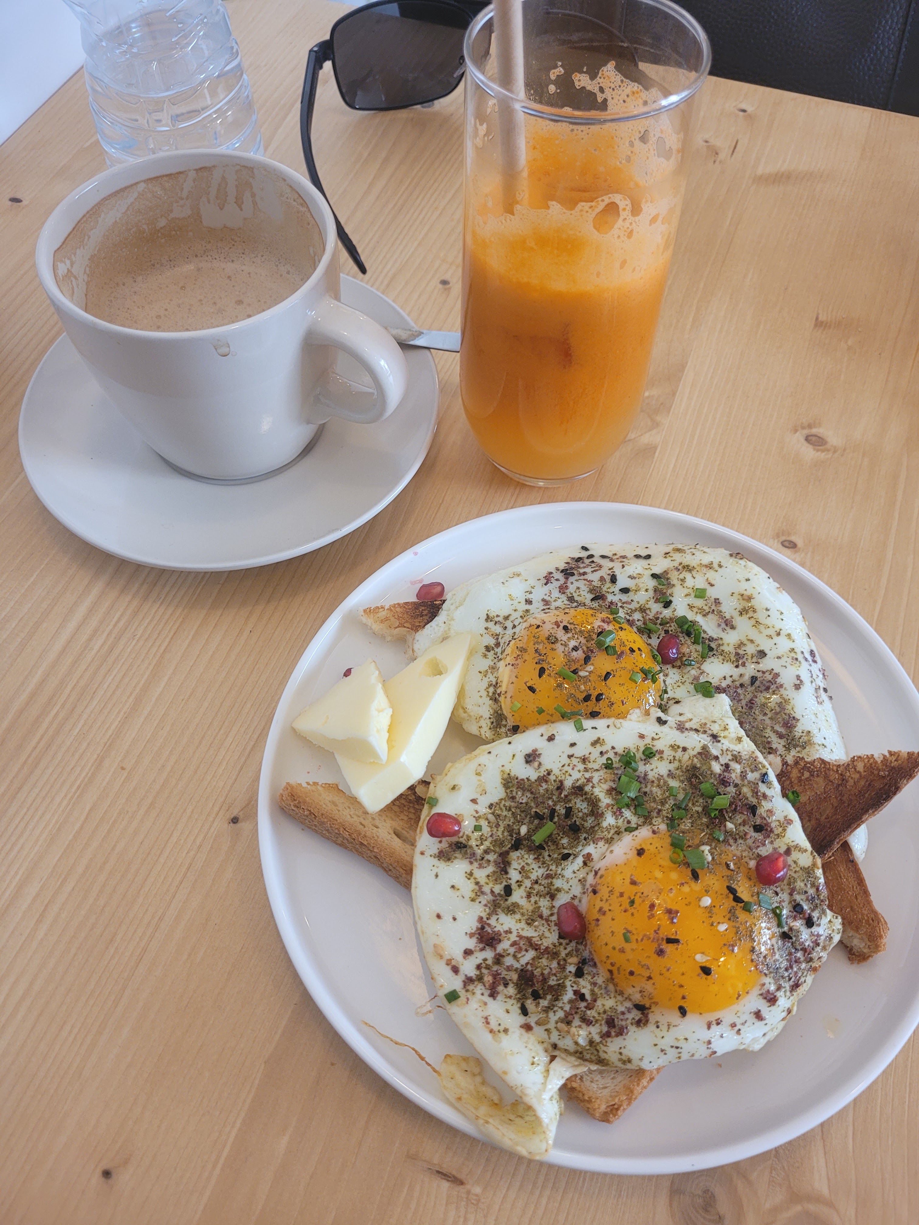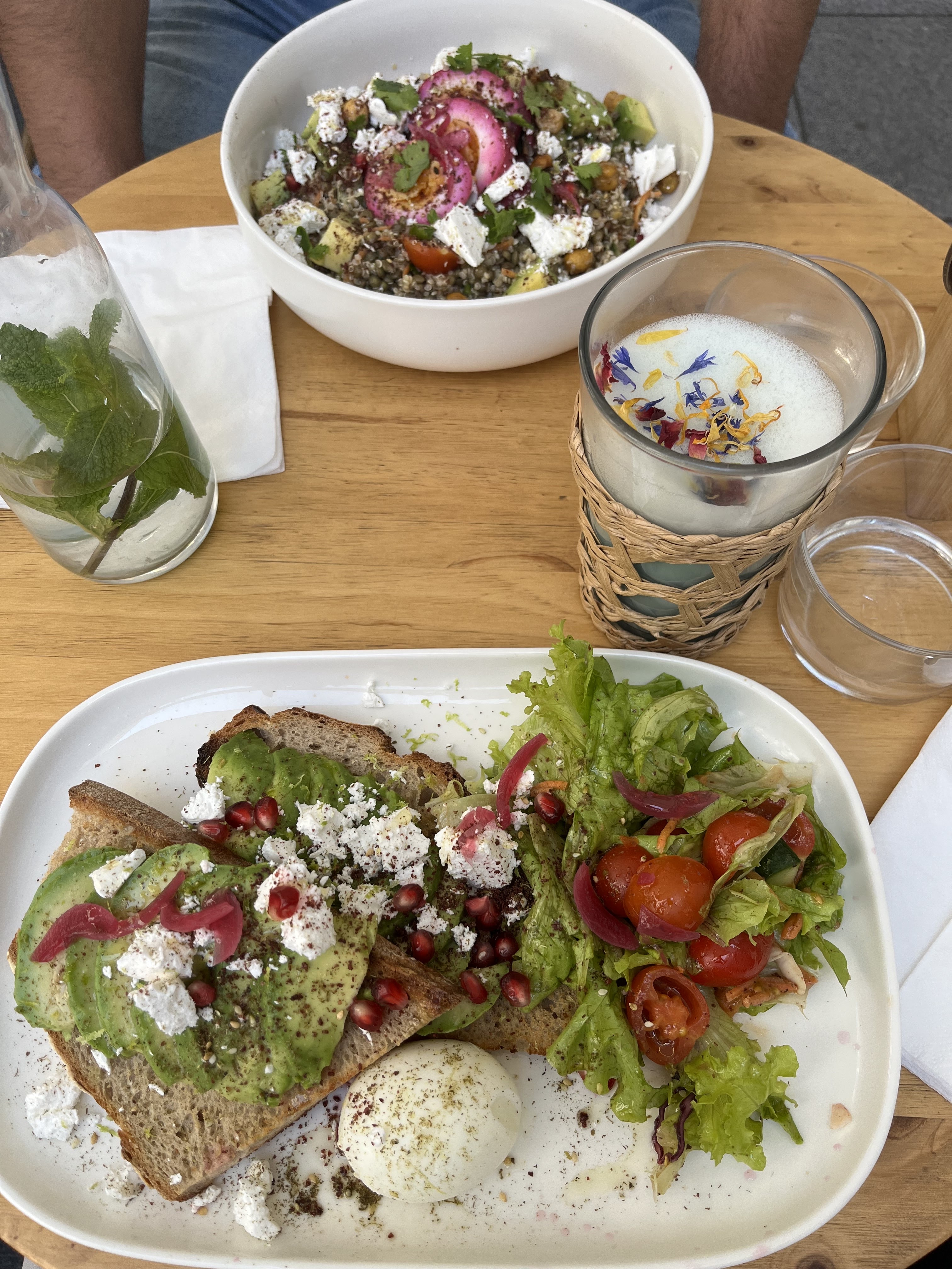 Très décevant d'après les critiques. La nourriture était fraîche mais très sans inspiration. Du pain grillé à l'avocat était sur du pain grillé blanc ordinaire, du supermarché. En France, on s'attendrait à un délicieux pain frais. Ils ont mis du zatar sur l'avocat qui a dominé les saveurs. L'œuf sur le dessus pour 2 euros supplémentaires était un œuf à la coque, non poché. La fille était assez sympa mais service de style bar. Placez un joli café, mais ne vous éloignez pas de votre chemin.