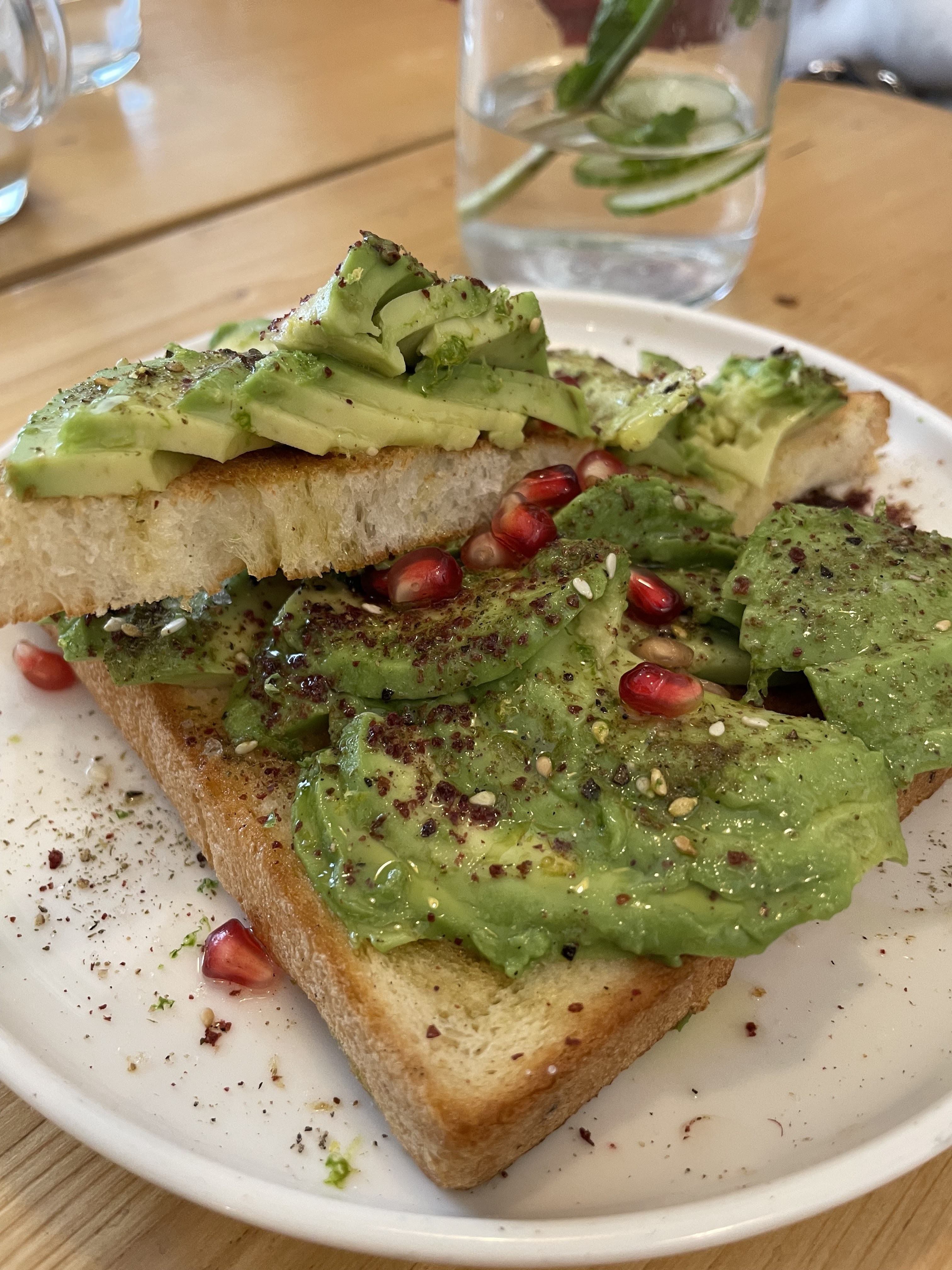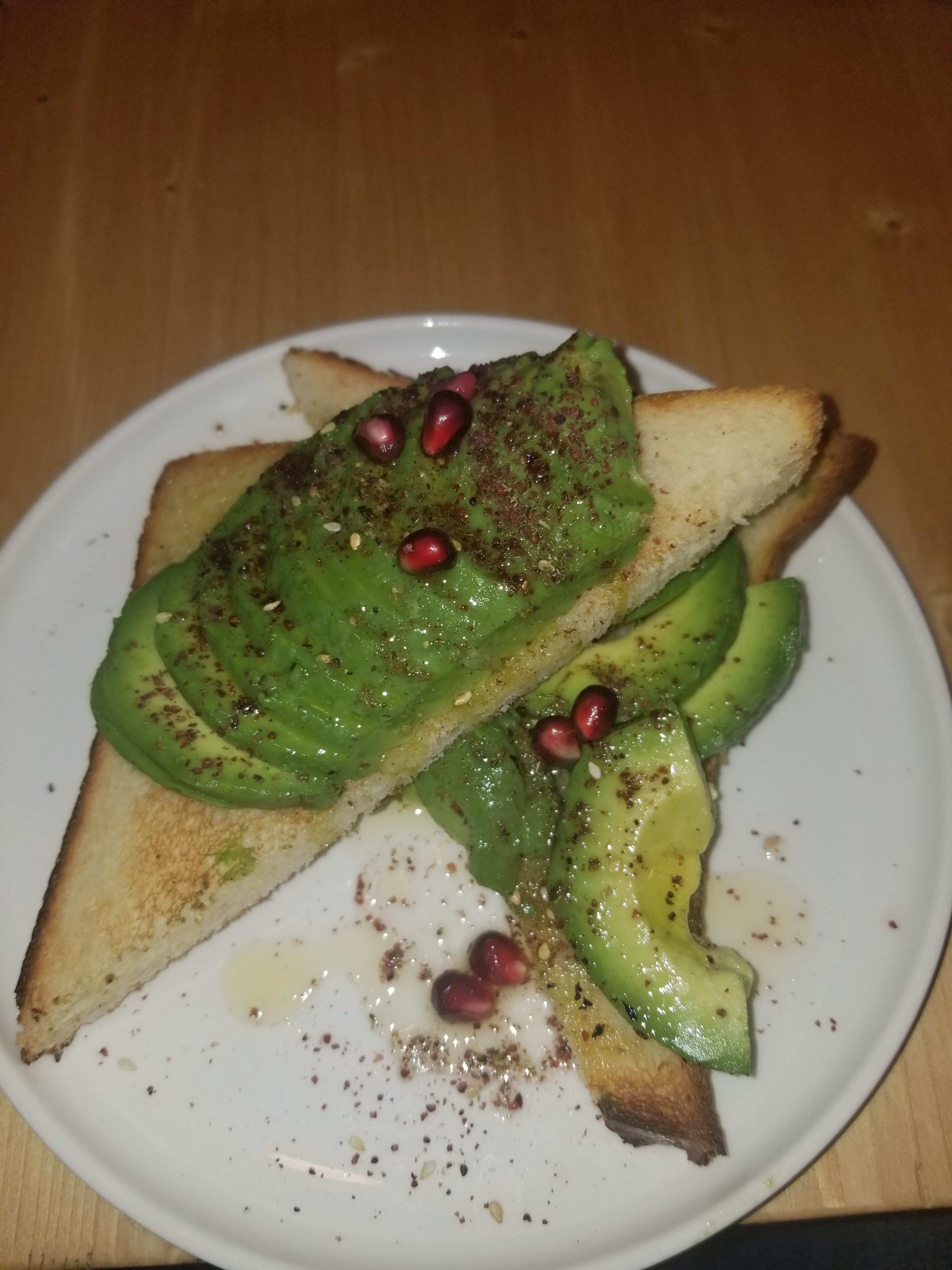Toast à l'avocat - deux triangles de pain blanc sans goût et plusieurs tranches d'avocat... Les gars, vous pouvez faire mieux... surtout avec une telle note.