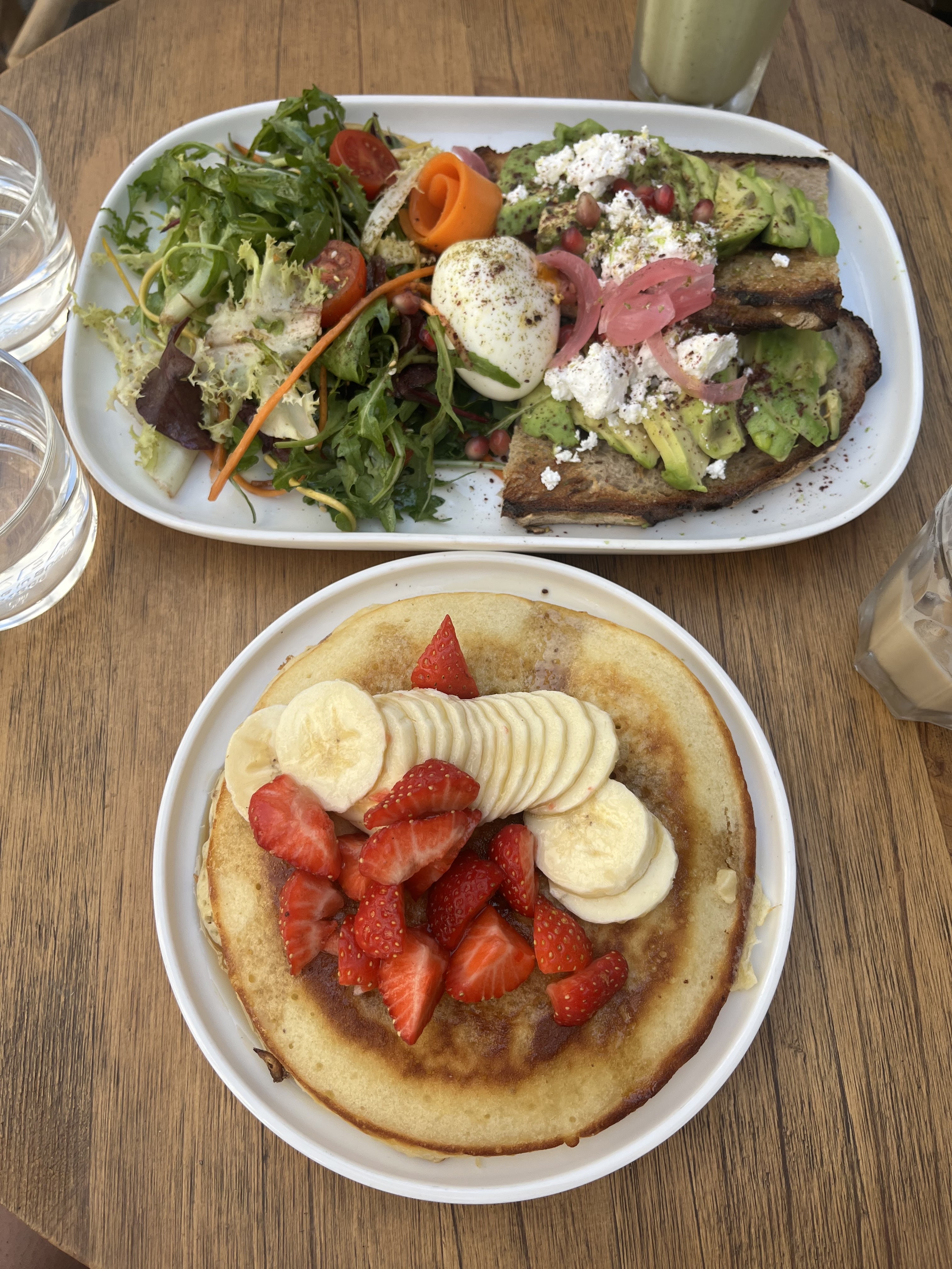 Absolument incroyable!!! La nourriture était délicieuse, fraîche et légère. Les crêpes moelleuses étaient parfaites si vous souhaitez un petit-déjeuner sucré mais sans lourdeur du tout ! De plus, si vous vous réveillez tard et que vous souhaitez quand même manger des aliments pour le petit-déjeuner après l'heure du déjeuner, ils ont la possibilité de commander un repas et une boisson pour le petit-déjeuner à un prix moins cher, ce qui était fantastique. Les boissons étaient également excellentes mais les ont bu si vite que je n'ai pas pris de photo.