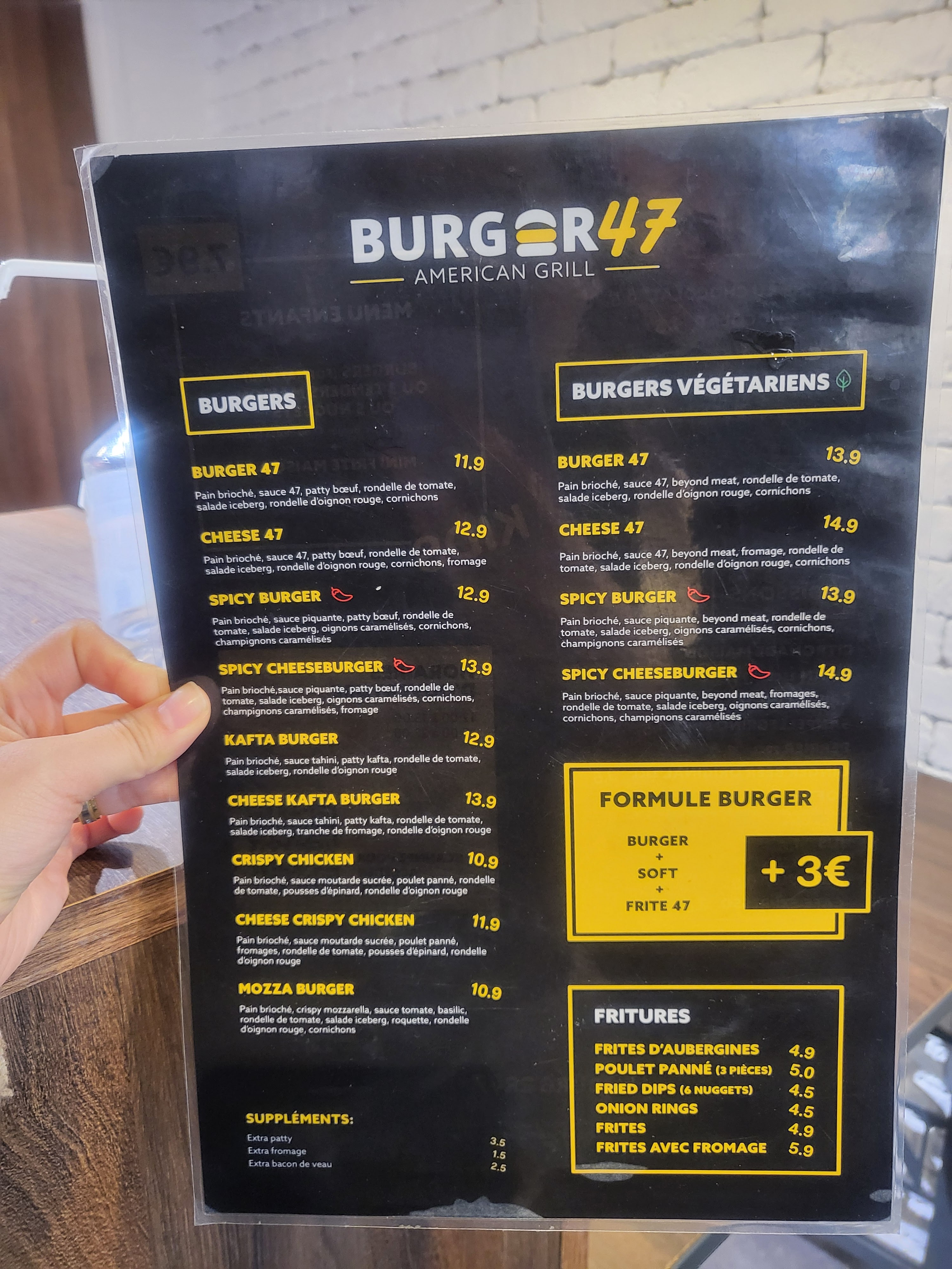Le cheeseburger47 a le goût de l’été. Le cheeseburger épicé a ce petit plus. La portion FF est grande et délicieuse. Si vous voulez un burger à Paris, c'est l'endroit idéal.