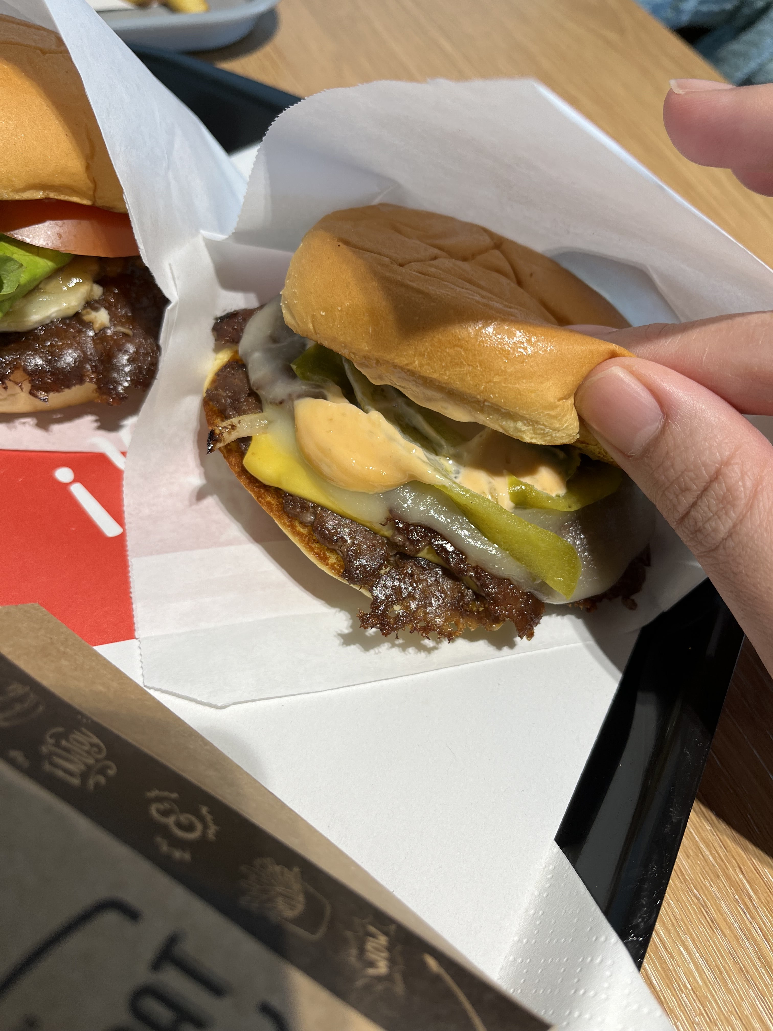 Ma sœur m’a fait découvrir cet endroit et franchement superbe expérience le restaurant est propre les burgers smash sont délicieux et il y’a énormément de choix niveau désert merci à asma pour son accueil chaleureux vraiment elle nous a excessivement gâtés. Je reviendrai