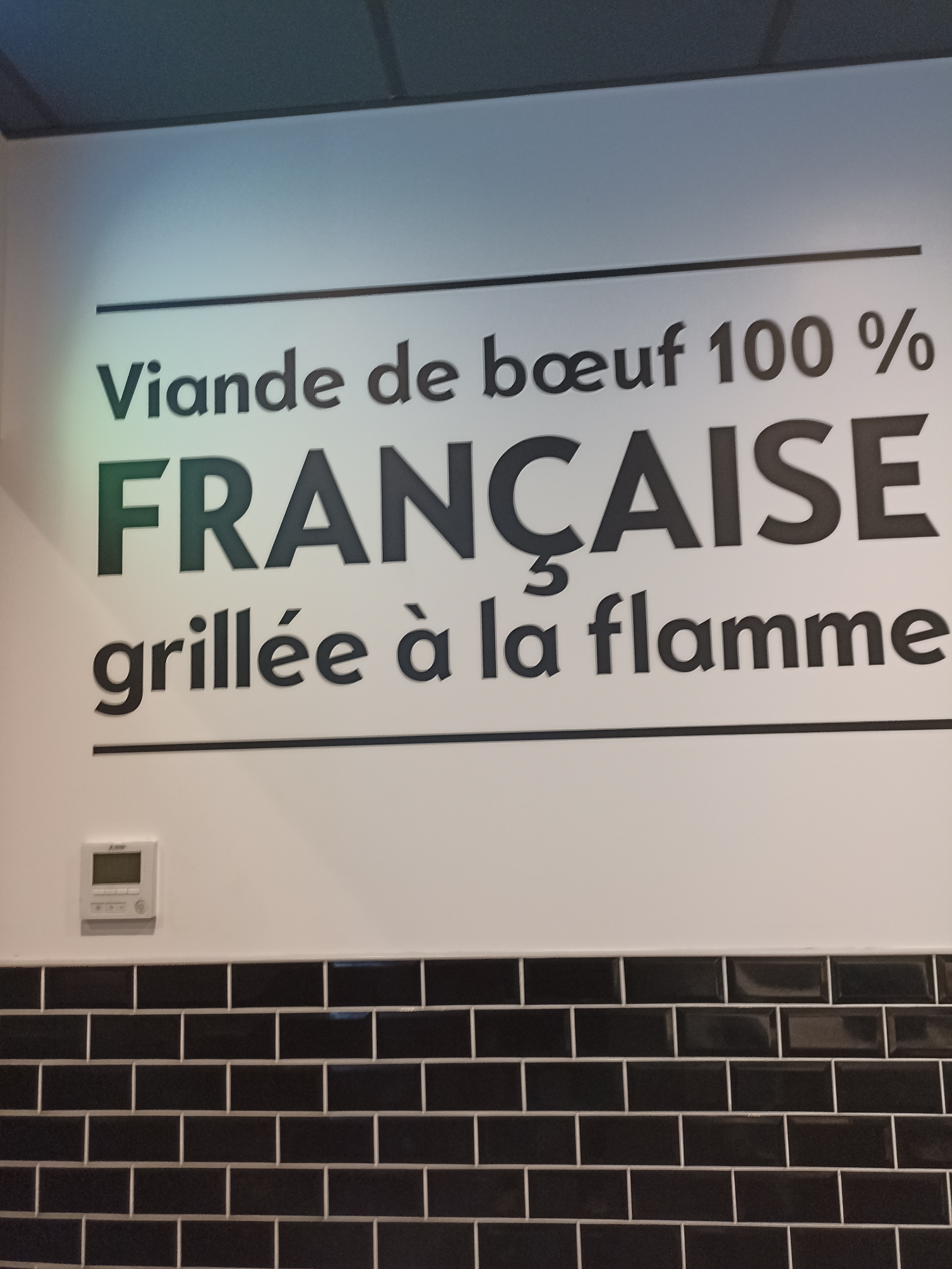 Restaurant sympathique. Surface d'accueil correcte. Placé sur un parking, facile d'accès. Mais la vue et pas terrible et le cadre extérieur loin d'être idyllique. Toilette accessible pour handicapés,un bon point! Faux plafond noir, mur en briques noires j'adore ! Les toilettes sont froides et insipides, manquent cruellement de déco. Je tiens à souligner également qu'il manque de RANGEMENTS pour les produits ménagers. A la vue du clients c'est juste moyen moyen. Service correct et rapide. Les deux hôtesses sont souriantes, et mettent du cœur à l'ouvrage. Différents choix de burgers, wraps et autres. Abordable budget moyen Les 1er passages étaient une réussite, burgers au top frites très bonnes! Derniers passages, grande déception. Frites gorgées d'huile, males cuites et vraiment mauvaises. Le burger, la viande exellente et la cuisson correcte dommage le tout était froid à chaque fois. Le reste sincèrement sans plus, on fait mieux à la maison. Le dessert au top! Bravo vraiment très bon. Correct dans l'ensemble. CONCLUSION Agréablement surprise au début. Mais ma déception et grande aujourd'hui. Déçue de ce que j'ai mangé, un mal fou à tout digérer. Un bon accueil mais c'est tout...